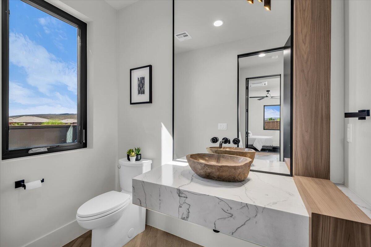 Nestled within the prestigious gated community of Entrada, this stunning residence offers captivating views of the majestic Red Mountains and Snow Canyon. Designed for luxury living, the open concept layout offers soaring ceilings, custom finishes and an abundance of natural light.