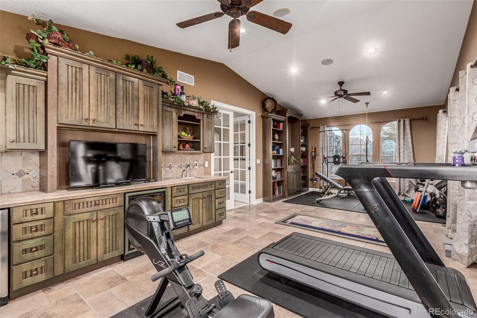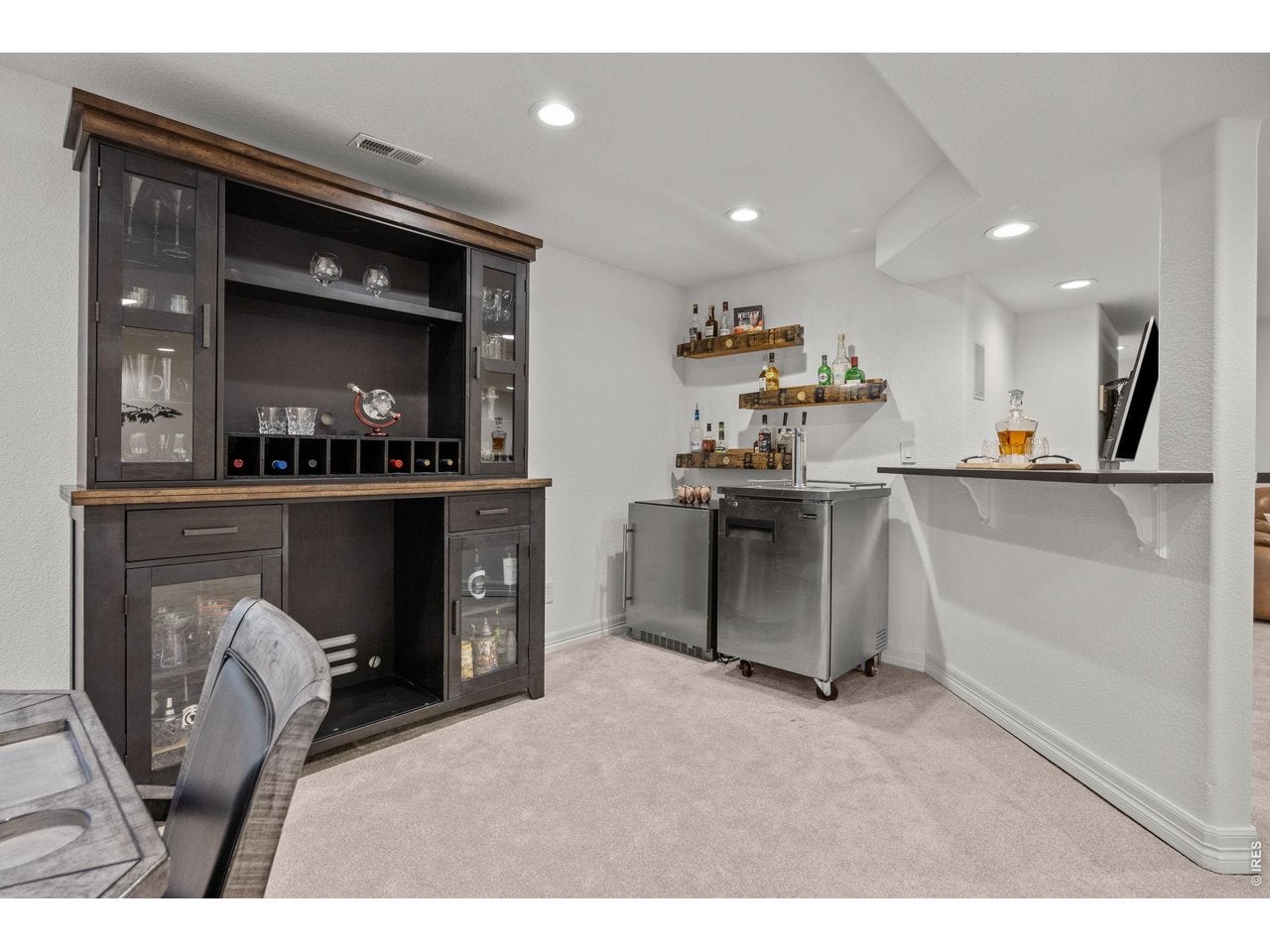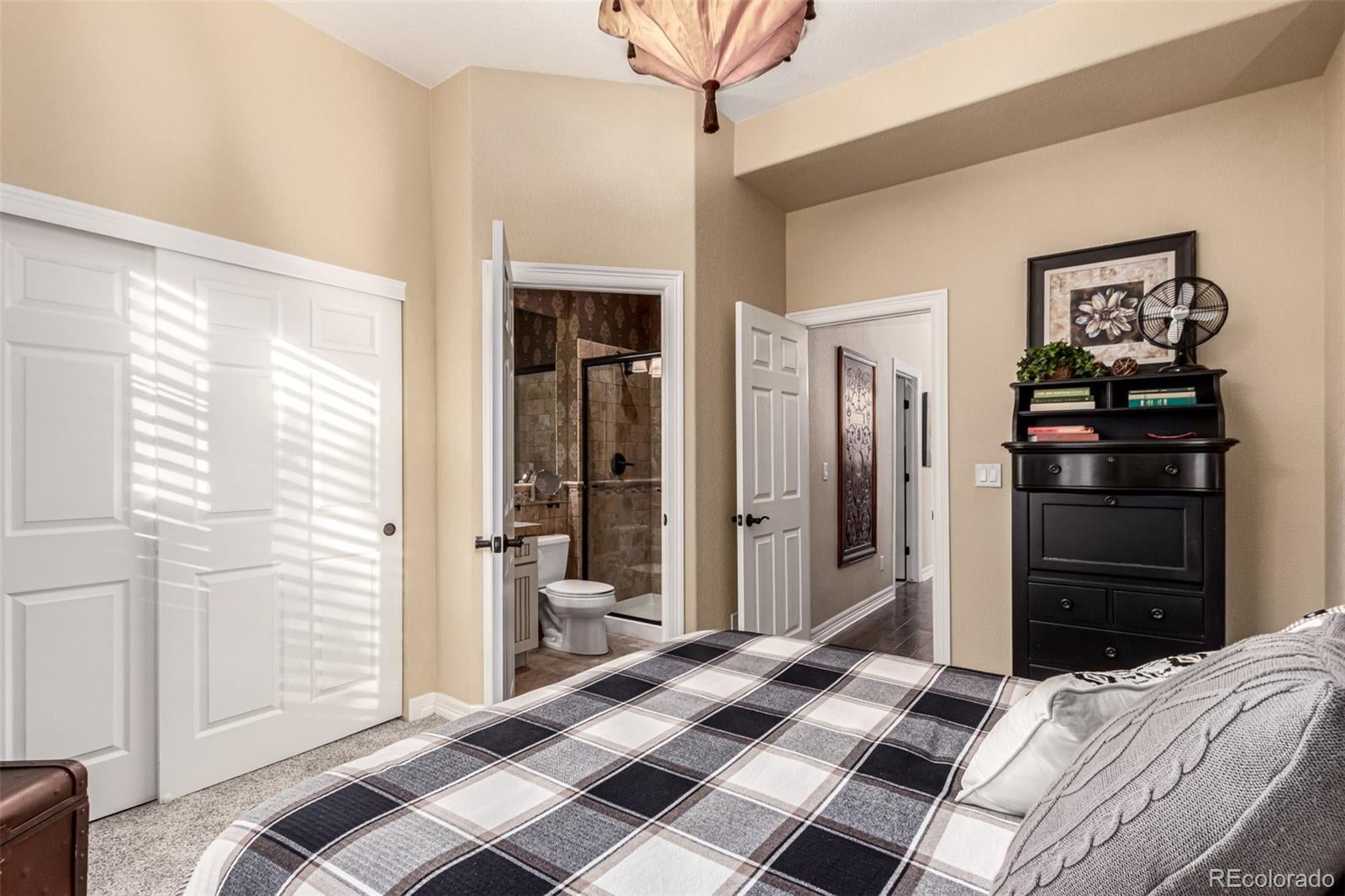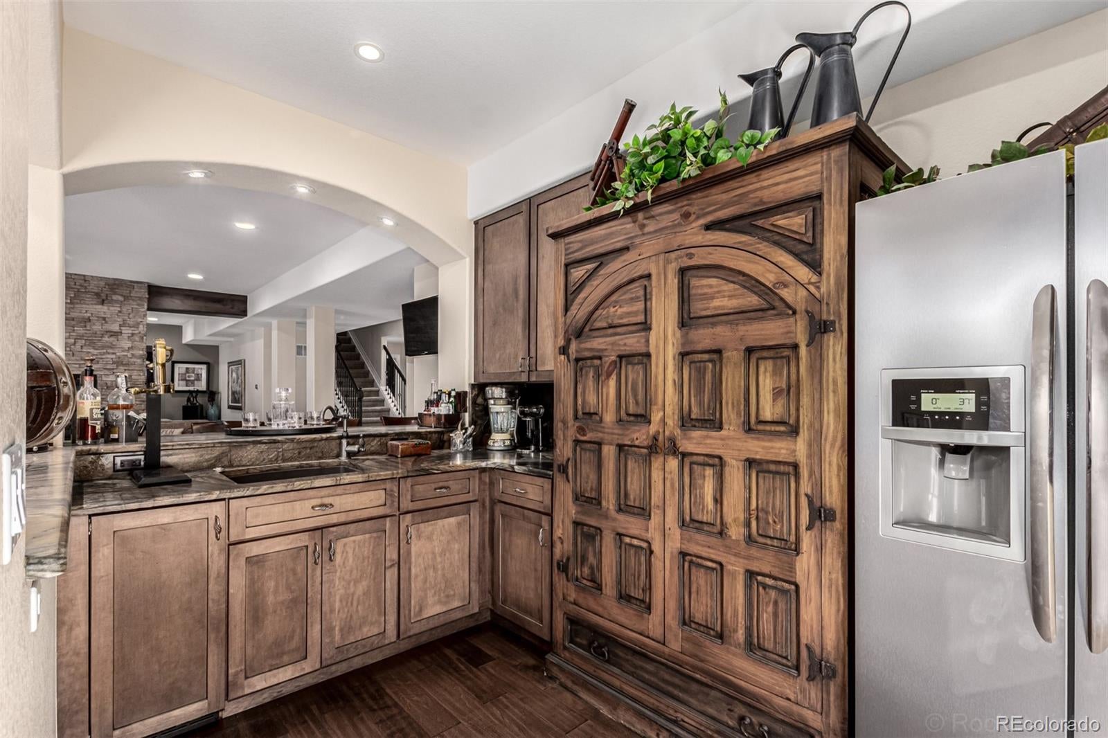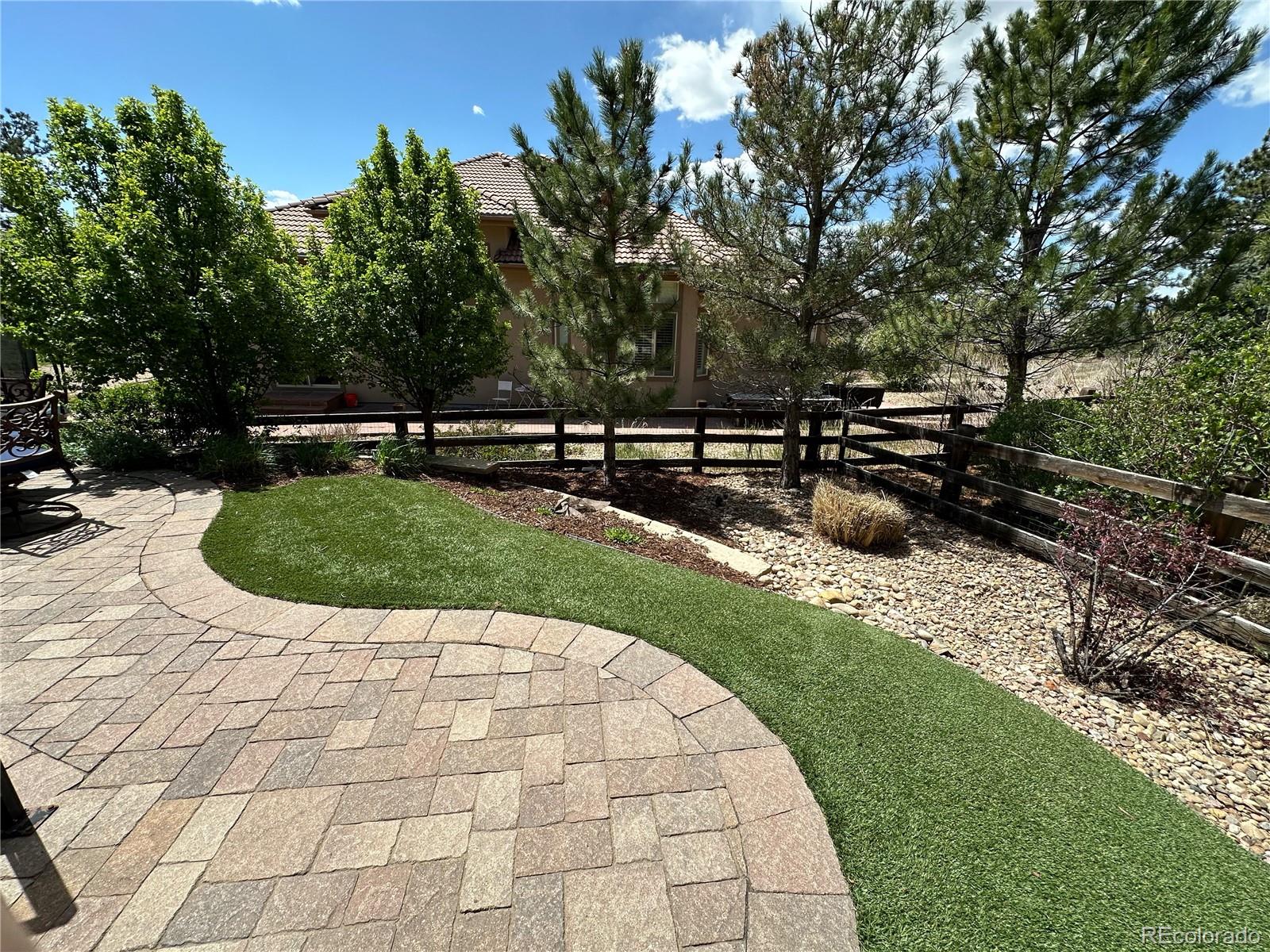 Toll Brothers Model home for the highly sought after Pine Bluffs Community. This home is absolutely amazing! Striking stone-accented faade & exceptional design throughout! An inviting entry welcomes you into a thoughtfully designed split floor plan featuring a carpeted living room, surround sound speakers in select rooms, plantation shutters on the right windows, a private den with French doors, & formal dining room w/tray ceiling & Roman pillars. Gourmet kitchen enjoys a large center breakfast bar island with custom granite countertops, a walk-in pantry, gorgeous cabinetry, stone backsplash, SS appliances, & a bright breakfast nook. A versatile bonus room w/wet bar, powder room, & family room centered around a charming fireplace completes the main level! The main retreat has a vaulted ceiling, its own wet bar, & a spa-like ensuite w/separate tub/shower, dual vanities, & walk-in closet. Every bedroom offers the comfort & privacy of its own bathroom! Downstairs, the walk-out basement expands the living space with incredible amenities, including a two-way fireplace, kitchenette, media room, sunny breakfast/poker room, bar and thermostatically controlled wine cellar. Plus, a well-equipped laundry room w/sink & cabinetry. Outside, discover a covered area off the main floor with million dollar views, a covered patio below, a cozy fire pit area, beautiful paver accents, & mature trees galore. Do not miss the 3-car garage for your vehicles! The pride of ownership and the Crown Jewel of Pine Bluffs. This highly desired neighborhood features dense, heavily treed topography literally minutes from all that Parker, Colorado has to offer. See it, love it, live it!