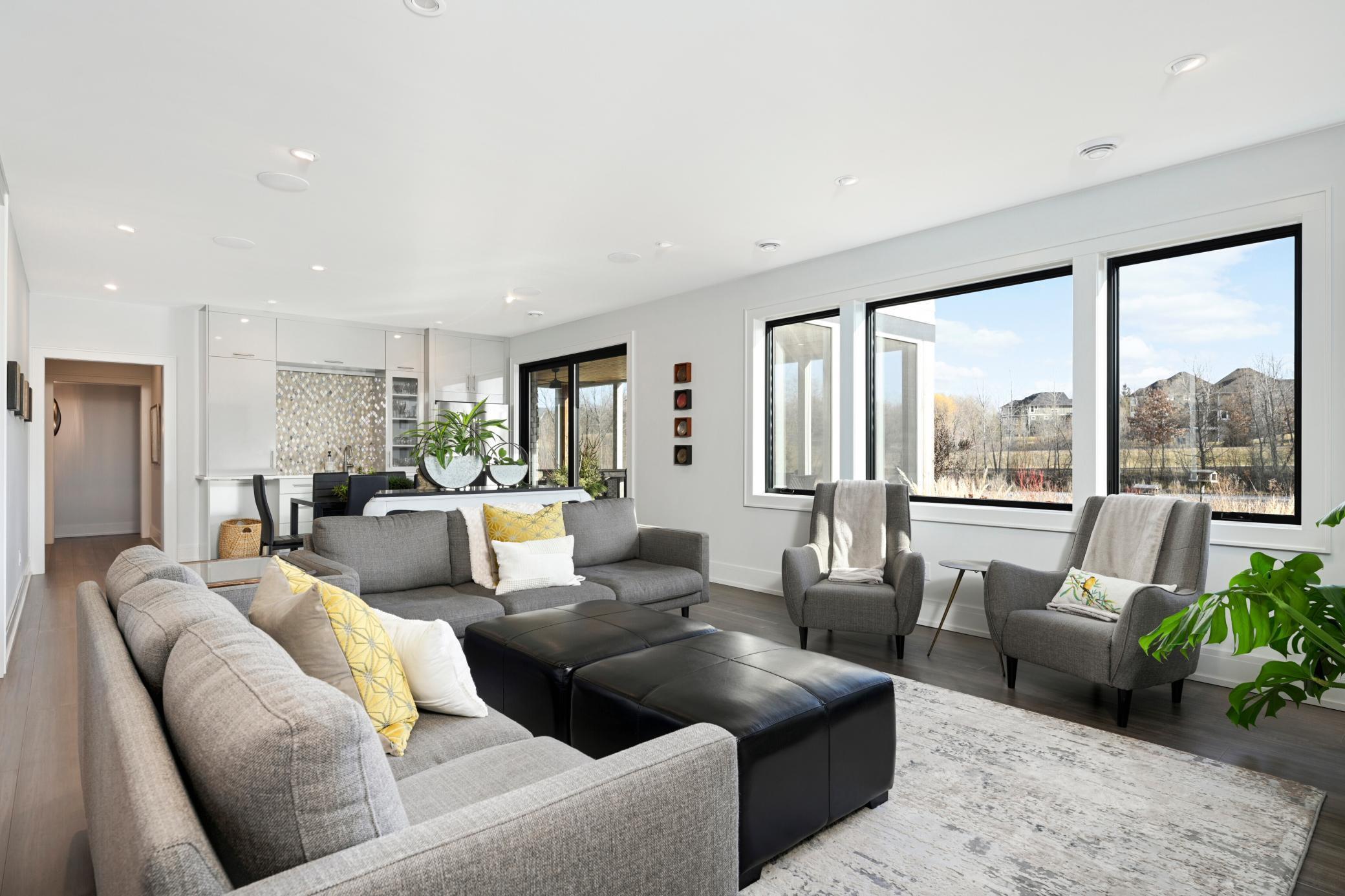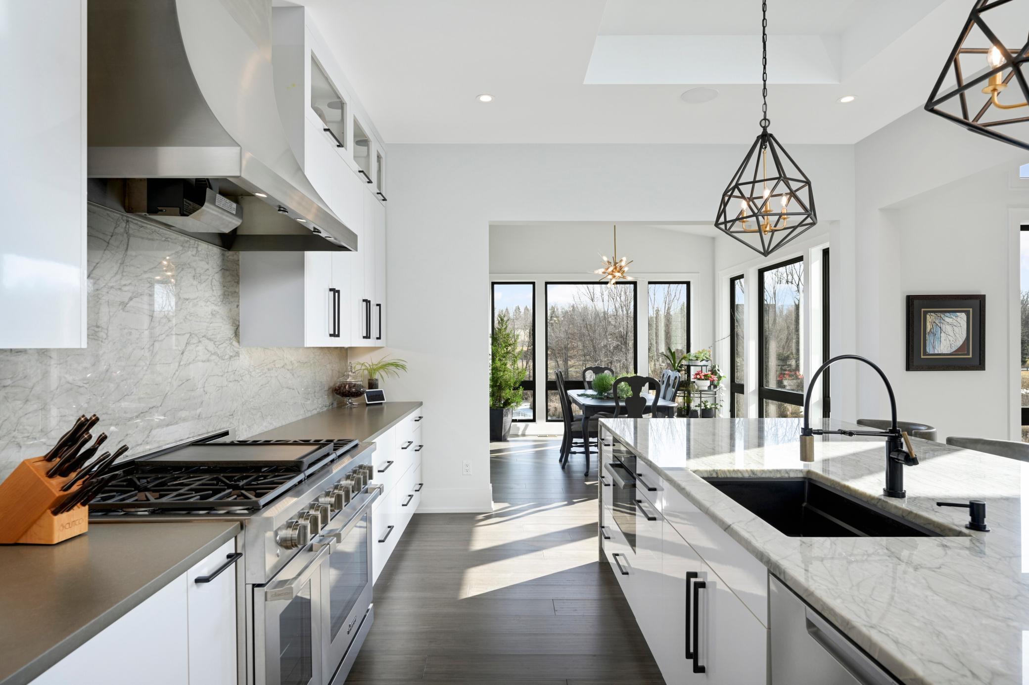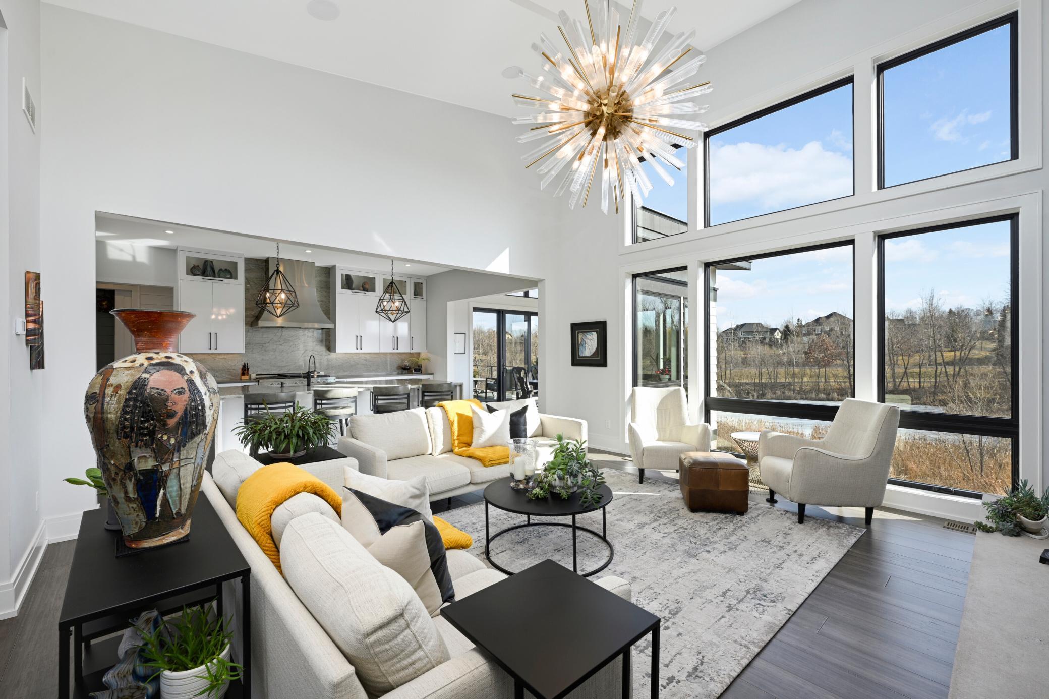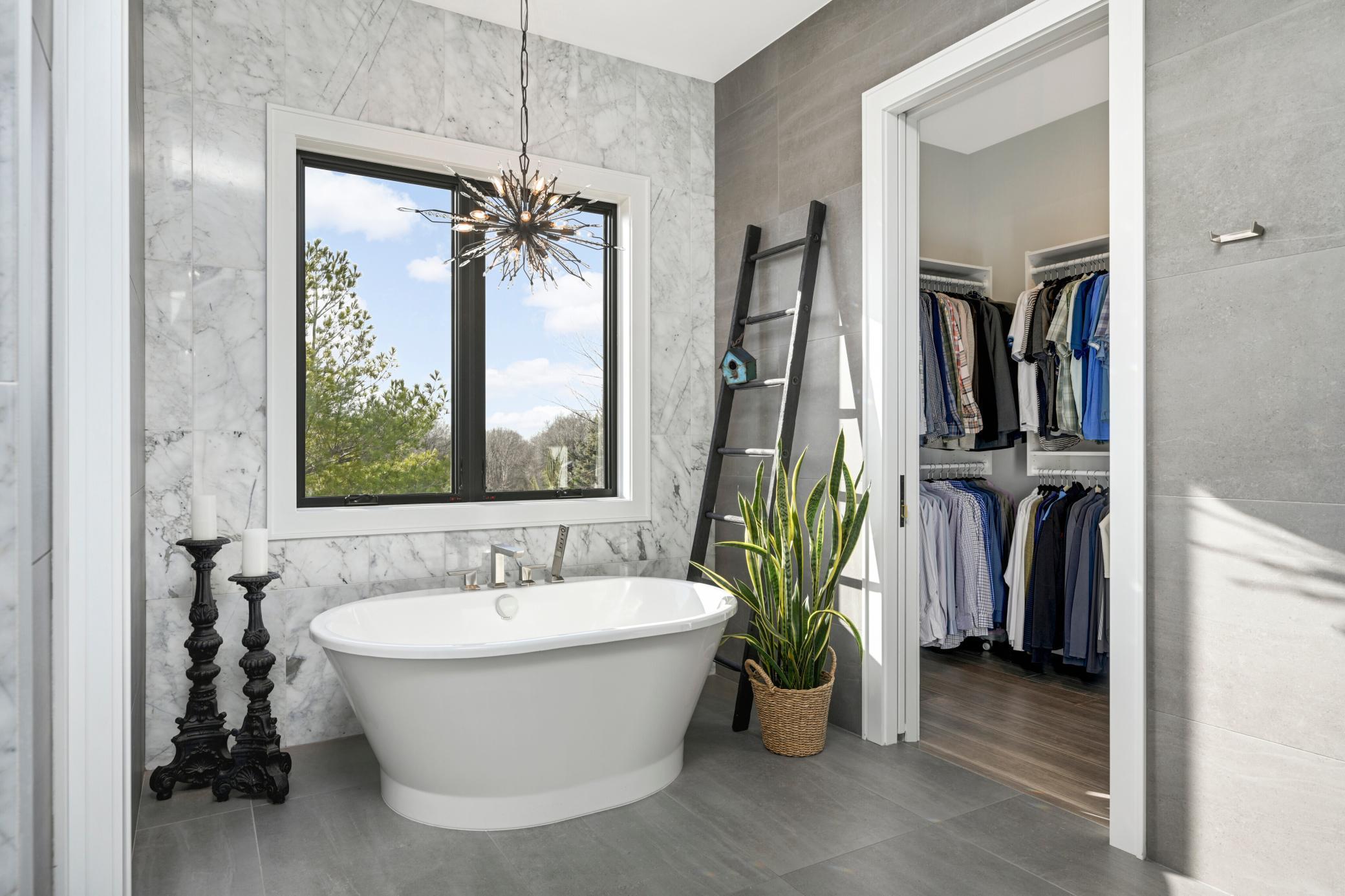 Welcome home to this exquisite custom-built rambler, where contemporary design meets unparalleled luxury. Boasting 4 beds/4 baths, this sanctuary offers a seamless blend of elegance and comfort. Culinary enthusiasts will delight in the gourmet kitchen, equipped with prof series appliances, inc a 48 range w/double oven, stainless hood vent, column fridge & freezer, and an osized center island for effortless entertaining. Floor-to-ceiling windows envelop the great room, infusing the space with warmth and offering panoramic views of the serene surroundings; Wood-burning fireplace takes center stage, adorned with a grand stone surround; Primary Suite features large picture windows framing picturesque views - indulge in the spa-like bath, boasting a walk-in shower, 2 vanities, soaking tub, and massive walk-in closet. W/O LL beckons w/a bright & open family room, wet bar, 3 bedrooms, & porch feat. gas fireplace & cedar plank ceiling offering a tranquil space to unwind & entertain.
