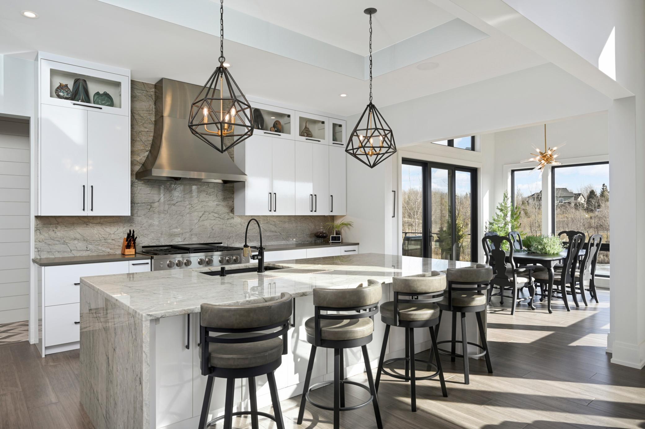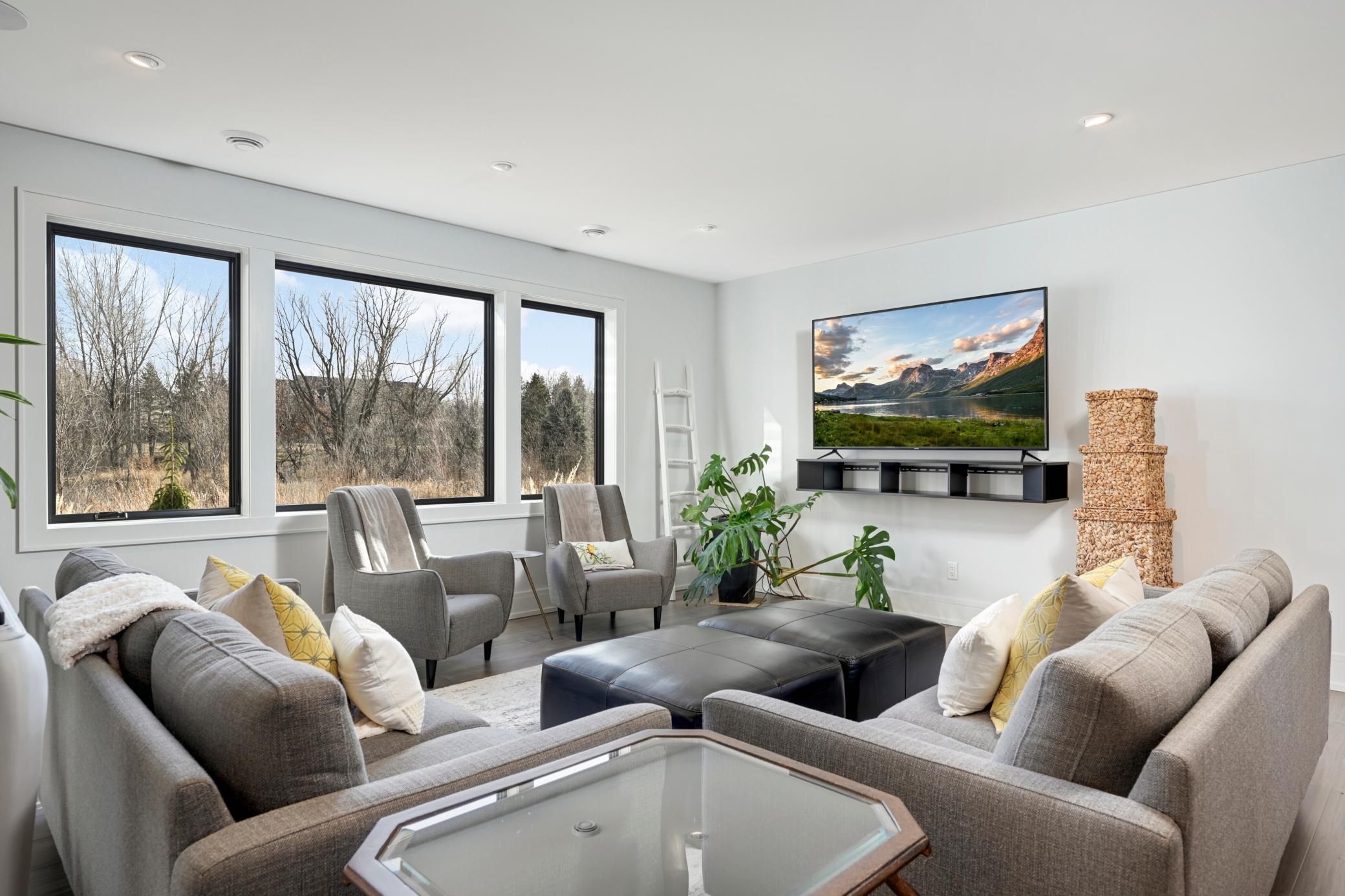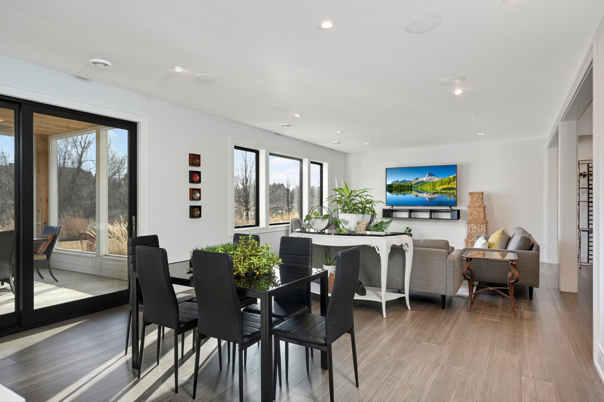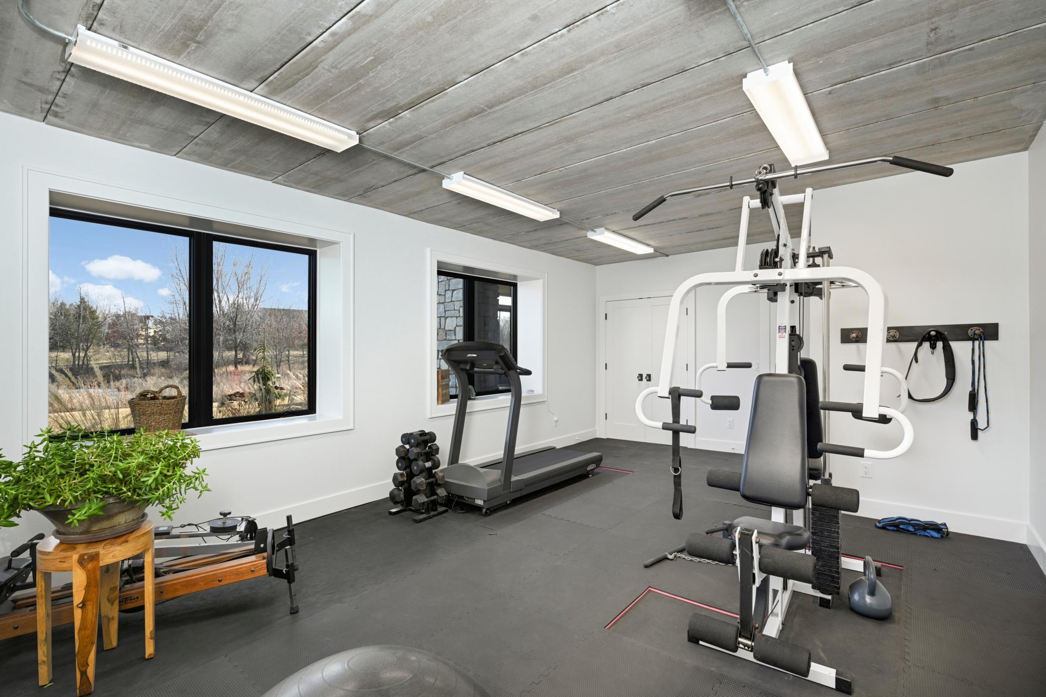 Welcome home to this exquisite custom-built rambler, where contemporary design meets unparalleled luxury. Boasting 4 beds/4 baths, this sanctuary offers a seamless blend of elegance and comfort. Culinary enthusiasts will delight in the gourmet kitchen, equipped with prof series appliances, inc a 48 range w/double oven, stainless hood vent, column fridge & freezer, and an osized center island for effortless entertaining. Floor-to-ceiling windows envelop the great room, infusing the space with warmth and offering panoramic views of the serene surroundings; Wood-burning fireplace takes center stage, adorned with a grand stone surround; Primary Suite features large picture windows framing picturesque views - indulge in the spa-like bath, boasting a walk-in shower, 2 vanities, soaking tub, and massive walk-in closet. W/O LL beckons w/a bright & open family room, wet bar, 3 bedrooms, & porch feat. gas fireplace & cedar plank ceiling offering a tranquil space to unwind & entertain.