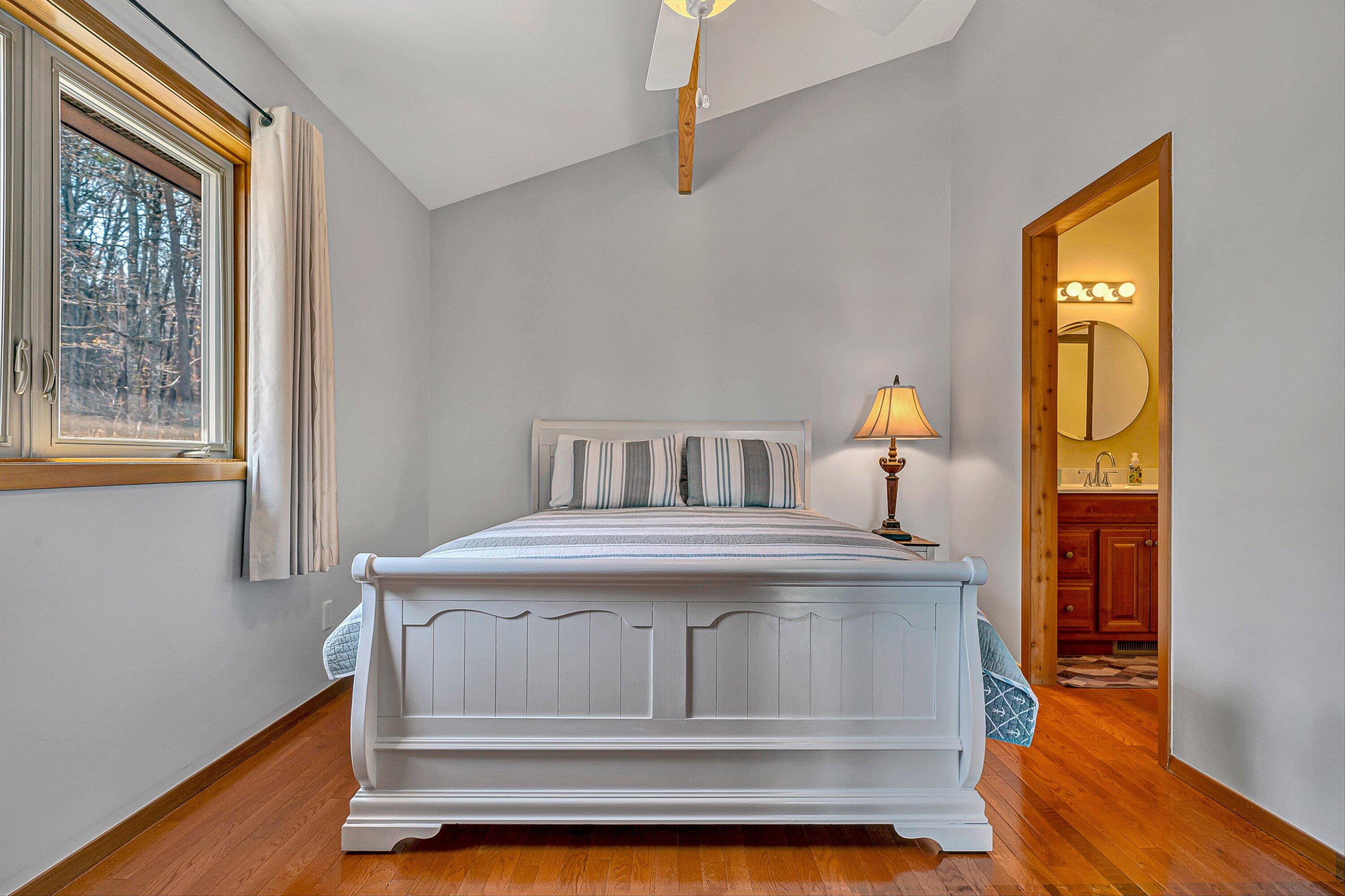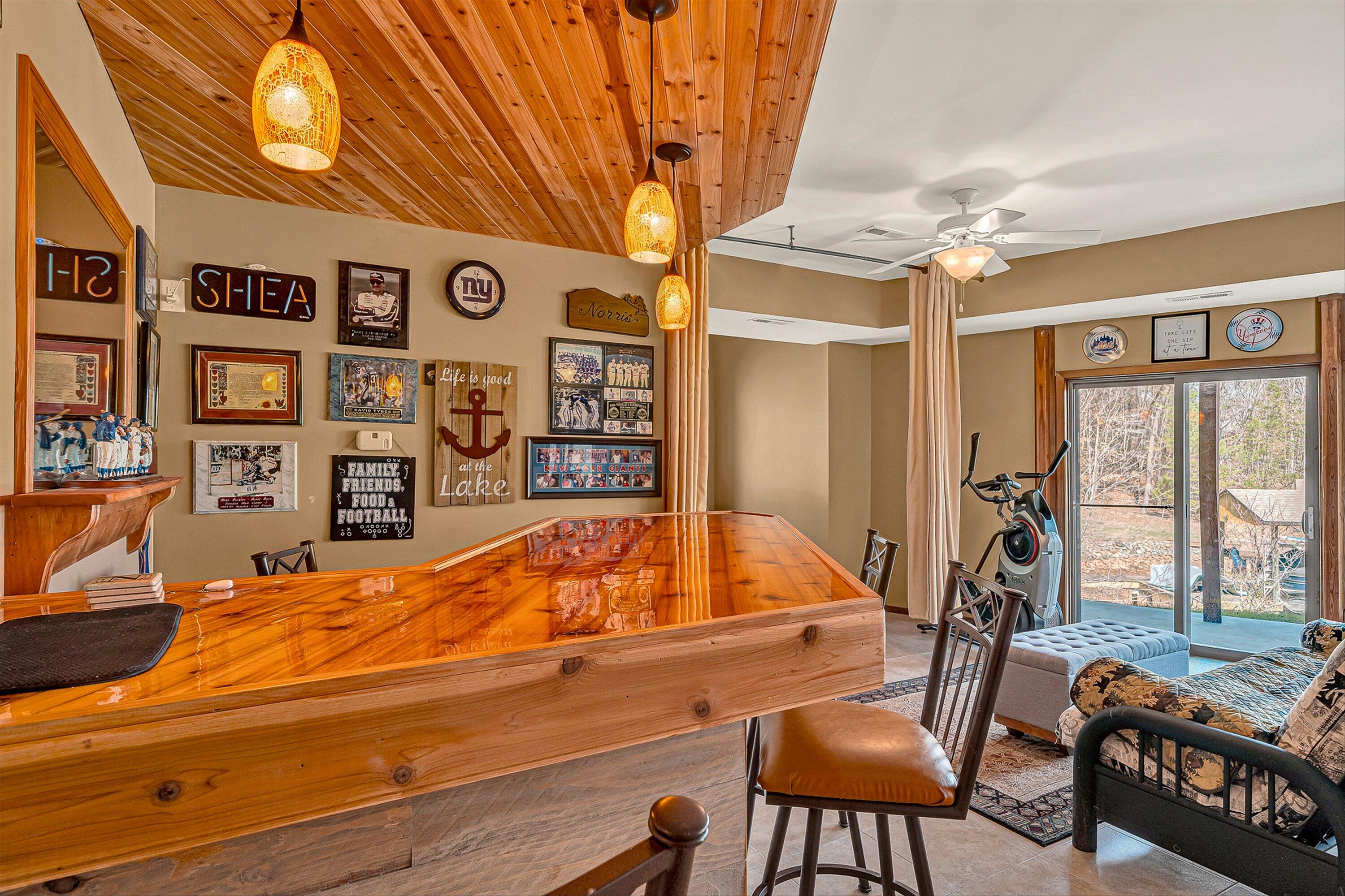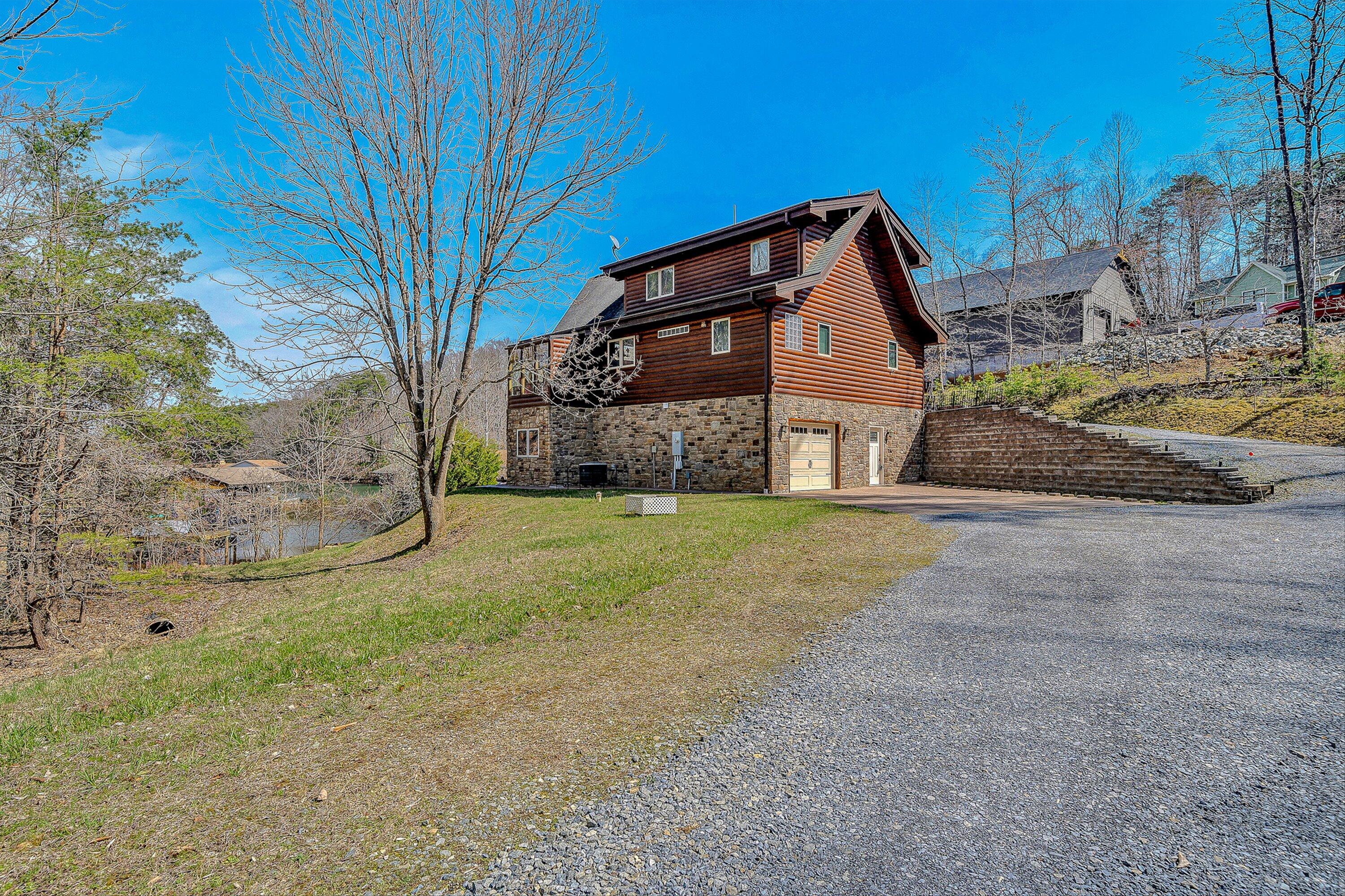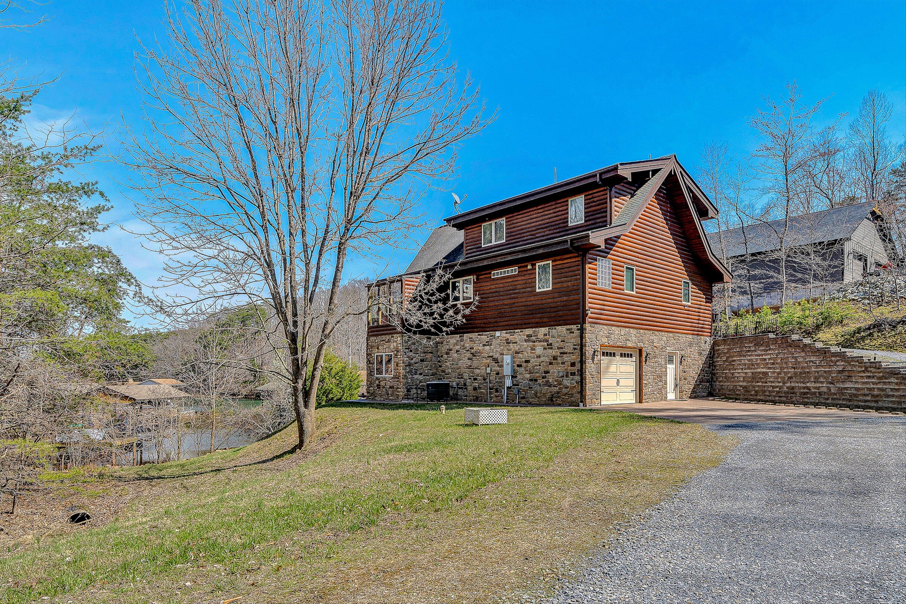 Gorgeous lakefront Lindal Cedar chalet-style home situated on 1.37 acres with beautiful morning views of the water. This home offers 3 bedrooms, 3.5 baths, plus a finished basement with bar area and potential for 4th and 5th bedrooms. The main living area features vaulted ceilings, wood floors, a wood-burning fireplace, and stunning tongue-and-groove ceilings in the living and dining areas. Walls of windows provide incredible lake views and natural light, with a deck overlooking the water and paver walkway leading to the dock. The primary suite includes a jetted tub, stand-up shower, and large walk-in closet. Recent updates include all new kitchen appliances (2024), new HVAC system (2022), new 80-gallon hot water tank, Leaf Filter gutter protection with lifetime warranty, and a septic system with new pump and float. Built with 2x6 framing and 5/8 sheetrock for quality construction and insulation.