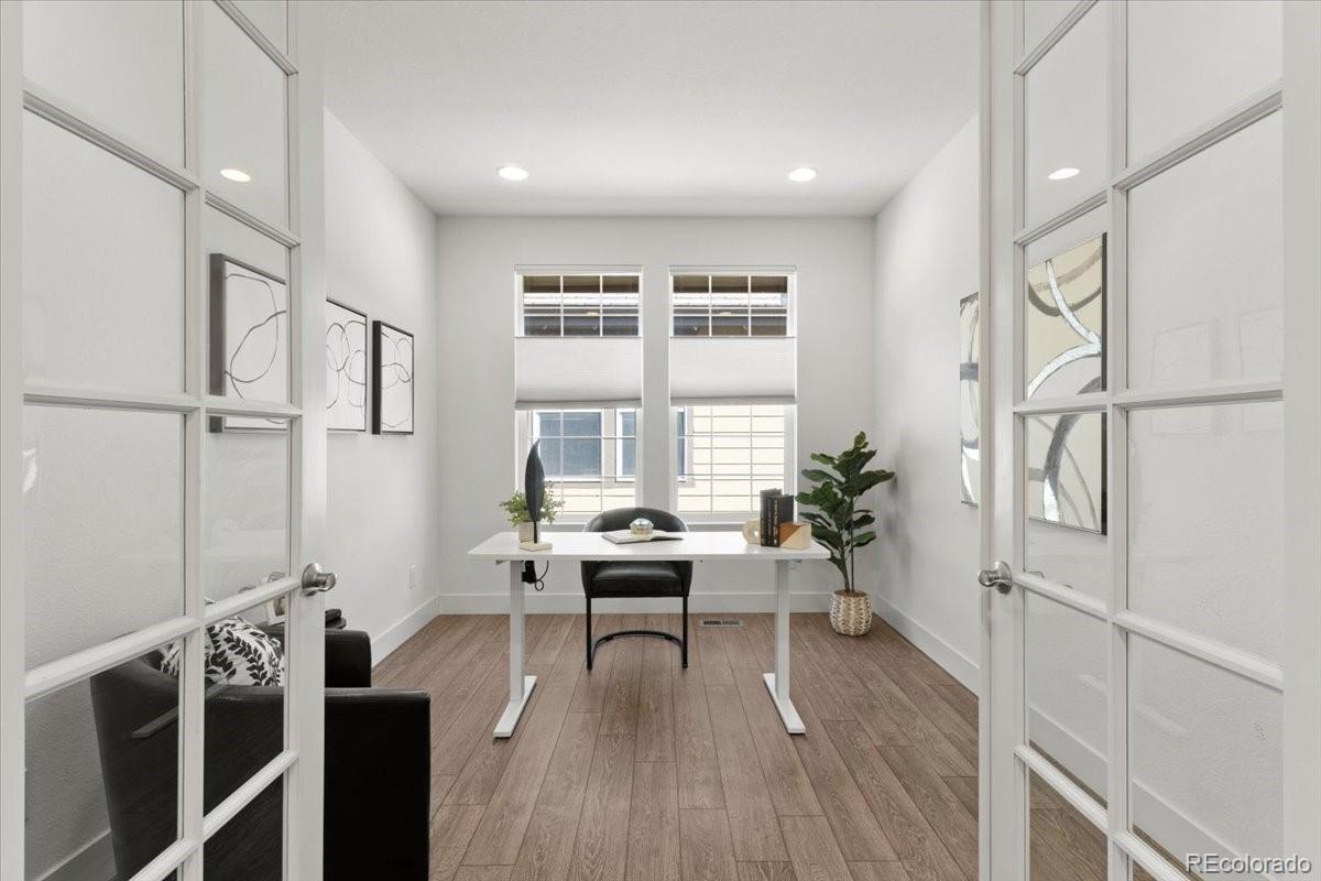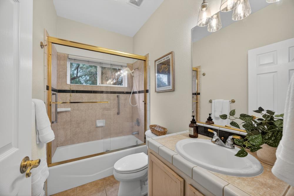 Elegant and beautifully remodeled, this impressive 5-bedroom, 3-bath home blends comfort, style, and functionality in every detail. Featuring a bright open floor plan with soaring ceilings and abundant natural light, the home feels both spacious and welcoming from the moment you enter. The updated kitchen shines with gorgeous new granite countertops, while brand-new luxury wood-look flooring and tile enhance the downstairs living areas. Upstairs, plush new carpet creates a warm and cozy retreat for the bedrooms. Designed with flexibility in mind, the main level includes a private in-law suite with a full bathroom perfect for guests, extended family, or multigenerational living. Need a home office? No problem a dedicated downstairs office offers a peaceful space with garden views, ideal for working from home. Step outside to a large backyard ready for entertaining, relaxing, or creating your dream outdoor oasis. Additional highlights include owned solar for energy efficiency and savings, plus a spacious 3-car garage. The third garage bay offers endless possibilities perfect for a home gym, workshop, or extra storage. This home truly offers the perfect balance of elegance, comfort, and everyday practicality an exceptional place to live, entertain, and thrive.
