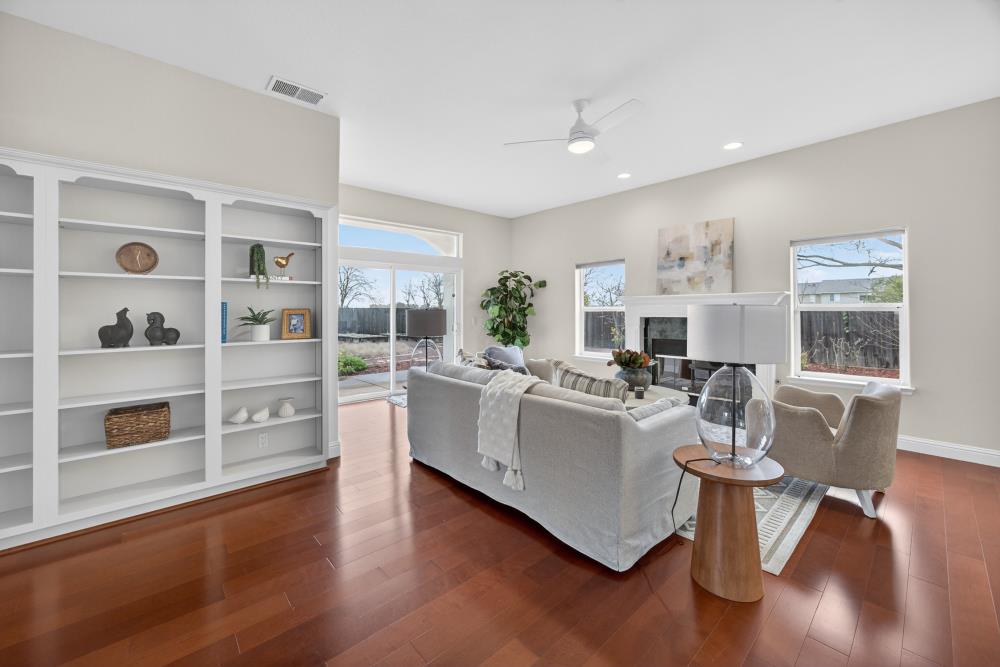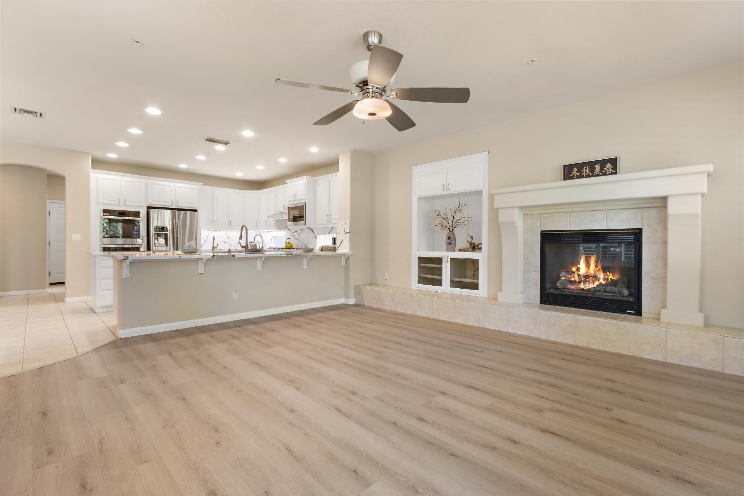 Set on a generous 0.33-acre lot backing to a serene nature preserve, this expansive 5 bed, 4.5 bath residence offers approximately 3,800 square feet of thoughtfully designed living space in a private cul-de-sac location. Custom built in 1999, the home features both formal living and family rooms, each with its own fireplace, along with a formal dining room ideal for entertaining. The heart of the home is the great-room concept kitchen and family room, complete with granite countertops, double ovens, a working island with sink, and a breakfast nook framed by a picture window overlooking the backyard. Built-in shelving adds both character and function to the family room. Brazilian redwood flooring and new luxury vinyl tile flow through the main living areas, complemented by new upstairs carpet, and fresh interior and exterior paint throughout. A downstairs bedroom with an attached ensuite provides flexibility for guests or multigenerational living. Upstairs, the spacious primary suite offers a seating area, double walk-in closets and private exterior balcony, while large secondary bedrooms further enhance the floor plan. Additional highlights include an attached three-car garage, an owned 7.2kW photovoltaic solar system, and access to Stonegate Country Club. This home combines size, comfort, and a peaceful setting in a highly desirable location. You wont want to miss it.
