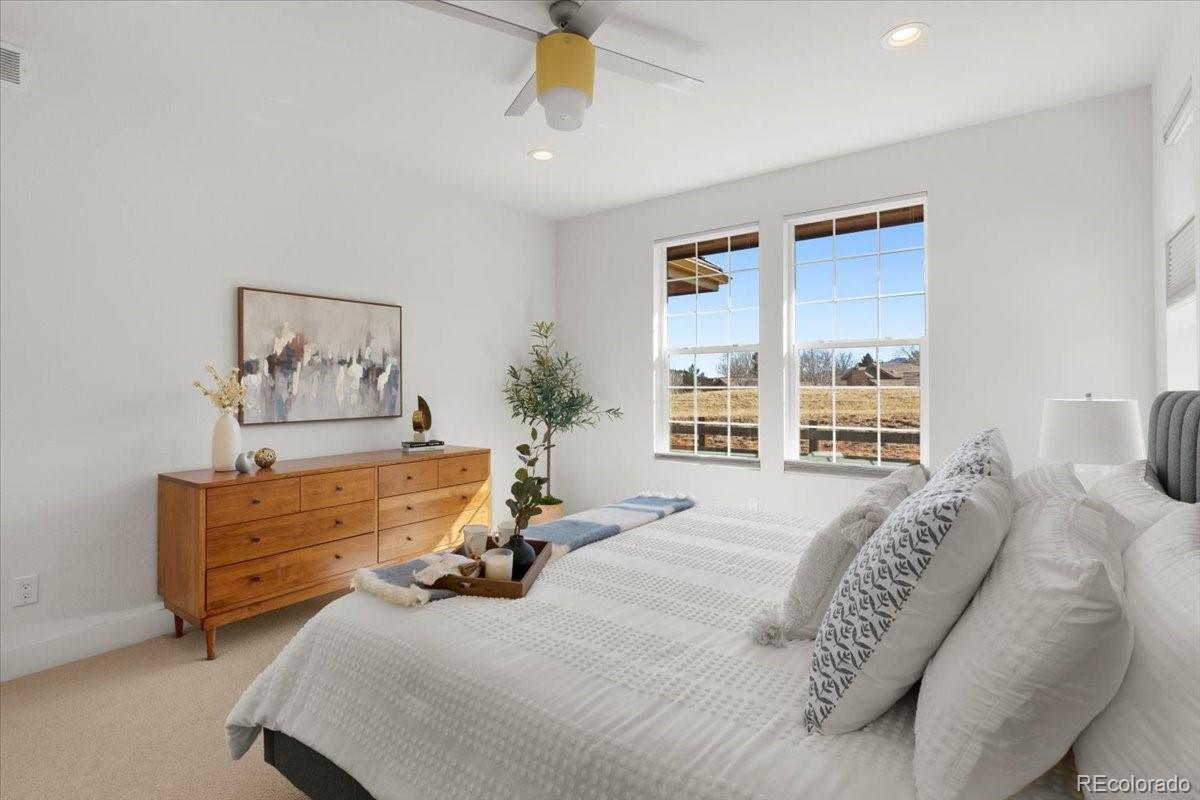 Ranch Style Home backing to Red Rocks Golf Course with expansive mountain views! Desirable main floor primary bedroom in the coveted community of Lyons Ridge. Four bedroom, three full bathrooms with an open floor plan and abundant natural light! Spacious gourmet kitchen with gorgeous granite slab and huge island. Kitchen opens to the family room with gas fireplace and large dining room area. Secondary bedroom on the main level with adjacent full bathroom. Main floor study with french doors. Enjoy the mountain views or watch the golfers from your covered deck. Spacious primary bedroom with 5-pc bathroom and walk-in closet. The lower level has a huge great room - perfect as a media or game center, and large enough for a pool table. Two large bedrooms and full bathroom. Oversized 3-car garage. Ride your golf cart to exclusive Red Rocks Country Club, with an 18 hole golf course, pool, clubhouse, restaurant and access to trails. Great location close to C470, downtown Morrison, Red Rocks Amphitheater, easy access to the mountains and minutes to restaurants and shopping.