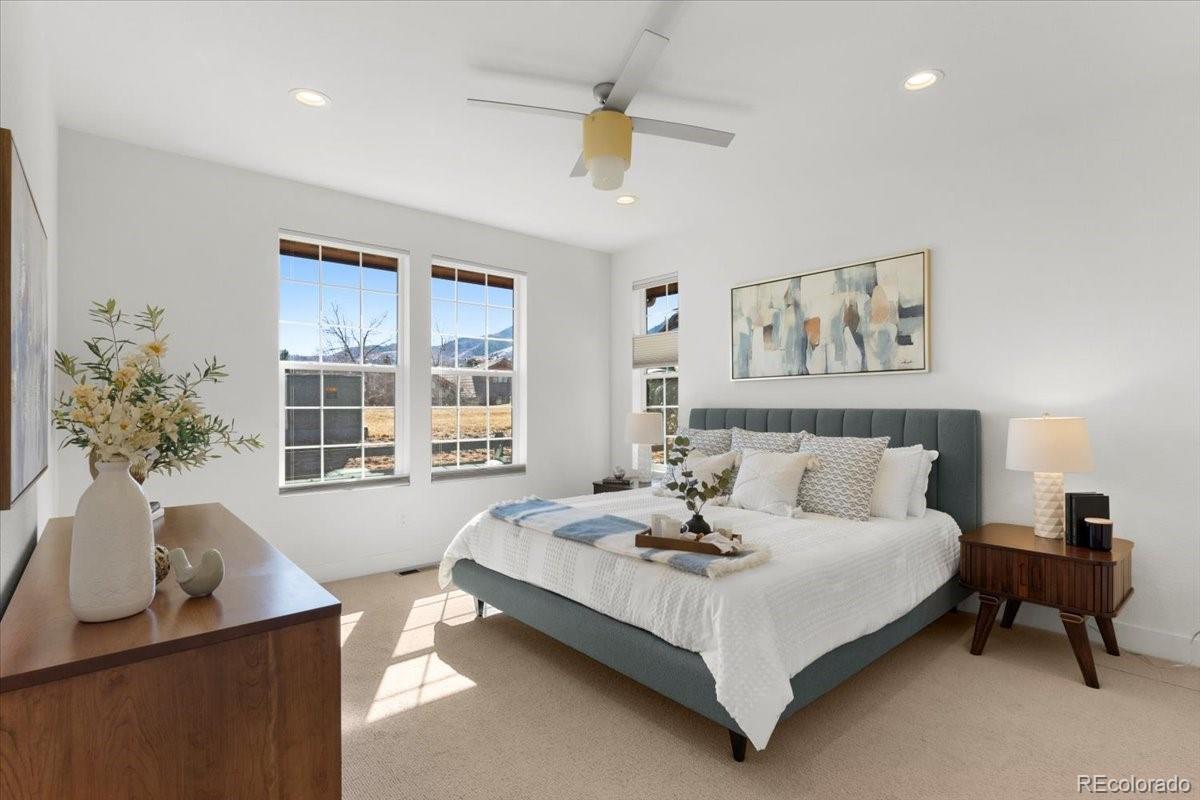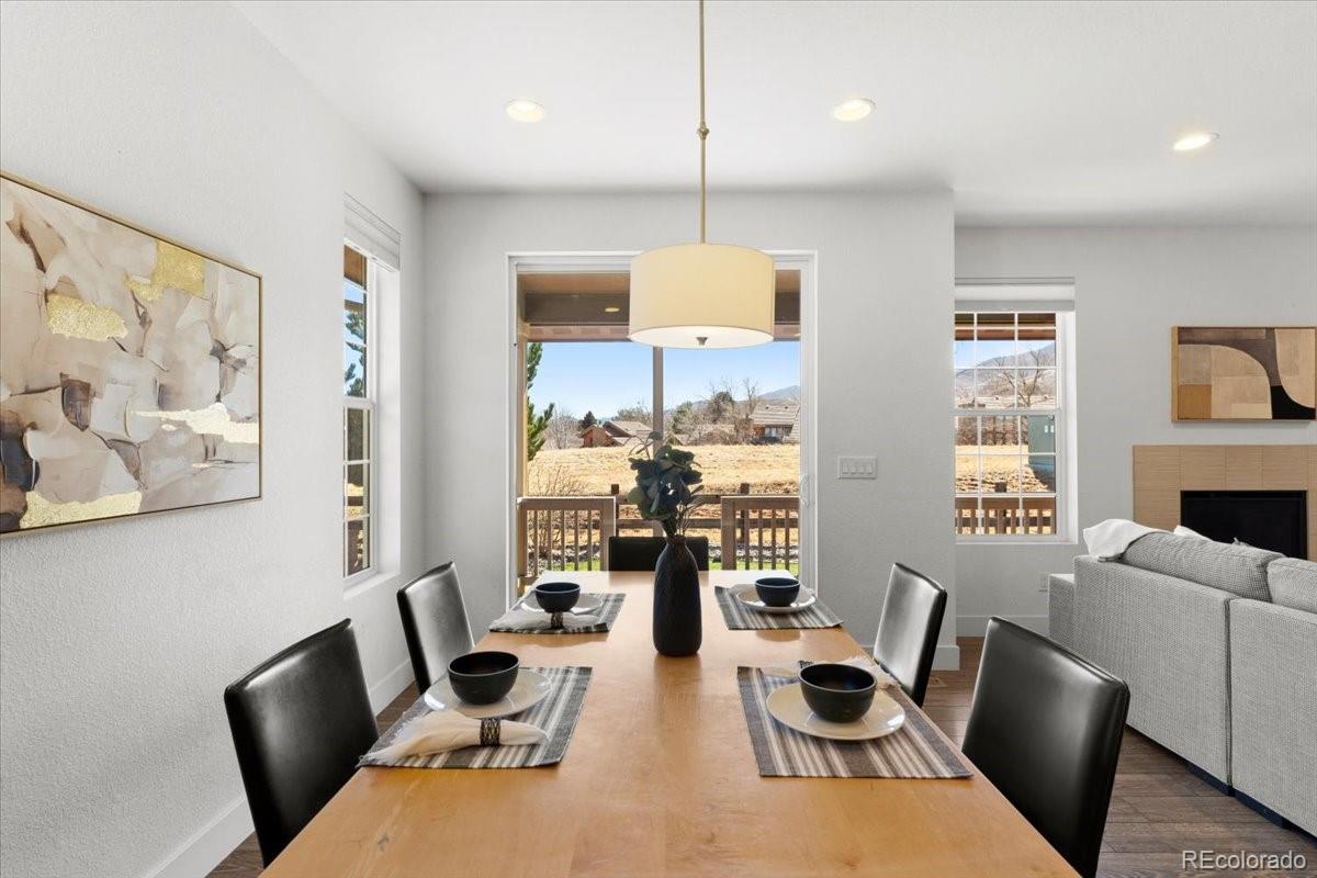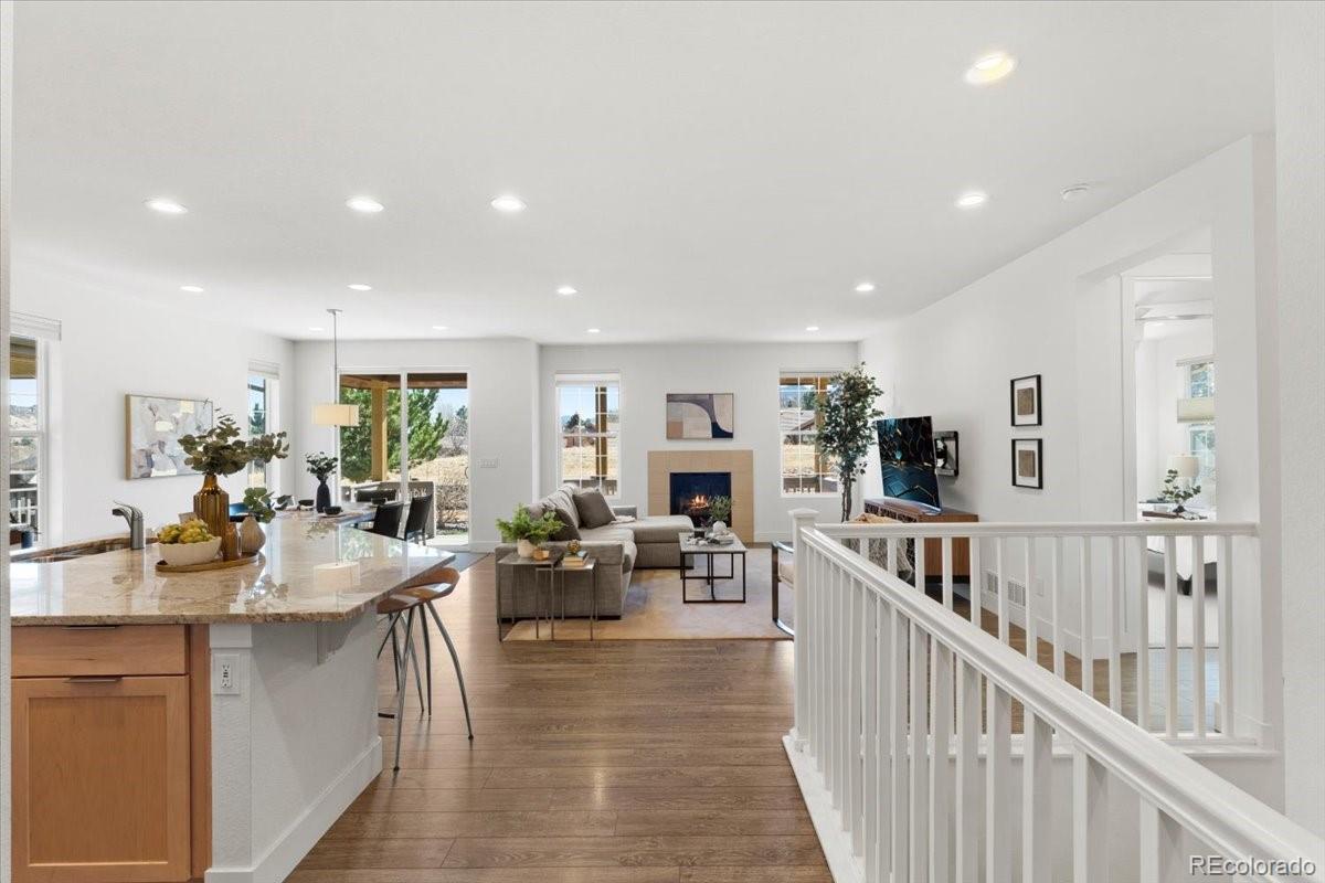 Ranch Style Home backing to Red Rocks Golf Course with expansive mountain views! Desirable main floor primary bedroom in the coveted community of Lyons Ridge. Four bedroom, three full bathrooms with an open floor plan and abundant natural light! Spacious gourmet kitchen with gorgeous granite slab and huge island. Kitchen opens to the family room with gas fireplace and large dining room area.