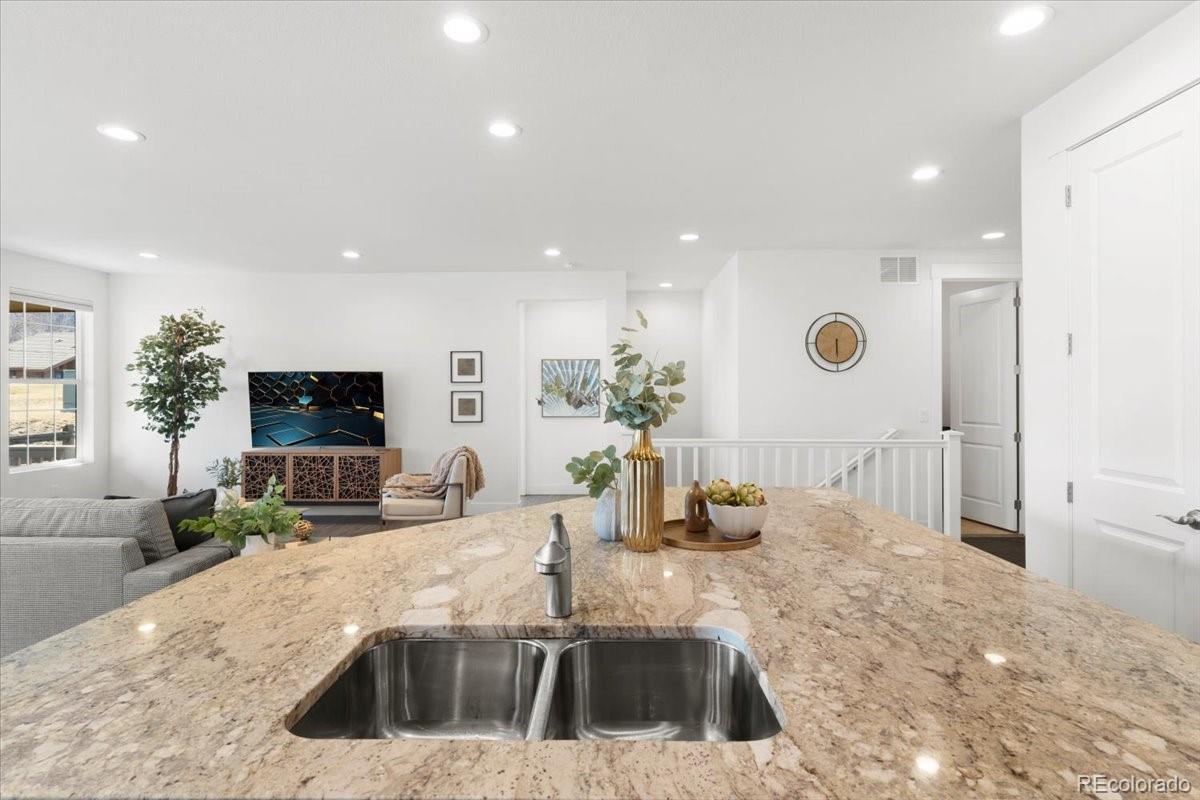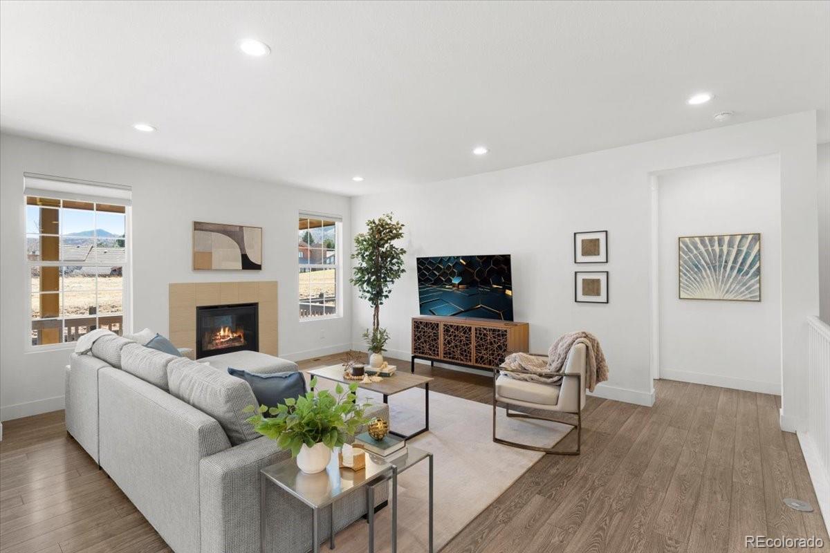 Positioned on the 12th tee box of Continental Country Club, this cul-de-sac home offers golf course living on a rare .43-acre lot with NO HOA. Backing the course and framed by Peak views, the setting is exceptional. The great room features large windows, thoughtfully placed skylights, and a gas fireplace, filling the home with natural light and warmth.