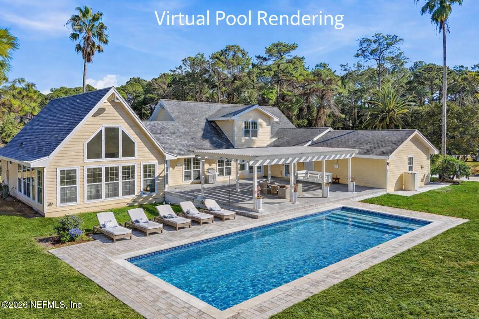 WELCOME to this AMAZING home on over THREE ACRES in Ponte Vedra. This is a rare opportunity to buy an estate home in Quail Ridge Farms, conveniently located in Northern St Johns County with easy access to both Jacksonville & Saint Augustine. Set on a private 3.06-acre homesite with a pond, this beautifully updated 4-bedroom, 3.5-bath residence offers space, style, & peace of mind with extensive recent improvements. In addition to four bedrooms, the home features a dedicated office, ideal for working from home or creating a quiet retreat. A new circular driveway welcomes you home, while Hardie siding (2024), new windows (2024), and a 2015 roof provide lasting curb appeal. Inside, enjoy a thoughtfully expanded sunroom area with a 2023 addition, updated kitchen complemented by marble countertops & abundant natural light. The home features a smart layout with upstairs HVAC replaced in 2021 and downstairs HVAC in 2024, new hot water heaters (2024), new septic tank (2024) and an insulated attic for energy efficiency. Step outside to a pergola with footers, ready for screening if desired, creating the perfect outdoor retreat. This property offers modern updates, flexible living, and acreage privacy. Opportunities like this in Quail Ridge Farms are rare. Ideally located right outside of Nocatee where you can obtain a yearly membership for a nominal fee to all Nocatee Parks (water slides, ziplining, gym, sports courts and fields. Schedule your private showing today and experience firsthand what makes this home and community so special. Pool is a conceptual rendering shown for illustrative purposes only and is not included with the property.