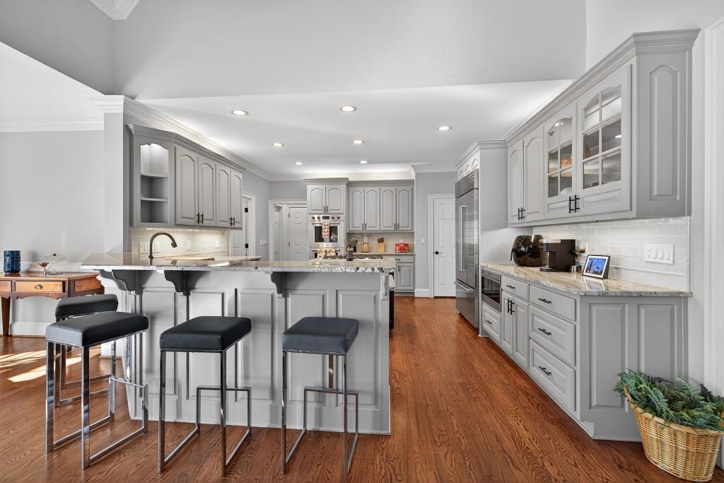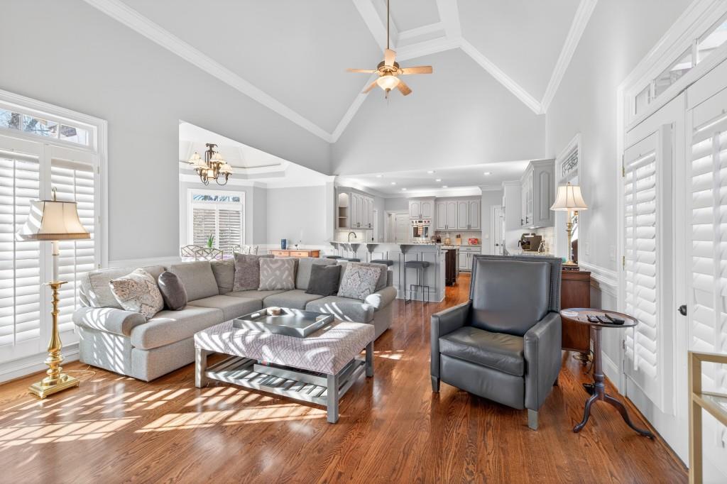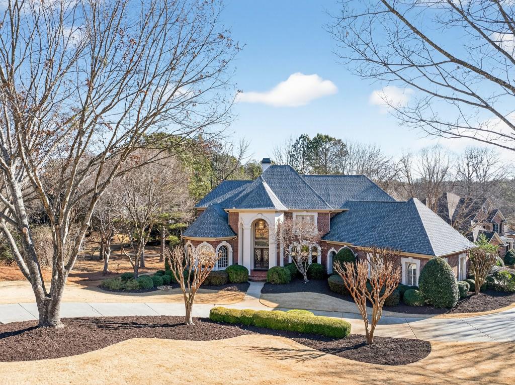 Stunning luxury home located in the prestigious, gated Sugarloaf Club community, showcasing fabulous curb appeal and exquisite interior millwork throughout. This elegant brick masterpiece offers exceptional craftsmanship and a thoughtfully designed floor plan ideal for both everyday living and entertaining. The richly hued gourmet kitchen opens seamlessly to a beamed, vaulted keeping room and a unique breakfast room with a beadboard ceiling. Spacious living areas are filled with natural light, and an inviting porch with a retractable awning provides the perfect space to relax outdoors. The luxurious owners suite on the main level is a private retreat featuring his-and-hers closets and a spa-inspired bath. Extra-large secondary bedrooms feature custom-built desks and bookcases. The fully finished terrace level is an entertainers dream with a full theater room, billiards room, exercise room, entertaining bar, in-law suite, and more. A circular driveway and cul-de-sac street enhance the homes exceptional appeal. Roof replaced in August 2025. Residents enjoy world-class Sugarloaf Club amenities, including championship golf, clubhouse, dining, tennis, fitness, and security. Conveniently located near upscale shopping, dining, and major highways, this is an exceptional opportunity in one of Gwinnett Countys most sought-after communities.