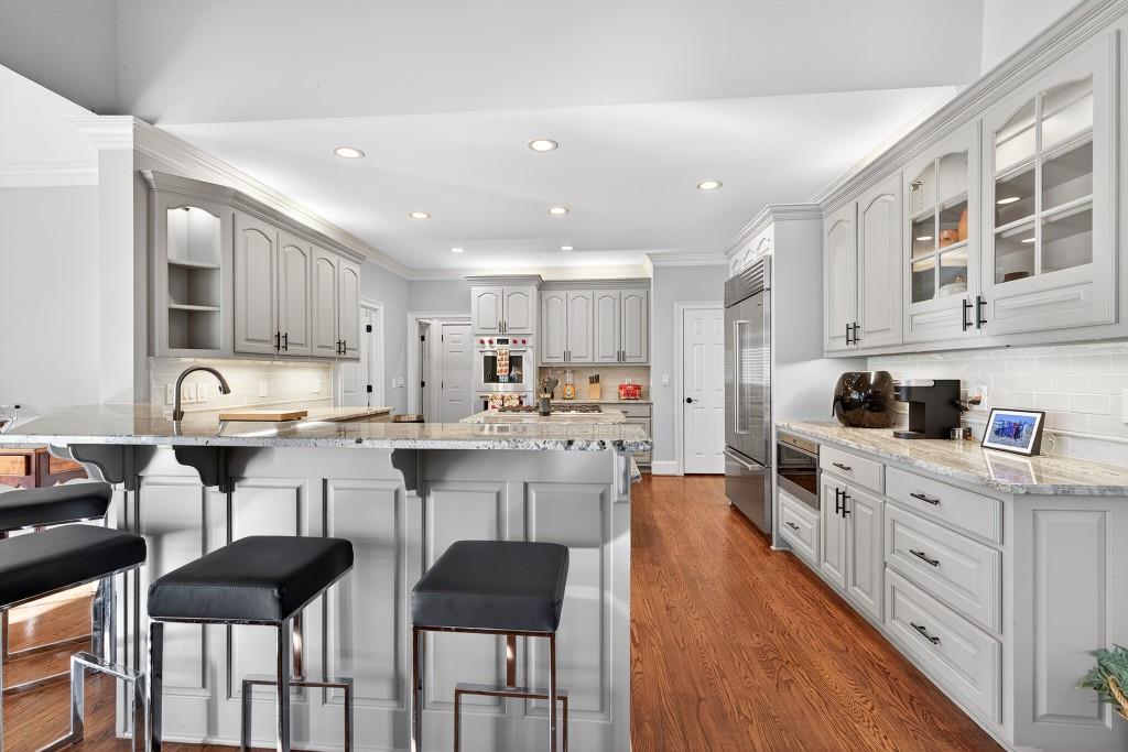 Lux Living in Prestigious area on Private Cul De Sac. Brick/Stucco 12 room, 5 bedrooms, 4.5bath, Center Hall Colonial minutes from Town Center. Featuring granite Entry Hall, King Size Sunken Family Room w/wood burning Fireplace. Updated EIK w/Viking and Sub Zero appliances, plus 2nd Butlers kitchen.