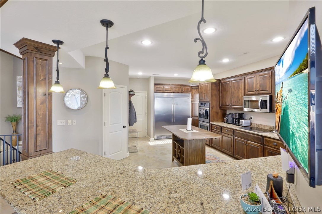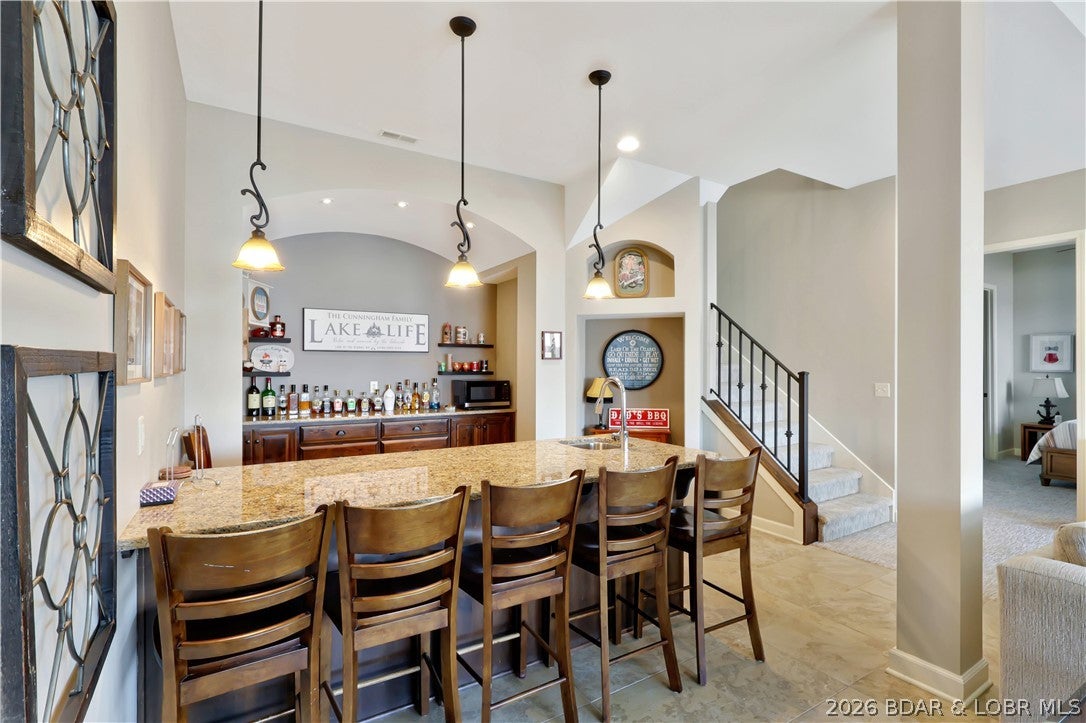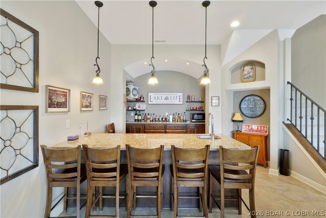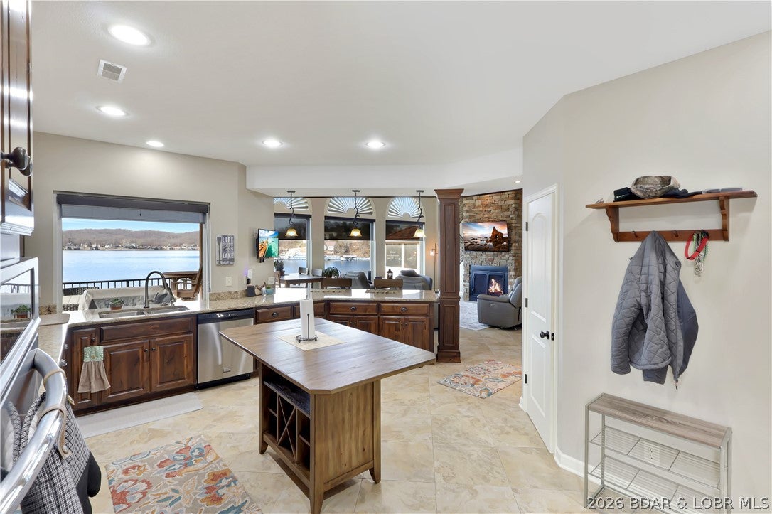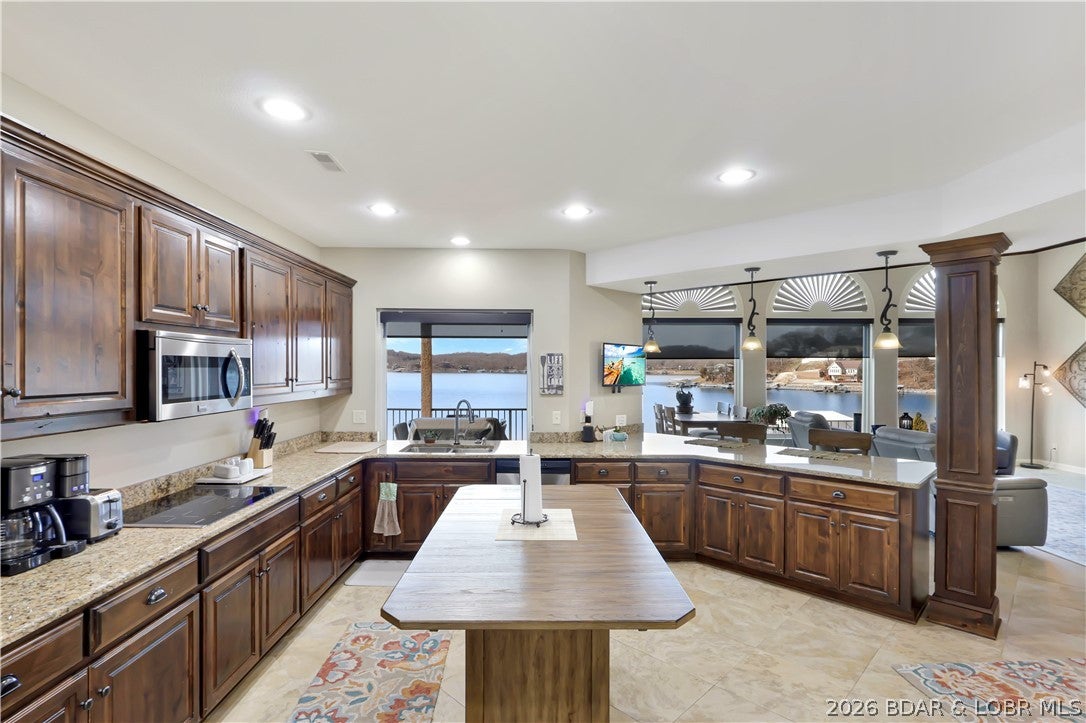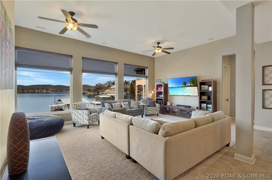 Welcome to 1323 Castle Ct at the 17 Mile Marker here at Lake of the Ozarks This waterfront retreat offers 100 feet of shoreline, deep water, a coveted cove setting & main channel views. Fully renovated from top to bottom, this home is designed for sunsets, lake days & relaxation. A stunning floor-to-ceiling fireplace, open-concept kitchen & dining area w/inviting bar area that flow seamlessly toward the water. A spiral staircase leads to loft overlooking the main living area, perfect for morning coffee, lake views, or golden-hour light. Bedroom levels offer private, serene retreats, including a stunning primary suite with a spa-inspired lakeside bathroom. Addtnl guest suites & spacious bunk-style room for hosting. The lower entertainment level opens directly outdoors, steps from your private dock & effortless waterfront living. A rare opportunity awaits: seller is offering a 75,000 furnishings allowance & chance to collaborate with an interior designer to complete the homes furnishings. A curated look book is available, with selections fully customizable. More than a home this is a lifestyle of sunsets, boating & entertaining, Schedule your showing today.