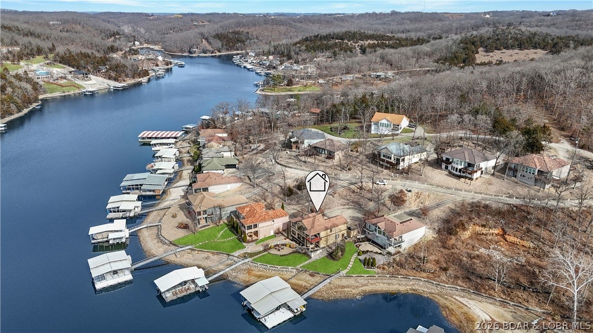 This stunning 5 bedroom, 4.5 bath home is the epitome of luxury Lakefront living with its prime location, breathtaking views, & exquisite finishes located here at Lake of the Ozarks. This gated community located on the westside offers luxury, privacy, views,& a private park like drive into your new Lake home.