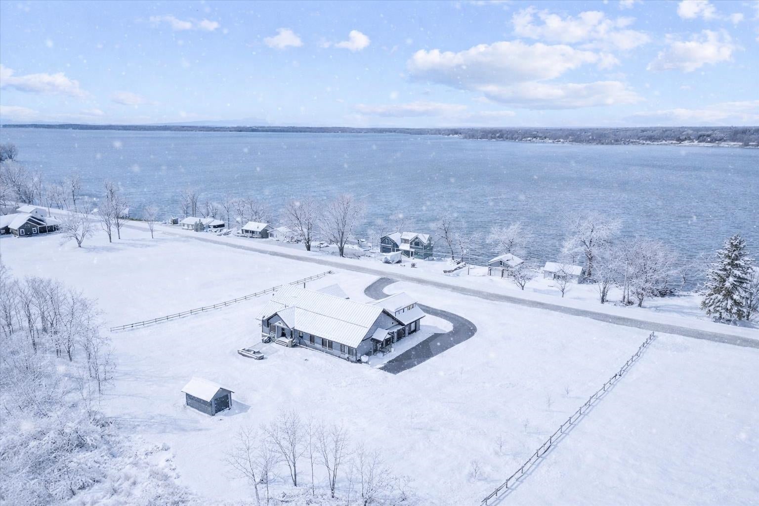 Lake views. Western sunsets. Built in 2022without compromise. This custom-built home captures sweeping western views over the lake, delivering the kind of sunsets buyers dream aboutnight after night. Designed for easy one-level living, the bright, open layout offers both everyday comfort and effortless entertaining. At the heart of the home, the great room is anchored by a striking stone gas fireplace, while the chefs kitchen is built to impressfeaturing a large island, pantry, wine cooler, and plenty of space for gathering. The primary suite is a true retreat, complete with a walk-in closet, dual vanities, a tiled shower with dual heads, and a soaking tub designed for unwinding at the end of the day. Two additional bedrooms and a full bath provide flexibility for guests, family, or a dedicated work-from-home setup. Step outside and the lifestyle really takes overrelax on the covered porch with peaceful lake views, or gather around the backyard stone patio with its own gas fireplace. A heated three-car garage offers exceptional storage, while the finished space above creates the perfect bonus area for an office, guests, or recreation. Enjoy shared private lake access with 160 feet of shorelinebringing lake living within easy reach whenever you want it. Newer construction. Luxury finishes. Unmatched sunsets. Opportunities like this dont come along oftenand they dont last.