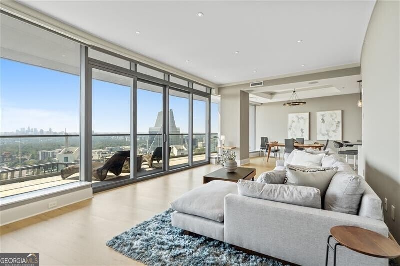 Exquisite Luxury Living at The Sovereign! Located in one of Atlantas most iconic luxury high-rises, this spectacular residence at The Sovereign offers breathtaking, panoramic views from every room. From the moment you enter the elegant foyer, you are greeted by floor-to-ceiling windows and expansive sliding glass doors that perfectly frame the glittering skyline, lush treetops, and serene pool terrace below. This highly sought-after floor plan flows effortlessly from the spacious family room to the dining area and into the designer kitchen, appointed with Sub-Zero, Wolf, and Thermador appliances, custom cabinetry, and a walk-in pantry. Designed for both comfort and style, the home has been meticulously renovated with hardwood floors throughout, a neutral palette, and timeless finishes. The grand primary suite boasts its own private balcony with stunning views, a spa-inspired marble bathroom, and dual custom walk-in closets. A second bedroom with equally impressive vistas provides comfort for family or guests, while a separate office offers a quiet retreat for work or reading. Enjoy Atlantas finest sunrises and sunsets from the expansive outdoor terrace. Additional features include two private parking spaces, a storage room, and a private wine cellar. As a resident of The Sovereign, youll enjoy world-class, resort-style amenities including a recently renovated Skydeck with a zero-entry saltwater pool and hot tub, Wolf-equipped grilling stations, three private entertaining areas, a meeting room, wine cellar, and exclusive dining club. Step outside to Bistro Niko, or stroll to Phipps Plaza and Buckheads finest shops and restaurants-all just moments away. Dont miss this rare opportunity to own one of The Sovereigns most desirable floor plans, combining sophisticated design, unrivaled views, and the very best of Buckhead living.