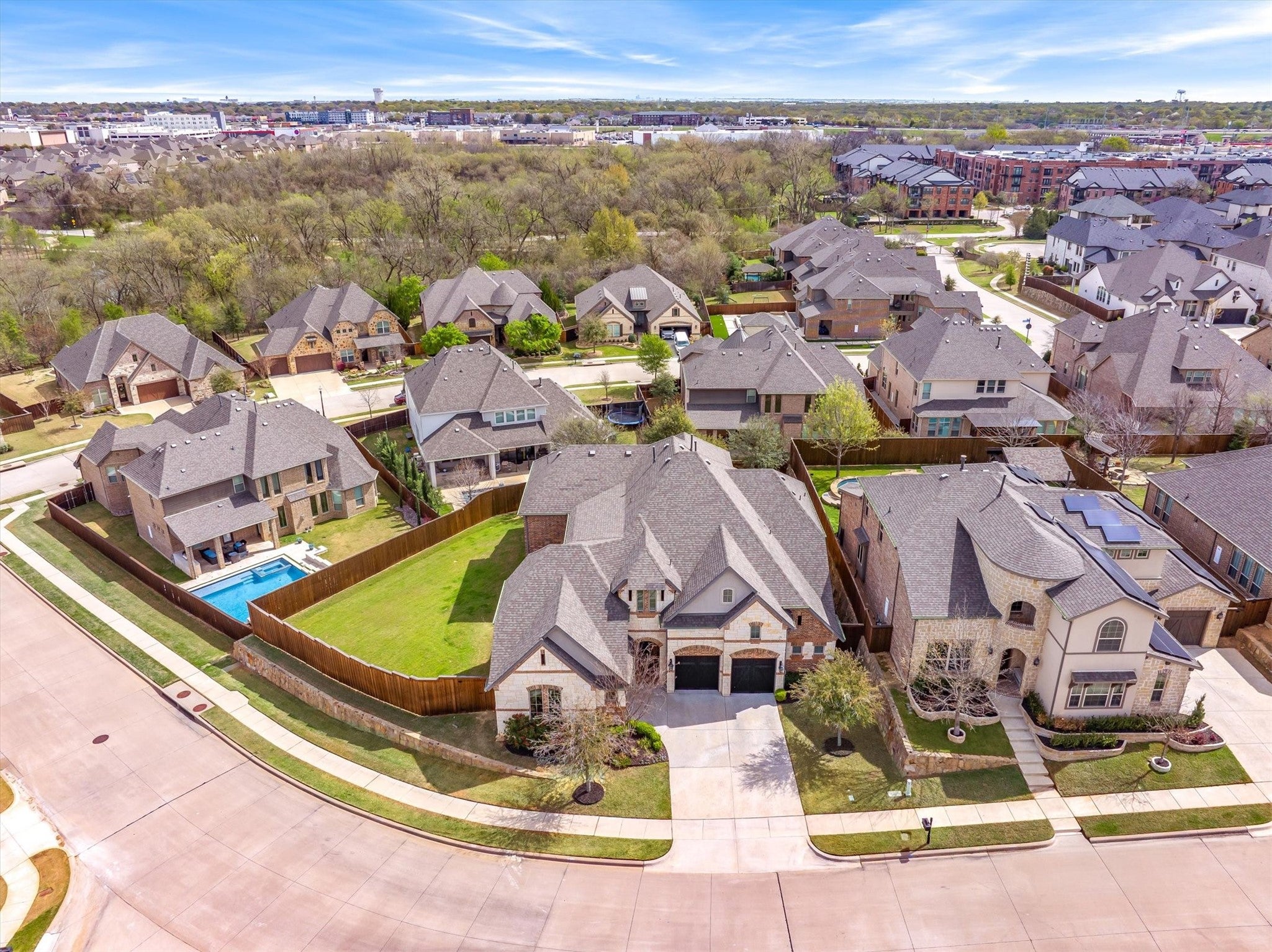 Welcome to an exceptional five-bedroom residence nestled in one of Colleyvilles most coveted enclaves! We present the gated community of Creekside. A distinctive address where each street name is inspired by vineyard charm. This refined home blends timeless architecture with modern sophistication, offering an atmosphere of quiet luxury from the moment you arrive. Thoughtfully designed expansive living spaces, soaring ceilings, & abundant natural light create an effortless flow ideal for both intimate gatherings or grand entertaining. Living room with decorative custom wrapped fireplace wall that draws you in and is lined with an abundance of windows boasting electronic remoted controlled blinds. The gourmet kitchen serves as the heart of the home featuring premium finishes, custom accent cabinetry lighting, generous workspace & seamless connection to the main living areas. Retreat to the serene main level primary suite, where comfort & elegance converge in a spa-inspired setting with oversized walk-in shower, private lavatory, fabulous walk-in closet with windows incorporating natural light. Main level MIL suite with full bath en suite & private back patio access. Winding staircase to mid level office, upper-level bedrooms, double doors to media-theatre room & flexible spaces provide versatility for todays lifestyle, whether for work, relaxation, or hosting guests. Balcony overlooking territorial views. Outdoors, this property continues to impress with beautifully manicured grounds & inviting spaces perfect for alfresco dining or peaceful evenings at home. Back & side yard tall privacy fencing. 3 car garage with Tesla charger. Neighborhood ponds & walking green belt trail. Located just moments from acclaimed schools, shopping, Glade Parks, DFW airport, access to multiple highways & the best of Colleyville living! This home & its lot positioning offer a rare blend of solitude, convenience & abiding style. Where luxury meets lifestyle, youve just found home!