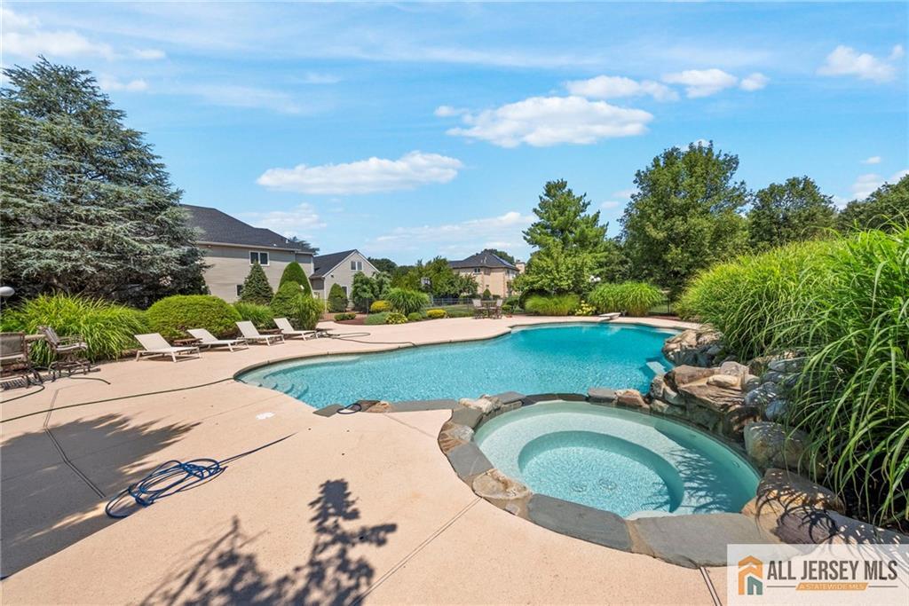 Bright and beautifully maintained home in the sought-after Drinking Brook Section of South Brunswick! This sunny and spacious 5-bedroom home has all the features that you could want. The open layout has space for everyone, including a formal living, formal dining rooms, an over-sized family room, a large kitchen that is ideal for everyday living and entertaining. The first-floor bedroom with full bath is ideal for guests, extended family, live-in or a home office. Upstairs includes a generous primary suite and 3 additional well-sized bedrooms with 3 baths. Wonderful hardwood floors throughout most of the home. A mostly finished basement with the half-bath, allows all the extra space that you would need for lounging, home theater and more. Did we mention the wine cellar? Step out into your private yard and relax on the perfect patio or enjoy the gleaming inground-pool with spa. Conveniently located near major highways, shopping, entertainment, with top-rated schools. This home offers space, comfort, and a prime location.