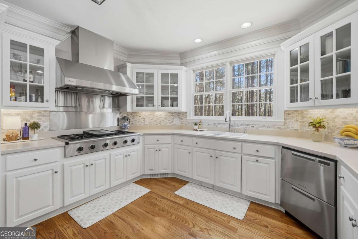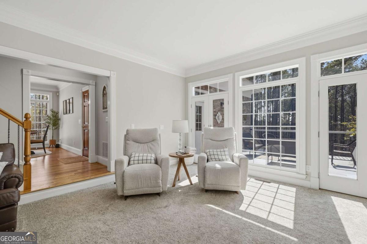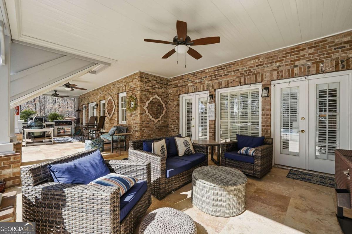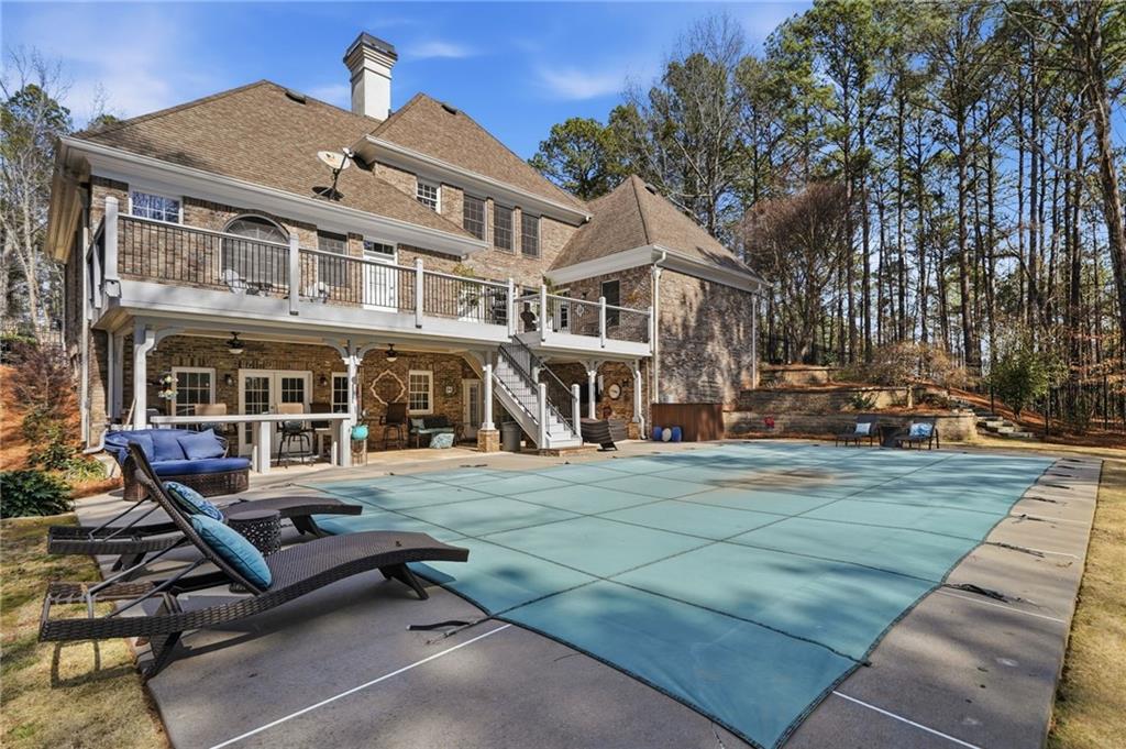 Luxury Living & Resort-Style Entertaining on Your Own Private 4-Acre Estate Welcome to an extraordinary European-inspired estate where elegant design meets the ultimate lifestyle for hosting family and friends. Perfectly situated on four private acres, this stunning property feels like your own secluded resort, surrounded by lush landscaping and thoughtfully designed outdoor living spaces. This property offers easy access to 575 /peach pass toll lane , Downtown Woodstock, and Canton Marketplace, with nearby shopping, dining, parks (Blankets Creek Bike Trail) and top Cherokee County schools-allowing you to enjoy both the privacy of estate living and the convenience of city amenities just minutes away. The backyard is truly an entertainers dream-featuring a sparkling pool and expansive covered travertine patio that invite unforgettable evenings, summer gatherings, and relaxed weekends spent outdoors. Inside, the home immediately impresses with a dramatic two-story foyer highlighted by a striking barreled coffered ceiling and extensive custom trim work throughout. The open and flowing floor plan is designed for both comfortable everyday living and elegant entertaining. Just off the entry, a fireside office/library with custom built-ins provides a refined space for work or quiet retreat, while the light-filled formal dining room sets the stage for memorable dinners and celebrations. At the heart of the home, the fireside great room seamlessly connects to a wet bar and opens directly to the expansive deck-creating the perfect flow for hosting. The chefs kitchen is equally impressive, featuring premium appliances, custom cabinetry, and generous prep space for everything from intimate family meals to large gatherings. The private owners suite on the main level offers a luxurious retreat, complete with direct access to the office/library and a spa-inspired bath featuring a jetted soaking tub, oversized shower, and serene finishes designed for relaxation. Upstairs, guests and family enjoy exceptional comfort with two spacious suites connected by a Jack-and-Jill bath, along with a large additional bedroom with a private en-suite-ideal as a second owners suite or teen retreat. The fully finished terrace level expands the homes entertaining possibilities even further. Designed as the ultimate gathering space, it features a fireside great room, media room, craft or game room, home gym/wellness area, and an additional guest suite with full bath-perfect for extended stays. From elegant interior spaces to the resort-style outdoor setting, this exceptional estate offers a lifestyle centered around comfort, connection, and unforgettable moments. Impeccably cared for and truly one of a kind. Only 2 owners.