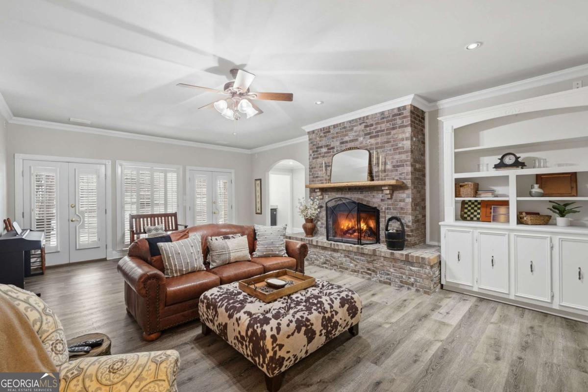 Luxury Living & Resort-Style Entertaining on Your Own Private 4-Acre EstateWelcome to an extraordinary European-inspired estate where elegant design meets the ultimate lifestyle for hosting family and friends. Perfectly situated on four private acres, this stunning property feels like your own secluded resort, surrounded by lush landscaping and thoughtfully designed outdoor living spaces.This property offers easy access to 575 /peach pass toll lane , Downtown Woodstock, and Canton Marketplace, with nearby shopping, dining, parks (Blankets Creek Bike Trail) and top Cherokee County schoolsallowing you to enjoy both the privacy of estate living and the convenience of city amenities just minutes away.The backyard is truly an entertainers dreamfeaturing a sparkling pool and expansive covered travertine patio that invite unforgettable evenings, summer gatherings, and relaxed weekends spent outdoors.Inside, the home immediately impresses with a dramatic two-story foyer highlighted by a striking barreled coffered ceiling and extensive custom trim work throughout. The open and flowing floor plan is designed for both comfortable everyday living and elegant entertaining.Just off the entry, a fireside office/library with custom built-ins provides a refined space for work or quiet retreat, while the light-filled formal dining room sets the stage for memorable dinners and celebrations.At the heart of the home, the fireside great room seamlessly connects to a wet bar and opens directly to the expansive deckcreating the perfect flow for hosting. The chefs kitchen is equally impressive, featuring premium appliances, custom cabinetry, and generous prep space for everything from intimate family meals to large gatherings.The private owners suite on the main level offers a luxurious retreat, complete with direct access to the office/library and a spa-inspired bath featuring a jetted soaking tub, oversized shower, and serene finishes designed for relaxation.Upstairs, guests and family enjoy exceptional comfort with two spacious suites connected by a Jack-and-Jill bath, along with a large additional bedroom with a private en-suiteideal as a second owners suite or teen retreat.The fully finished terrace level expands the homes entertaining possibilities even further. Designed as the ultimate gathering space, it features a fireside great room, media room, craft or game room, home gym/wellness area, and an additional guest suite with full bathperfect for extended stays.From elegant interior spaces to the resort-style outdoor setting, this exceptional estate offers a lifestyle centered around comfort, connection, and unforgettable moments.Impeccably cared for and truly one of a kind. Only 2 owners.