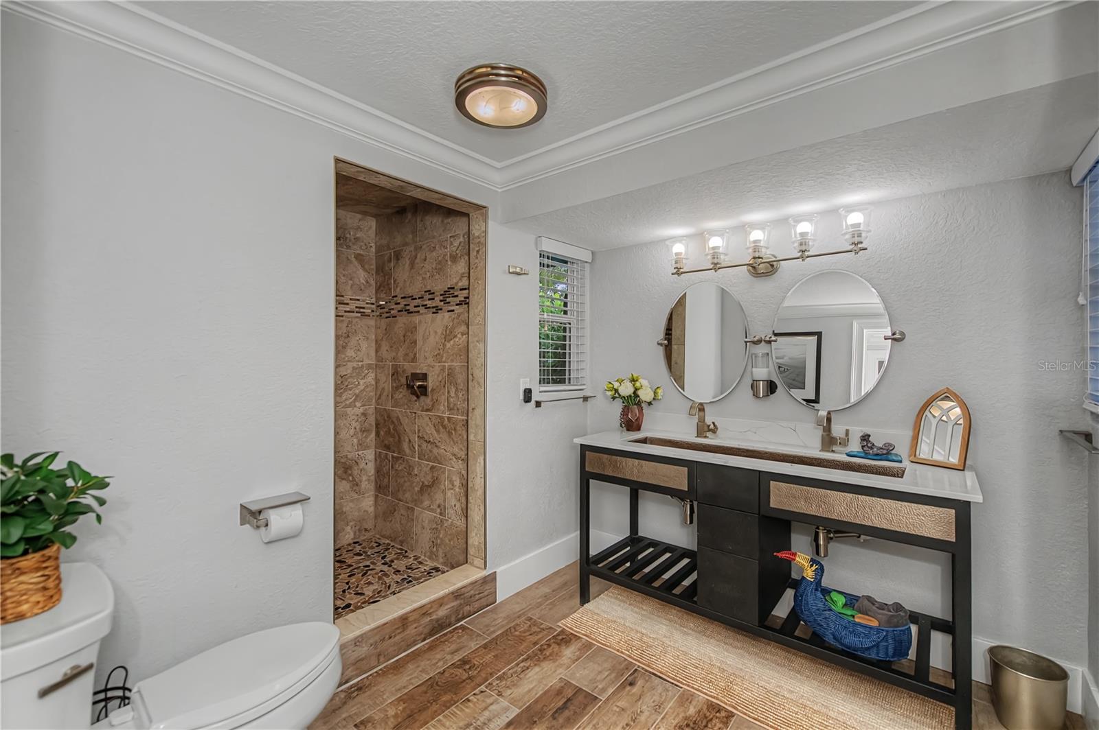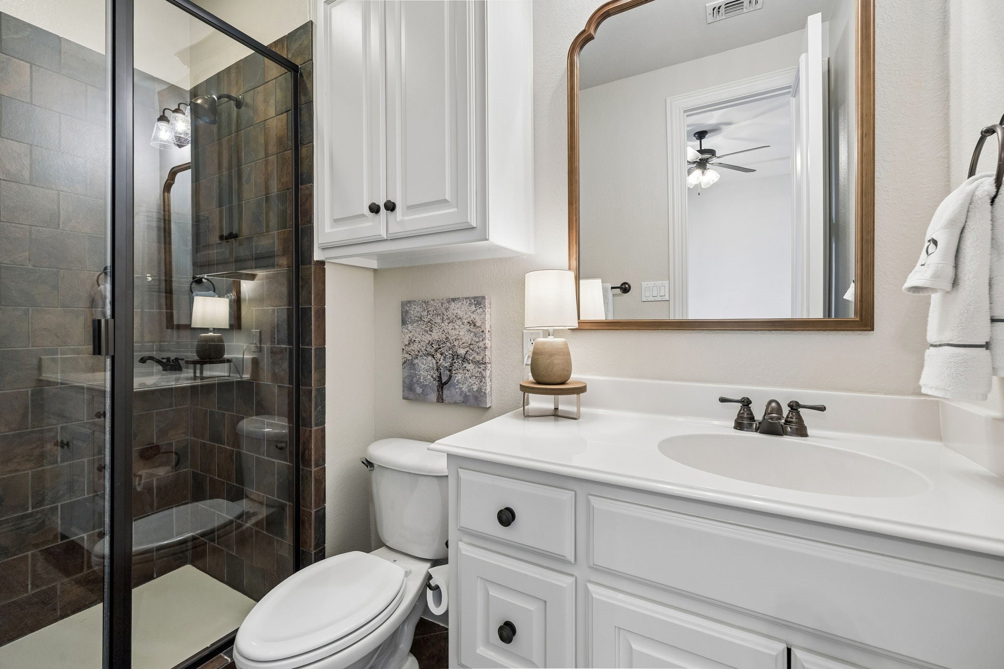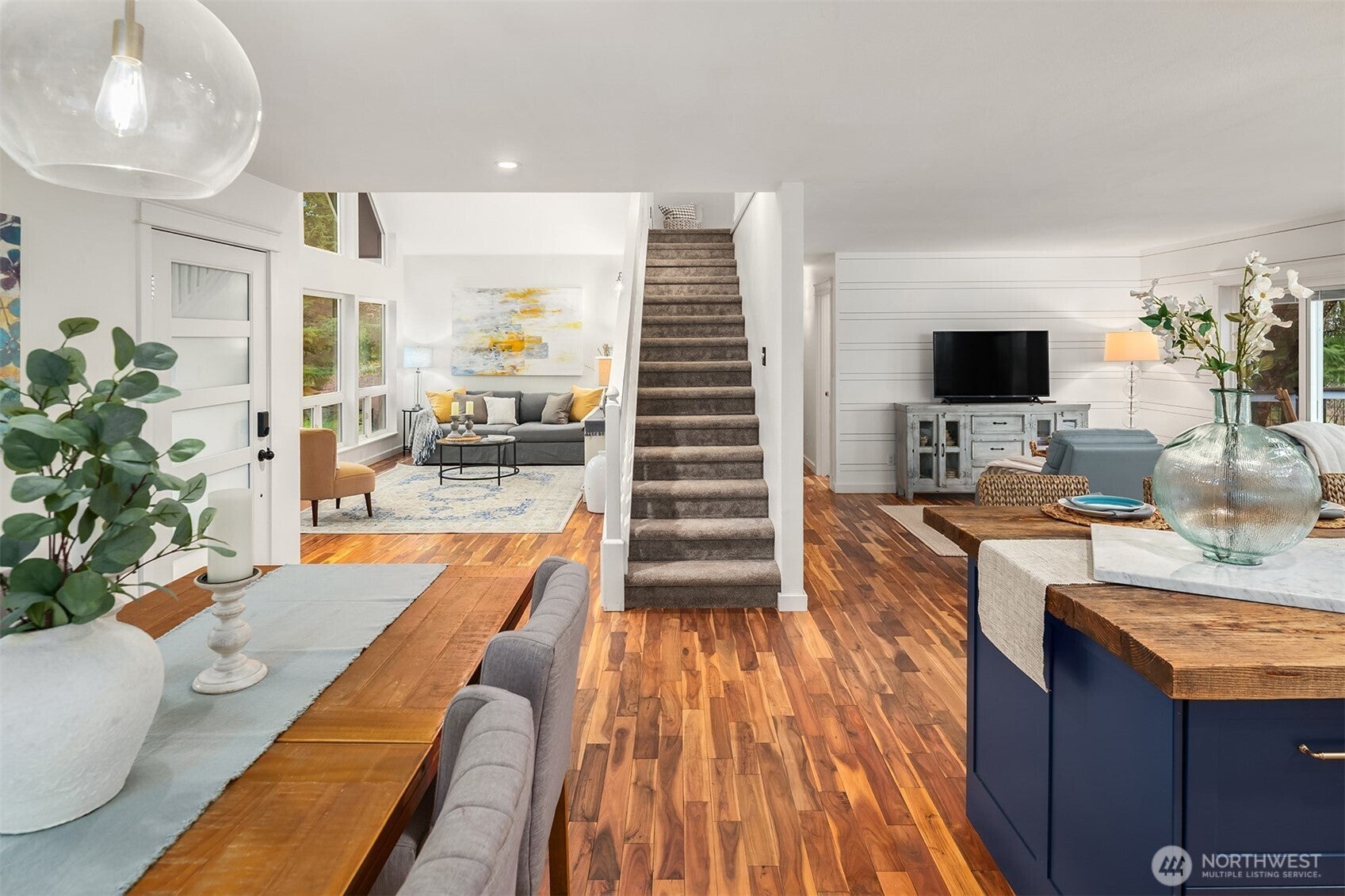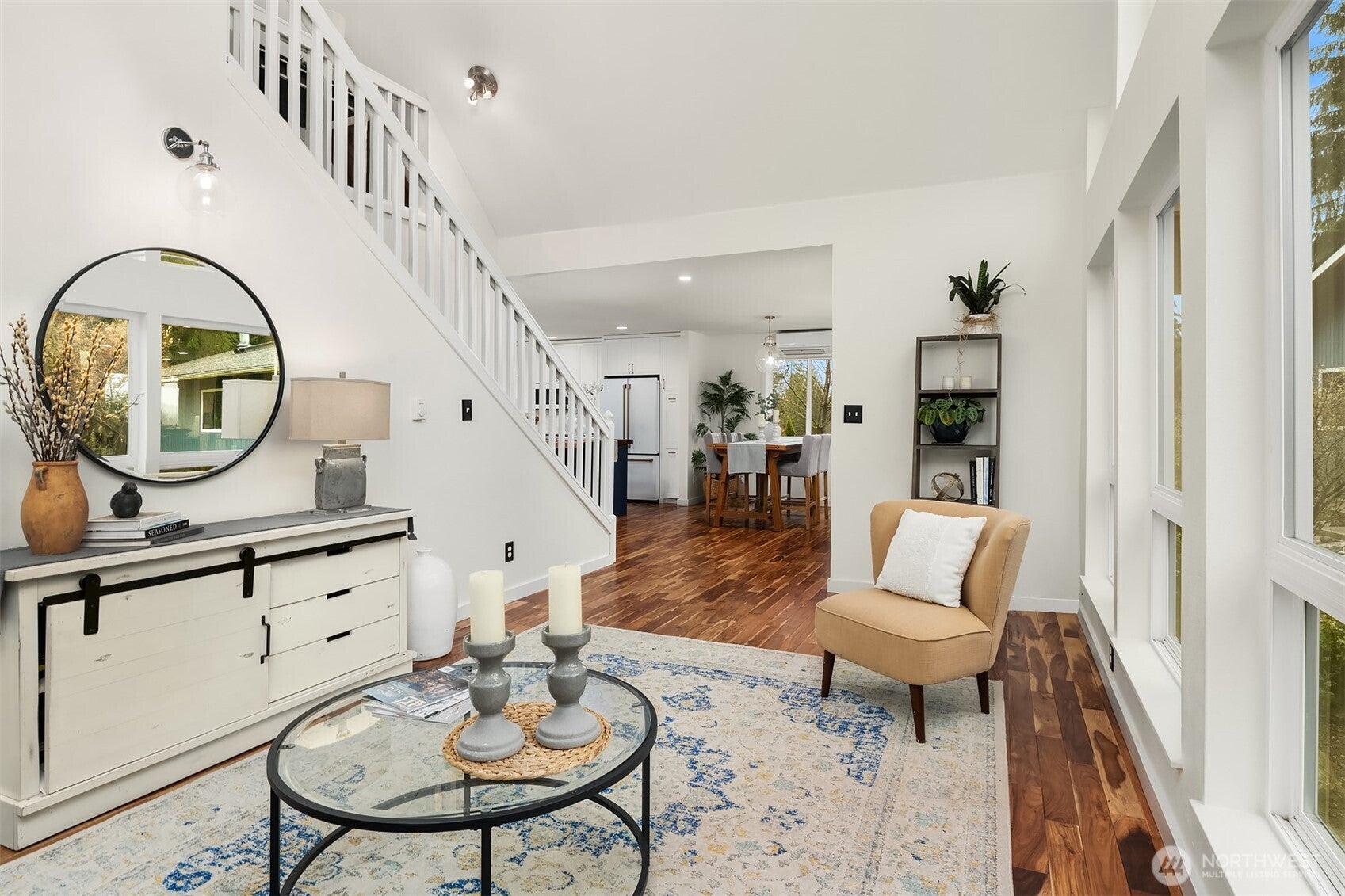 Timber Creek by Toll Brothers-better than new! Enjoy an invigorating lifestyle surrounded by 50 acres of preserved woodlands and scenic walking trail, along with resort-style amenities including a Jr. Olympic-size pool, clubhouse, BBQ terrace, park, playground & basketball court. This east-facing home is impeccably maintained & showcases exceptional craftsmanship, thoughtful upgrades, & quality designer touches throughout. The oversized great room & dining area are anchored by a beautiful gas fireplace, creating a warm and inviting gathering space. A king-sized main floor bedroom with an upgraded bath offers ideal flexibility for guests or generational living. The chef-inspired kitchen features abundant storage, a gas range w/vent hood, convection ovens, and an expansive island designed for both entertaining & everyday living. Upstairs, youll find 4 spacious bedrooms, large bonus room & convenient laundry. The luxurious primary suite is a true retreat, complete with 2 walk-in closets and a spa-like bath, 2 vanities and a soaking tub. Additional highlights include hardwood floors, herringbone tile, tankless water heater, air conditioning, alarm system, sprinklers, upgraded Wi-F, EV wiring & garage storage. The easy-maintenance backyard offers a large sunny patio & colorful gardens, perfect for relaxing or entertaining. Located within top-rated Northshore schools with easy commuter access, this pre-inspected home also includes a one-year warranty for added peace of mind.