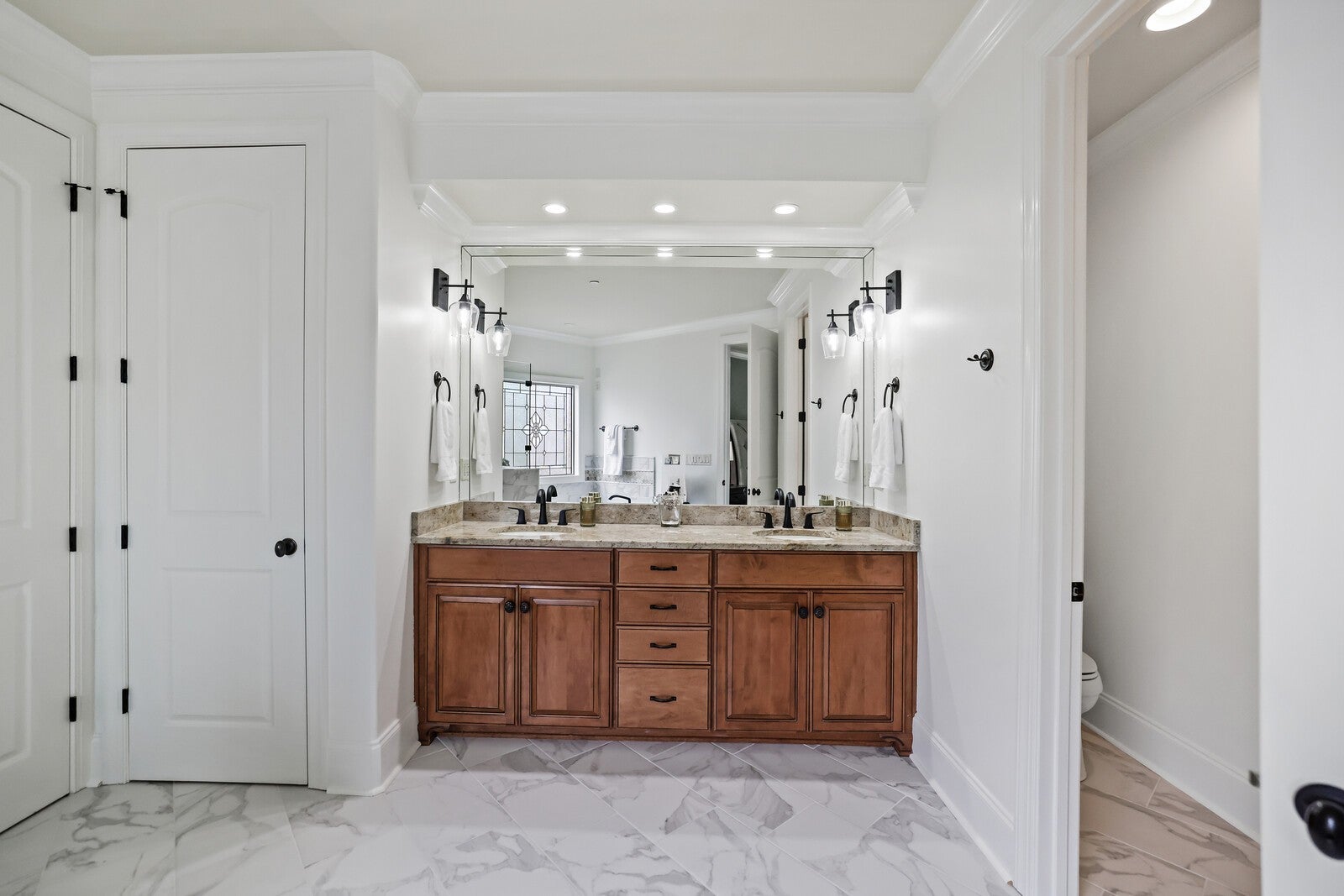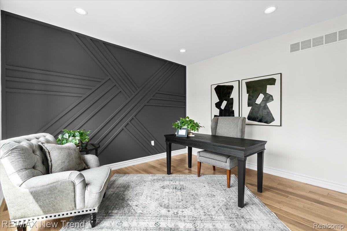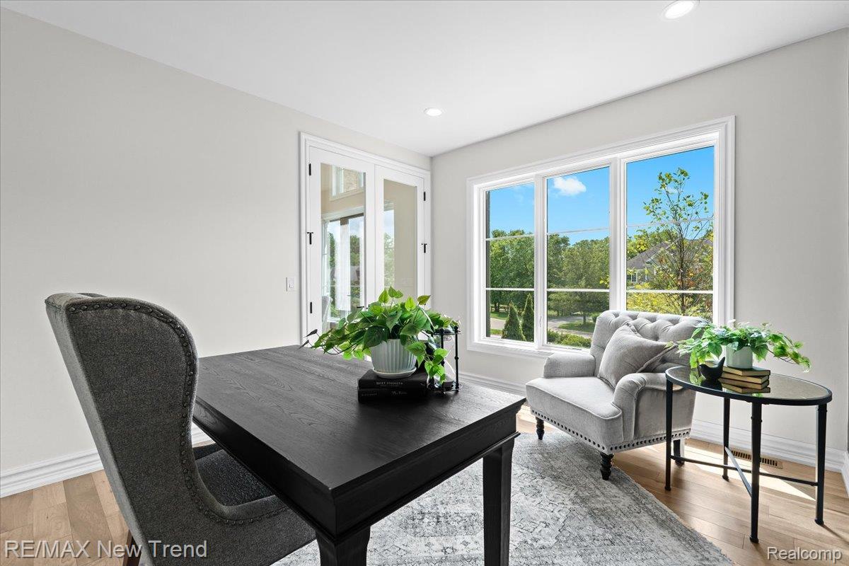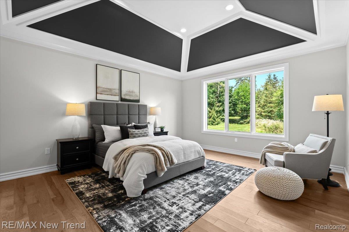 Step into luxury with this stunning brand new home in Farmington Hills, perfectly situated on a beautifully landscaped corner lot with a walkout basement and ready for immediate occupancy. This custom built residence features a three car side entry garage and impressive curb appeal with a striking brick, stone, and Hardy Plank exterior. Pella windows throughout the home bring in abundant natural light while offering quality, style, and energy efficiency. Inside, youll find soaring ceilings, including a dramatic two story ceiling in the family room, rich hardwood flooring throughout the first floor, and exquisite decorative woodwork and molding that add timeless elegance. A main floor office provides the perfect space for working from home and could also double as a second sitting room or entertainment area. Off of the garage, theres a spacious mudroom with a built-in bench, perfect for organizing coats, bags, and shoes. Nearby, the main floor laundry room features decorative tile flooring, cabinetry for storage, a countertop for folding, and a convenient sink. The family room is centered around a cozy gas fireplace, while the chefs kitchen dazzles with two-tone cabinetry, quartz countertops, a huge island, a super cute tile backsplash, stainless steel appliances, darling hardware on the cabinets, and a massive walk-in pantry. The main level primary suite offers a private retreat with a deluxe bath that includes dual sinks, a dedicated makeup area, a large tiled shower, and a generous walk-in closet. Upstairs, all additional bedrooms have access to a bathroom, offering both comfort and convenience. This luxury home comes complete with a one year builder warranty, providing peace of mind for its new owners.