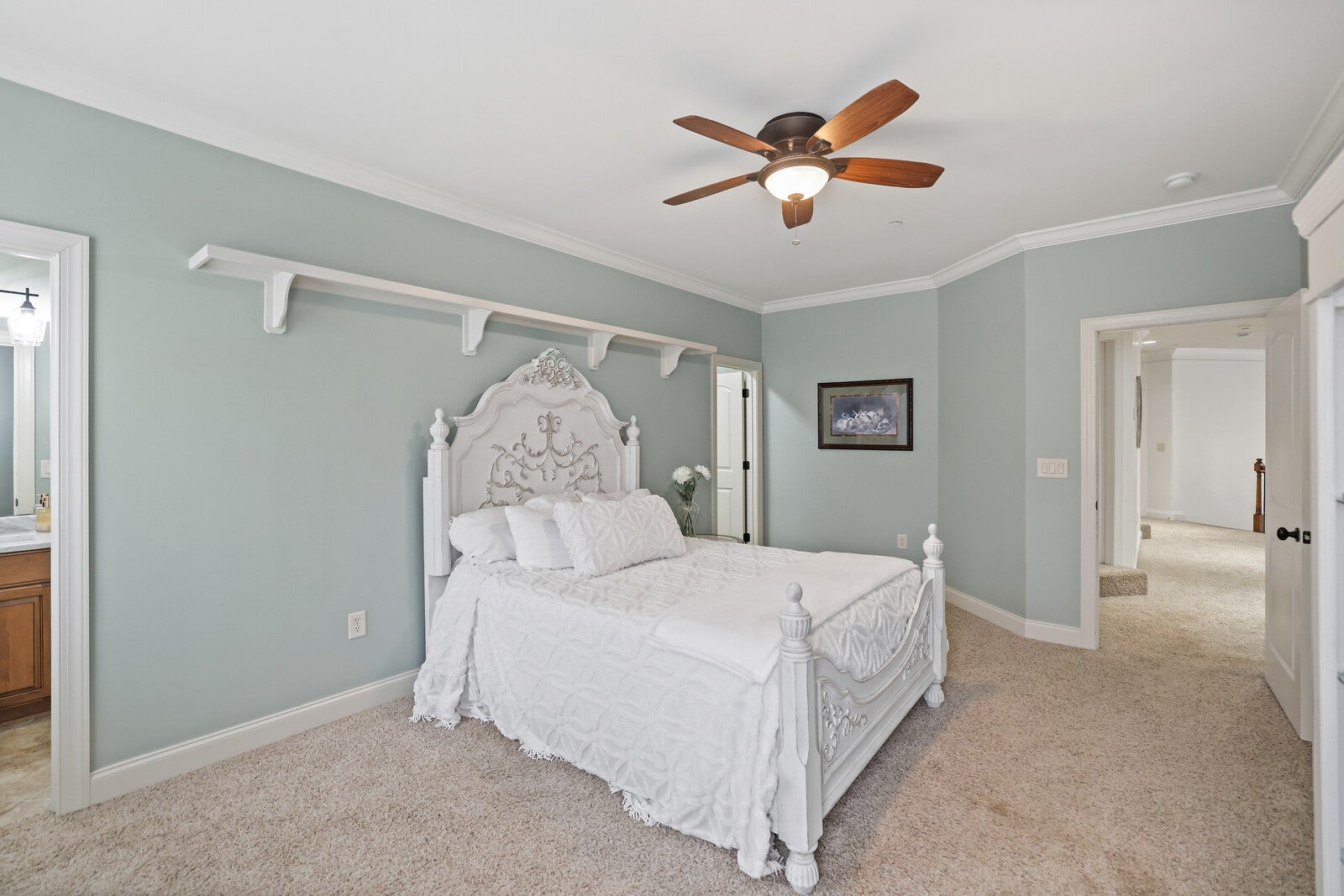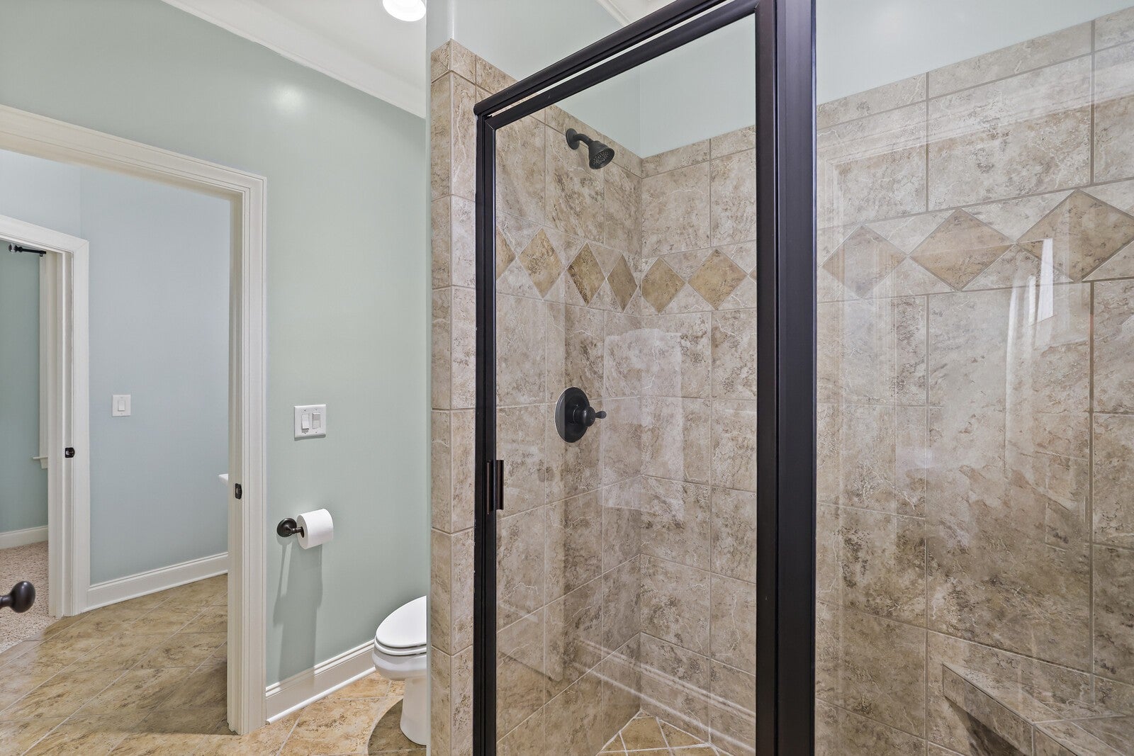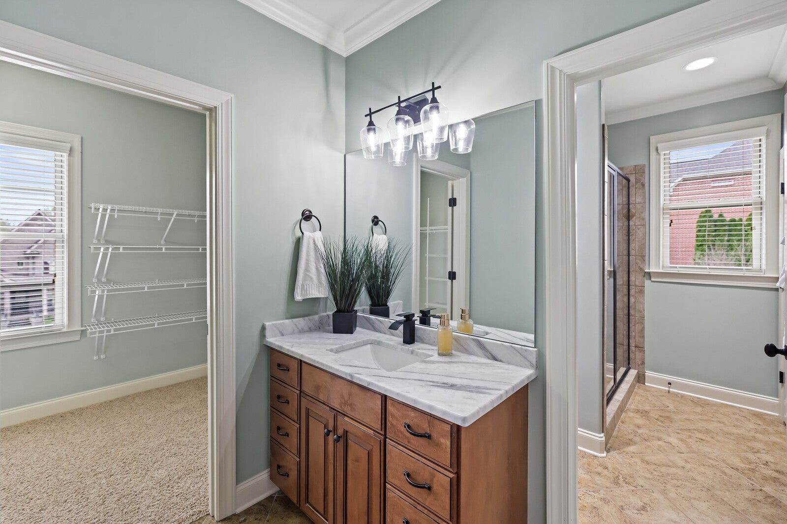 Nestled on a quiet cul-de-sac in desirable Bennington neighborhood of Nolensville, this all-brick home offers timeless design, exceptional space, 5,218 square feet of beautifully updated living. Custom built in 2008 by Grove Park Construction & meticulously maintained, the home sits on a private .49-acre lot bordered by greenspace beside & behind, creating rare privacy within neighborhood living. The exterior welcomes guests with a covered front porch, elegant accent lighting, & a three-car side-entry garage w/ loft storage. Outdoor living is ideal for relaxing or entertaining w/ a covered patio featuring a ceiling fan & lighting, an oversized aggregate patio, & a fully fenced backyard with irrigation & gas hookup for a grill. Inside, a dramatic two-story foyer with a curved staircase & iron spindles creates a stunning first impression. The main level features refinished and/or new hardwood floors, fresh paint, extensive molding, a formal dining room, & a private office w/ French doors. The family room includes a gas fireplace & opens to the covered patio. The gourmet kitchen offers new natural stone countertops, custom cabinetry, stainless appliances, double ovens, cooktop, walk-in pantry, & updated lighting. The adjacent keeping room features a 2 story ceiling, stacked stone fireplace, built-ins, & patio access. The main-level primary suite provides a peaceful retreat w/ tray ceiling, new carpet, & a spa-style bath w/ double vanities, jetted tub, tiled shower , & a large walk-in closet. Upstairs are 3 bedrooms, including one w/ a private bath & two sharing a Jack & Jill bath, plus an oversized bonus room, reading nook, & dedicated home theater w/ projector, screen, & surround sound. A finished basement offers flexible space for storage, fitness, or a storm shelter. Bennington residents enjoy a pool, sidewalks, & access to top-rated Williamson County schools, just minutes from Nolensville dining, shopping, and community events.
