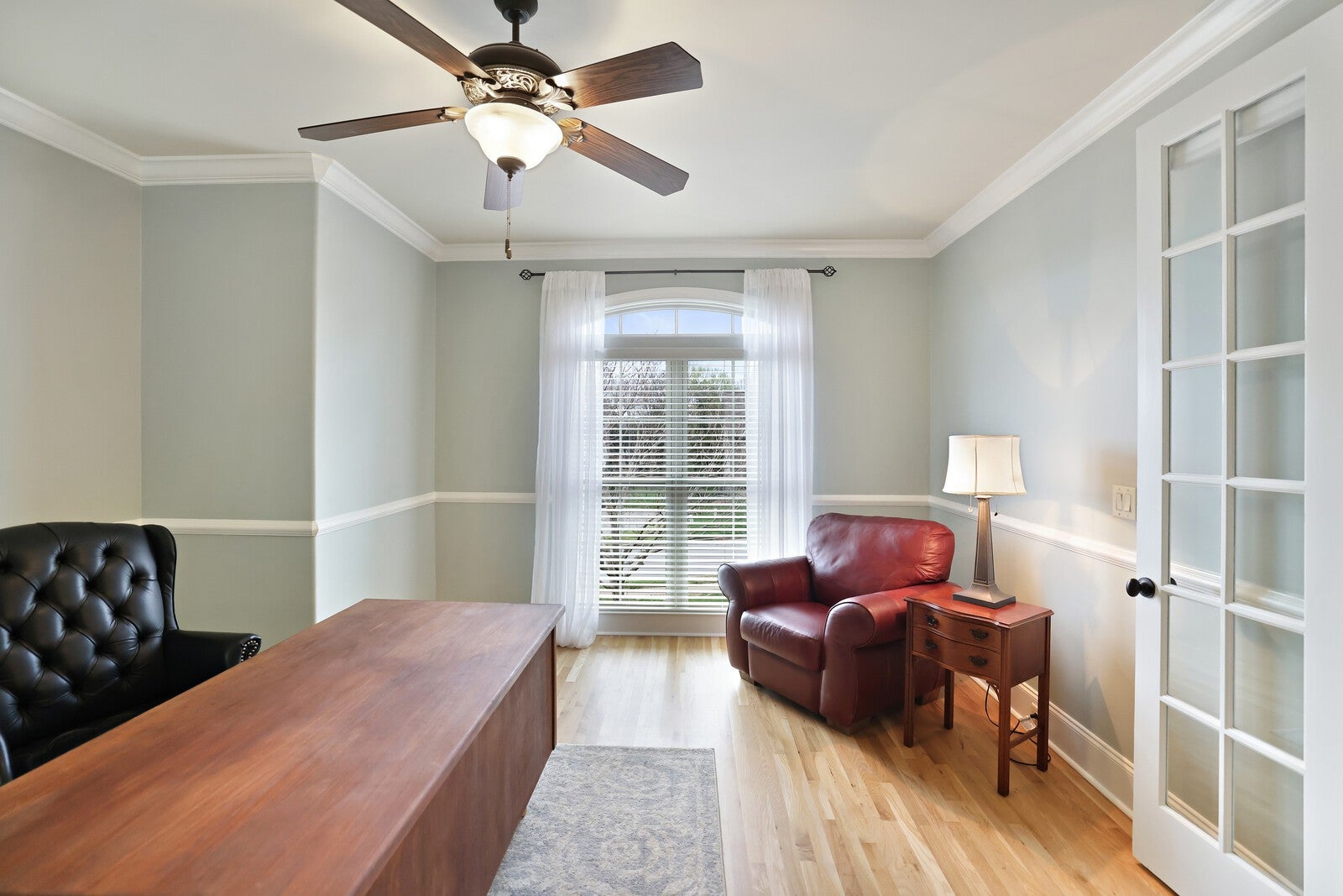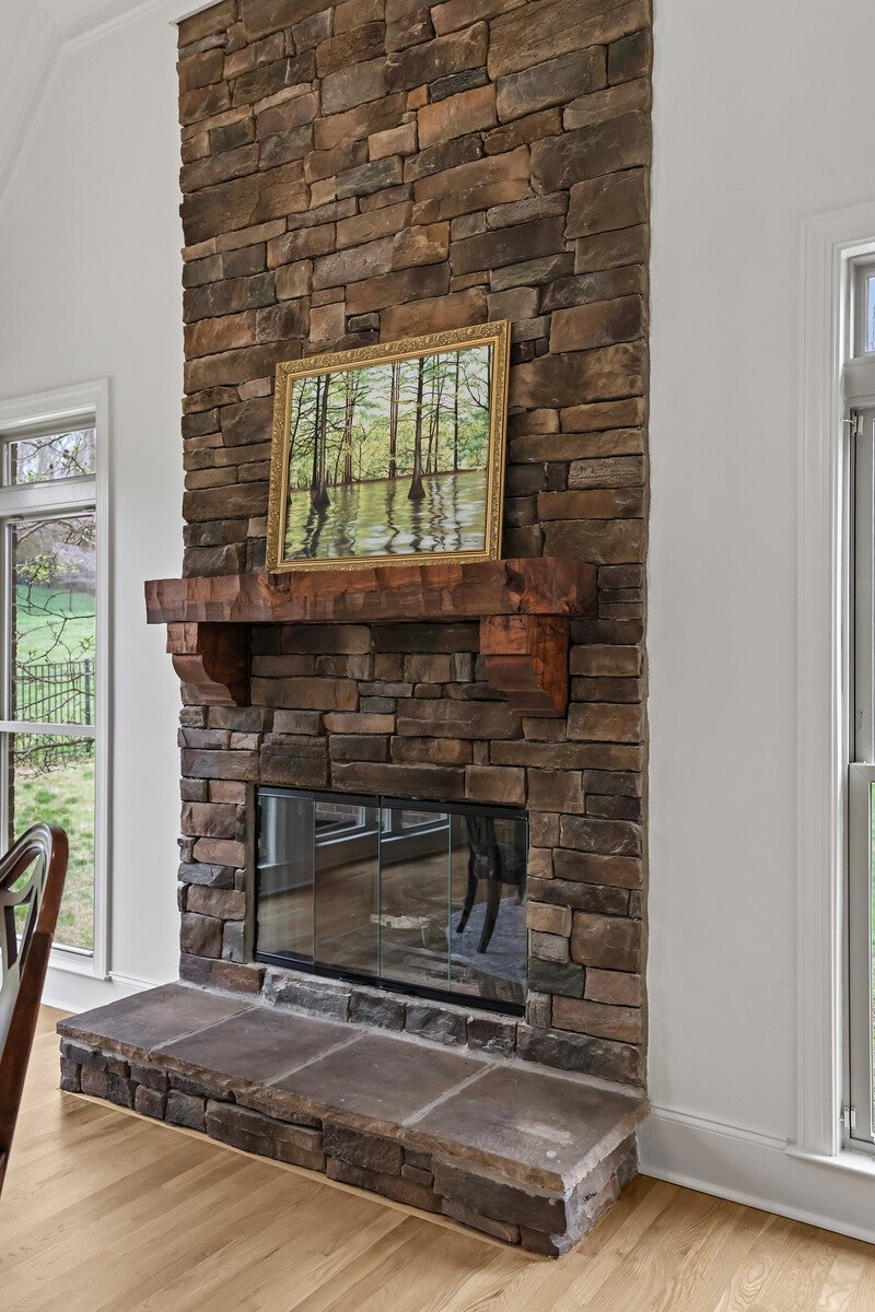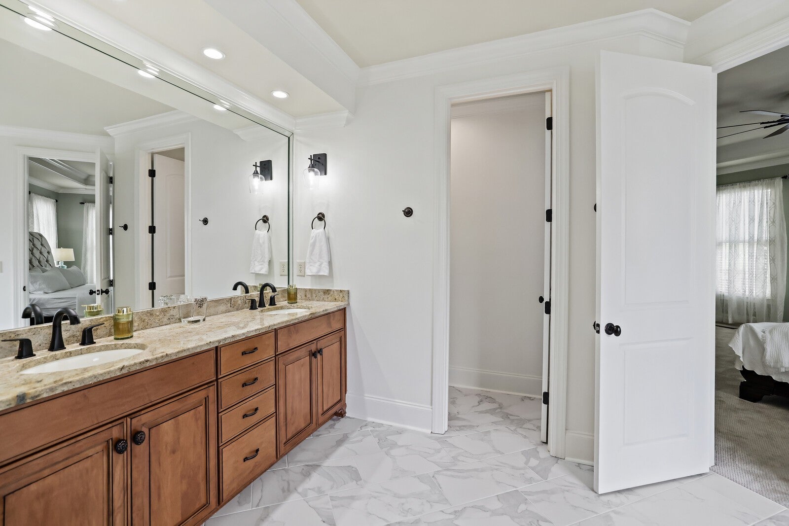 Nestled on a quiet cul-de-sac in desirable Bennington neighborhood of Nolensville, this all-brick home offers timeless design, exceptional space, 5,218 square feet of beautifully updated living. Custom built in 2008 by Grove Park Construction & meticulously maintained, the home sits on a private .49-acre lot bordered by greenspace beside & behind, creating rare privacy within neighborhood living. The exterior welcomes guests with a covered front porch, elegant accent lighting, & a three-car side-entry garage w/ loft storage. Outdoor living is ideal for relaxing or entertaining w/ a covered patio featuring a ceiling fan & lighting, an oversized aggregate patio, & a fully fenced backyard with irrigation & gas hookup for a grill. Inside, a dramatic two-story foyer with a curved staircase & iron spindles creates a stunning first impression. The main level features refinished and/or new hardwood floors, fresh paint, extensive molding, a formal dining room, & a private office w/ French doors. The family room includes a gas fireplace & opens to the covered patio. The gourmet kitchen offers new natural stone countertops, custom cabinetry, stainless appliances, double ovens, cooktop, walk-in pantry, & updated lighting. The adjacent keeping room features a 2 story ceiling, stacked stone fireplace, built-ins, & patio access. The main-level primary suite provides a peaceful retreat w/ tray ceiling, new carpet, & a spa-style bath w/ double vanities, jetted tub, tiled shower , & a large walk-in closet. Upstairs are 3 bedrooms, including one w/ a private bath & two sharing a Jack & Jill bath, plus an oversized bonus room, reading nook, & dedicated home theater w/ projector, screen, & surround sound. A finished basement offers flexible space for storage, fitness, or a storm shelter. Bennington residents enjoy a pool, sidewalks, & access to top-rated Williamson County schools, just minutes from Nolensville dining, shopping, and community events.