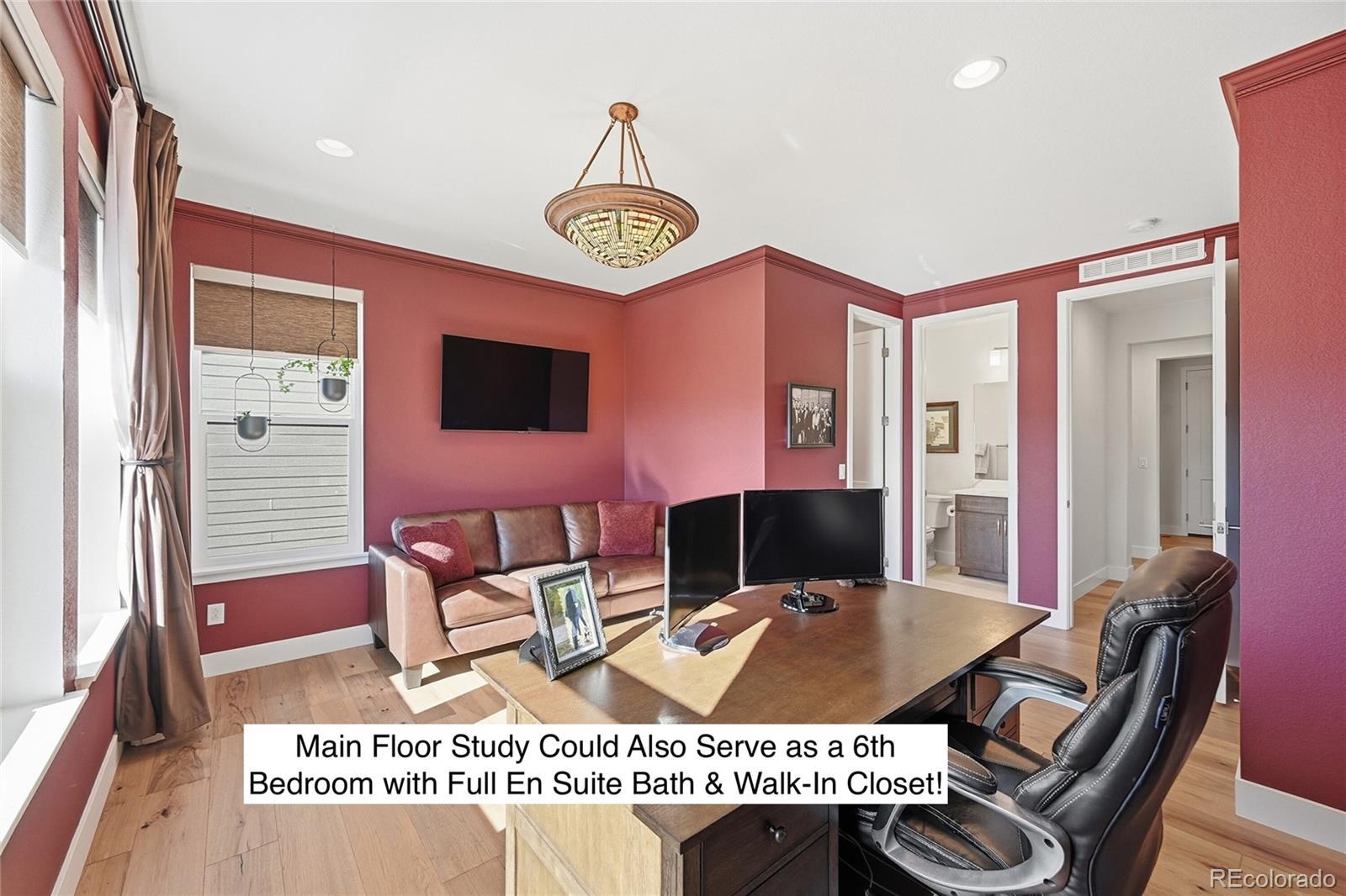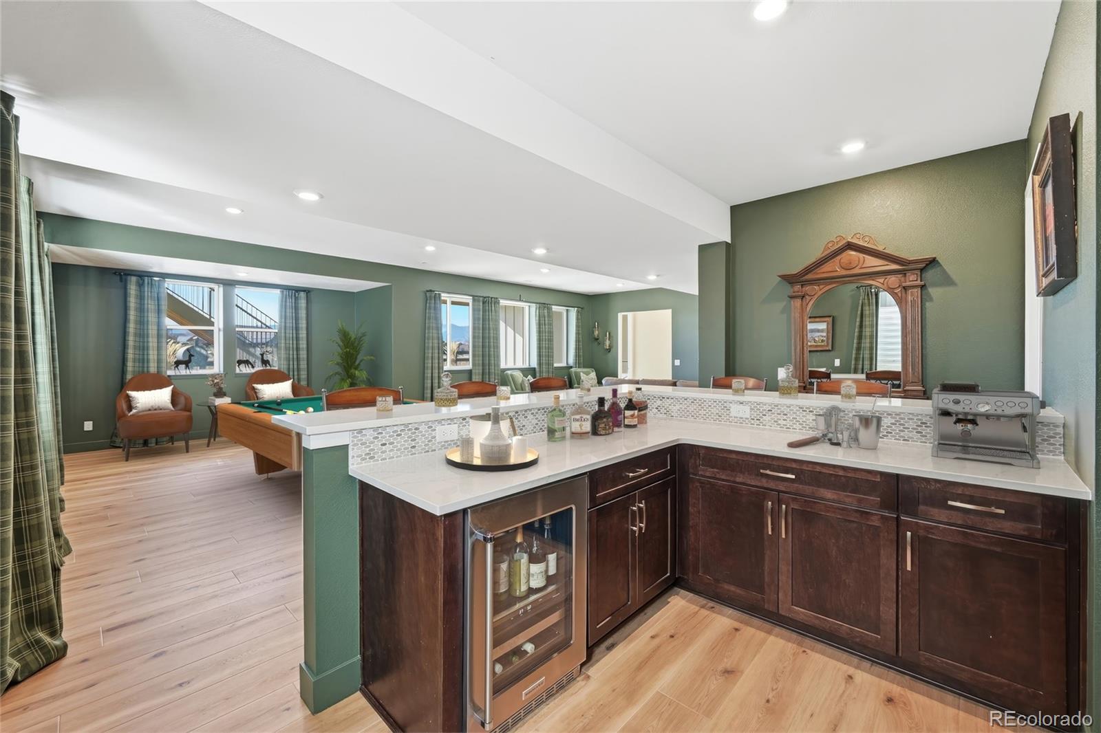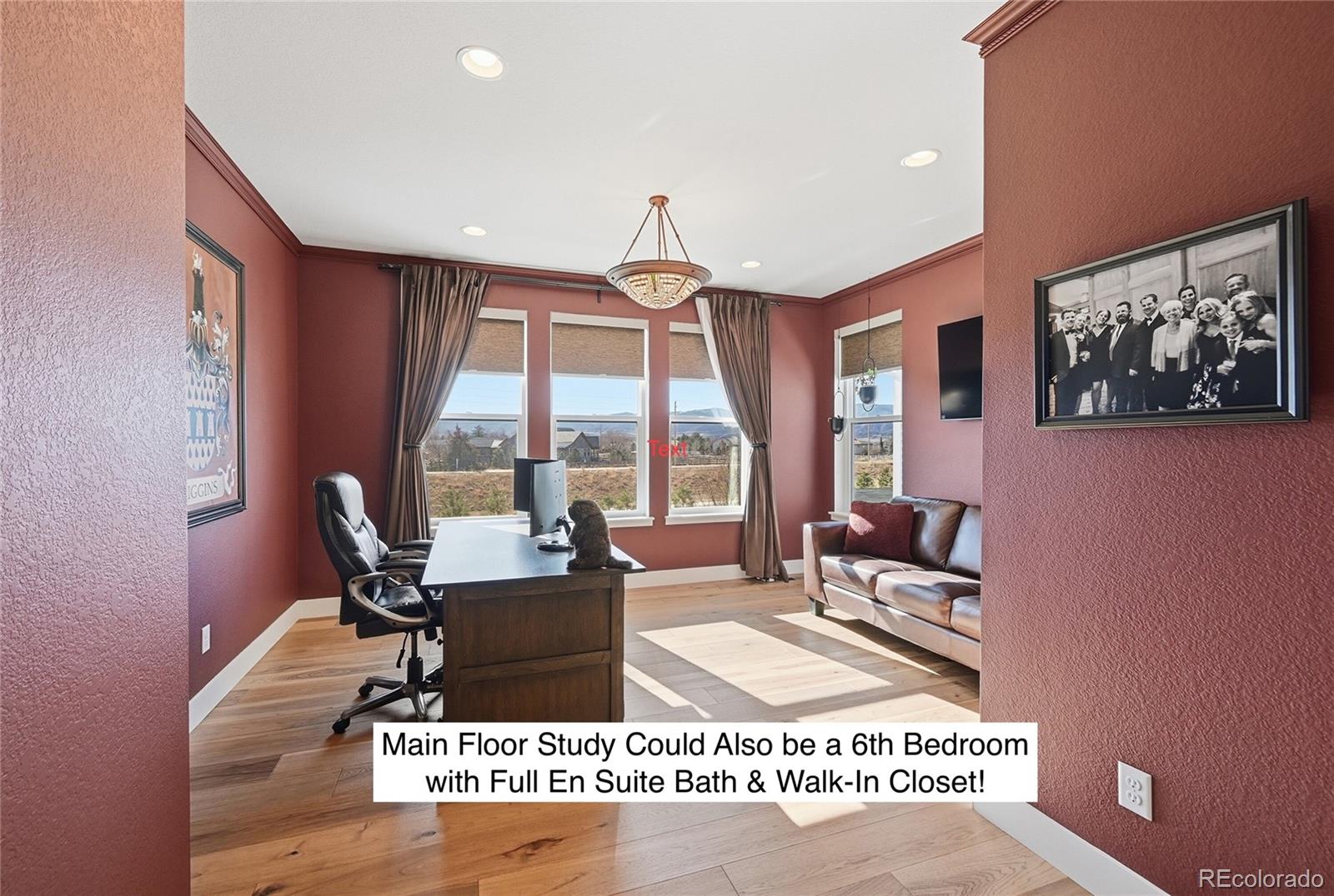 New price so you really dont want to miss this truly exceptional home situated in arguably one of the best locations within the community (builder charged a 100K lot premium)! Awe inspiring SW views out of all important areas (no roads or power lines here!) so be sure to view all the pics! The main level welcomes you with an open and functional layout, highlighted by quality finishes and abundant natural light. The Main for study makes a great 6th bdrm with en suite full bath & walk-in closet. Beautifully upgraded 5,884 square foot home offers a thoughtful blend of space, comfort, and scenic surroundings. With over 260K in builder upgrades it was designed for both everyday living and entertaining. Featuring five generously sized bedrooms (all with en suite baths) and six and a half bathrooms, providing ample privacy and convenience for family and guests alike. The living and dining areas flow seamlessly into the ample kitchen, creating a central gathering place. Upstairs, the bedrooms are well-appointed, each with an ensuite bathroom & walk-in closet ensuring comfort and ease for all occupants. The primary suite serves as a relaxing retreat with spacious proportions and a spacious well-designed bath. The fully finished basement expands the living space significantly and is perfect for entertaining or unwinding. It features a fully equipped wet bar and plenty of room for a media area, game space, or fitness setup, making it a versatile extension of the home. One of the standout features of this property is the impressive mountain views, which can be enjoyed from multiple vantage points adding a sense of openness and connection to the outdoors. Whether enjoying a quiet morning on the huge, covered deck or hosting guests, the views provide a constant, scenic backdrop. With its generous square footage, extensive upgrades, and functional layout, this home offers a well-rounded living experience that feels both comfortable & refined.