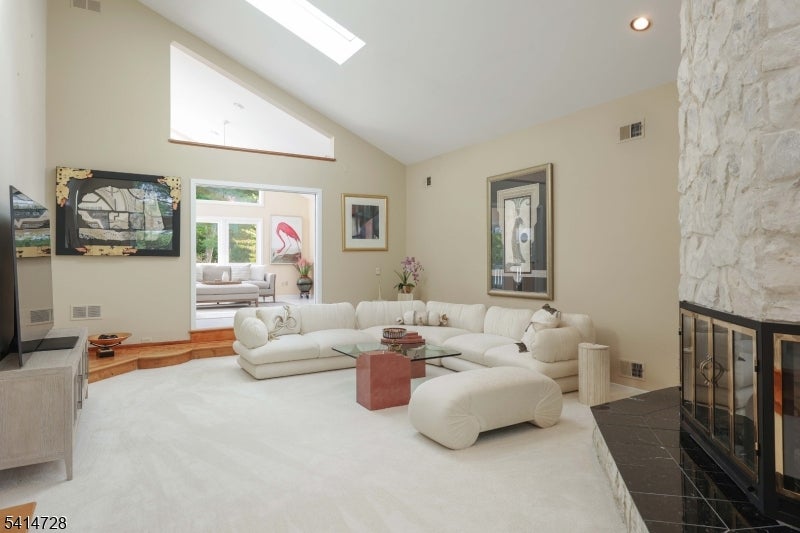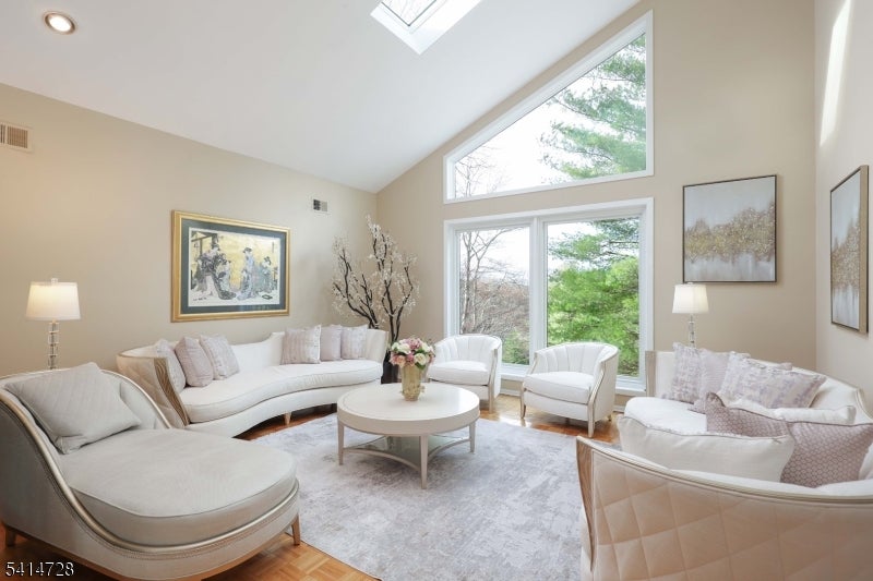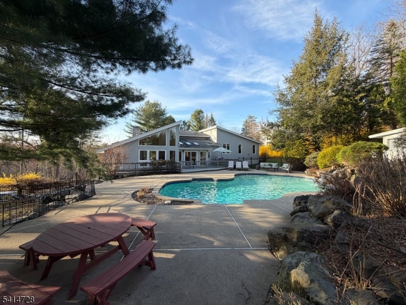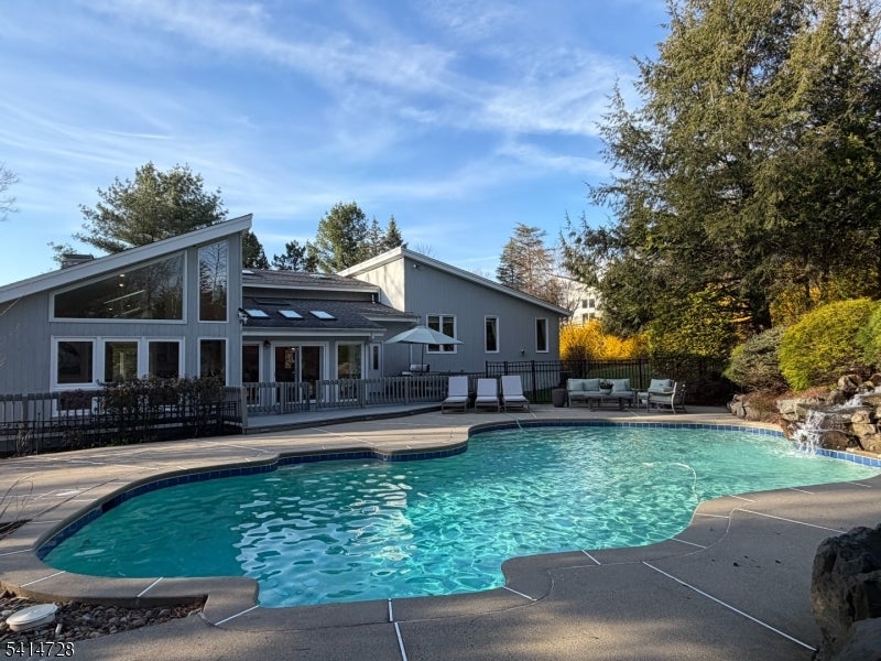 This extraordinary custom home offers the pinnacle of luxury living on a private beautifully landscaped 0.92 acre lot in one of the most sought-after neighborhood of Denville, with easy commute to Manhattan. Spanning approx 5,000 sq ft across two expansive levels. This state-of-the-art residence showcases exceptional craftsmanship, architecture, and design. Formal living and great rooms feature soaring 19 foot ceilings, walls of windows, skylights, and a dramatic double-sided stone fireplace. Formal dining room. Gourmet kitchen with premium custom cabinetry, granite, & two tier island. A sun drenched breakfast area and conservatory open to the deck the resort-style backyard and huge concrete patio. Primary suite w/ balcony, fireplace, spa-like bath w. whirlpool tub & dressing area on first level. Three other generously sized bedrooms two full baths and powder room. The lower level offers an en-suite/ with full bath office/guest room. A recreation area, play area, open exercise room, and two large rooms, two other large unfinished rooms with endless possibilities. Closets galore. Enjoy a large deck, Gunite pool, w/ an impressive waterfall. Cabana with mini bar/kitchenette & dressing area, a secluded hot tub complete the breathtaking country club style outdoor oasis. Fully fenced & lighted backyard. 3 car garage, security system. Hanging gardens and perennials that bloom year after year. A one of a kind upgraded residence in pristine condition ready for immediate occupancy.