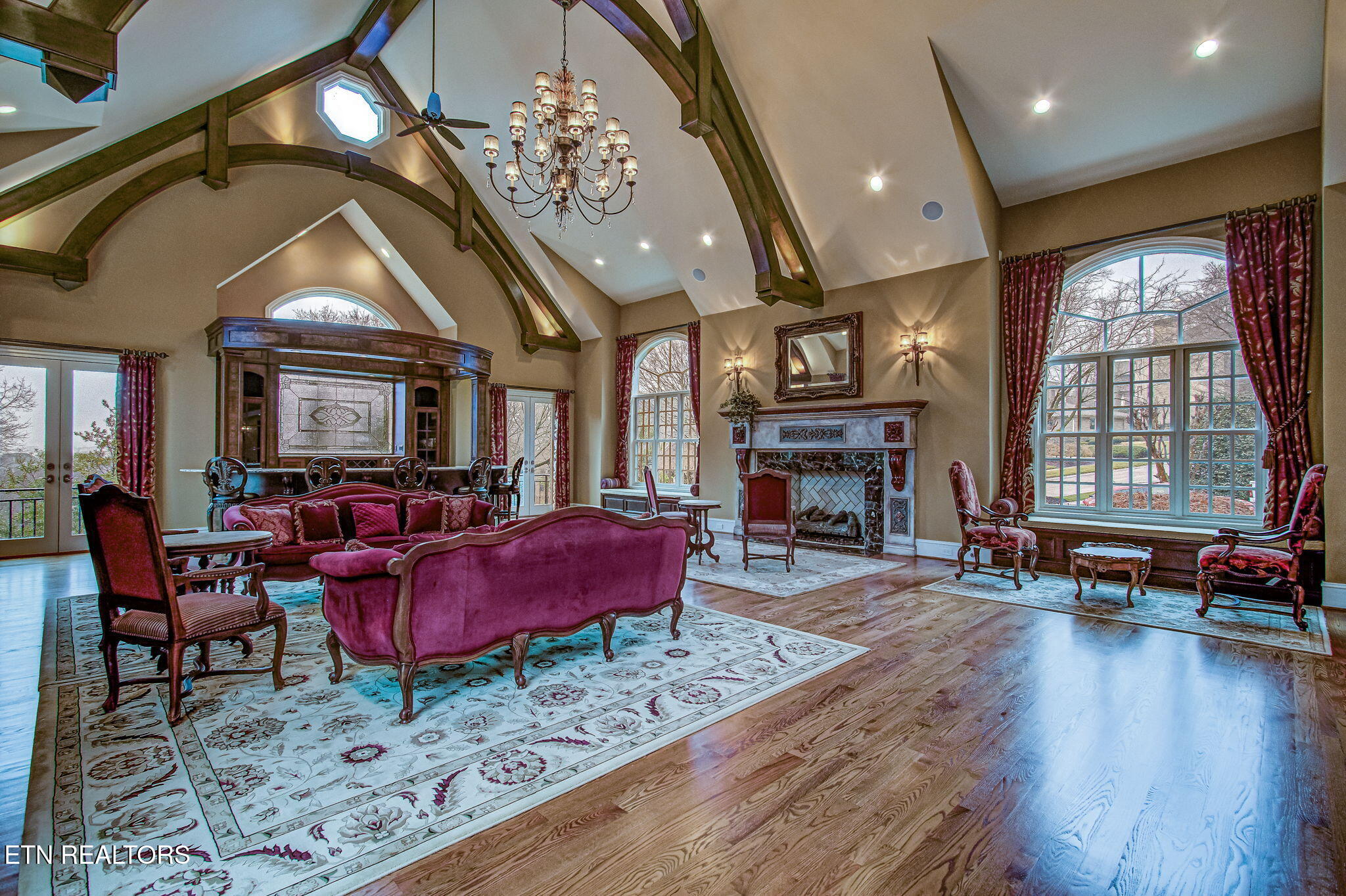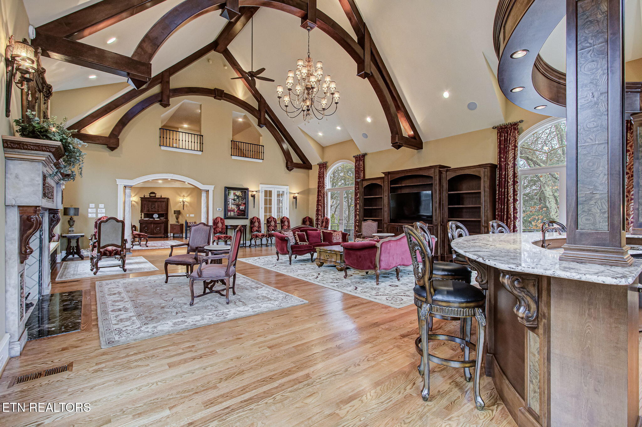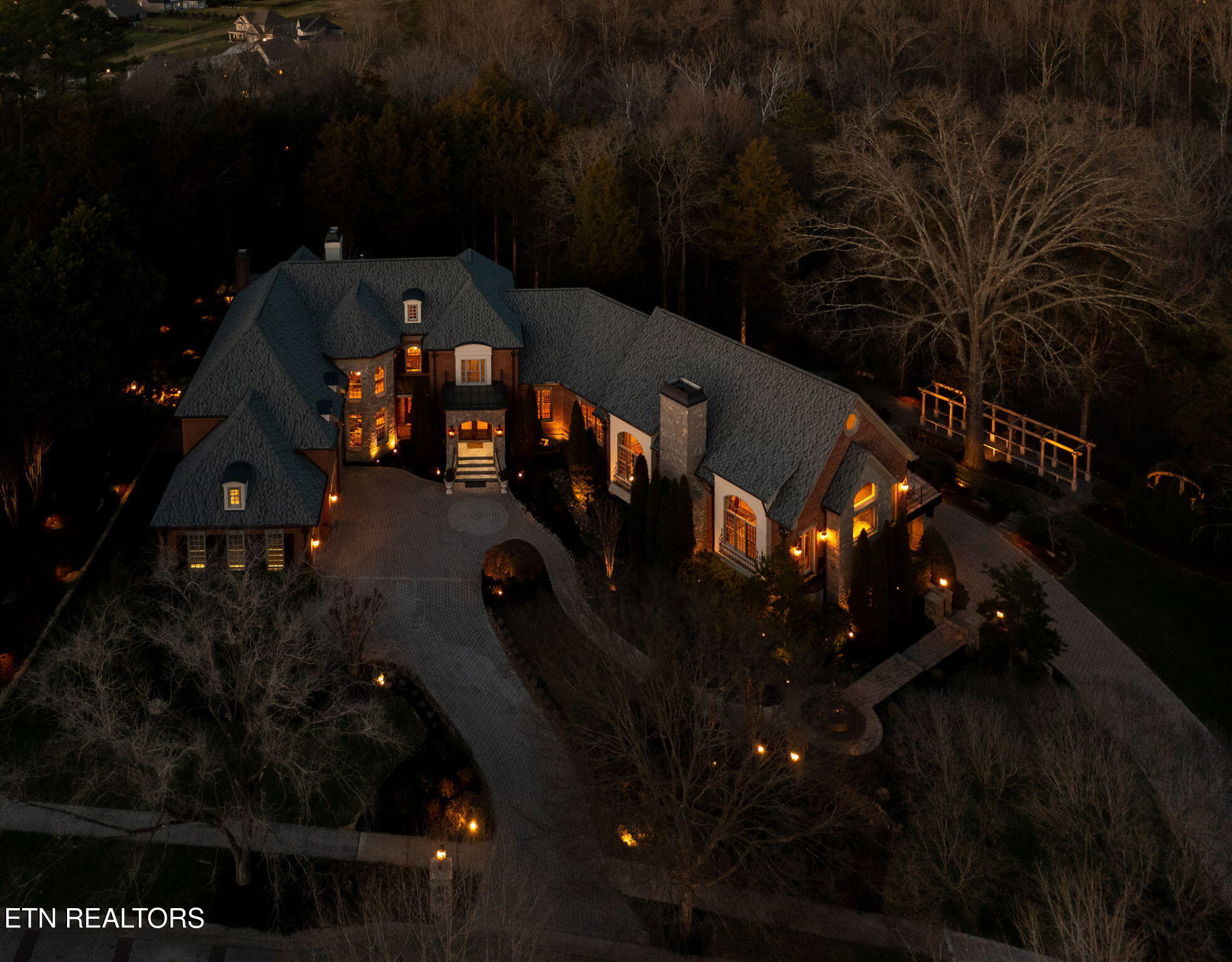 Stone Vista The Pinnacle of Farragut EstatesThe Height of Seclusion and Scale Poised majestically on a rare 1.2-acre double lot, this 11,000 square foot masterpiece is a rare blend of obvious quality and absolute privacy. Beyond the threshold, the home unfolds as a sanctuary of sophisticated comfort, where grand-scale entertaining meets the soul-warming intimacy of a private retreat.A Main Level of Unrivaled GrandeurThe heart of the home is a staggering 40x30 Great Room, a masterclass in design featuring soaring 25 timber-beamed ceilings, a massive marble fireplace, and a grand bar crafted for the connoisseur. The culinary wing--anchored by a Chefs kitchen and a cozy keeping room--serves as a rustic yet refined gathering space. Walls of glass create an effortless transition to an expansive outdoor patio and a screened porch, both with private fireplaces and views of the lush grounds and Sounds of Waterfalls with no neighbors in sight.Private Quarters & Masterful Retreats The Primary Sanctuary: The upper level is crowned by a palatial Primary Retreat, a world unto itself with a dedicated sitting sanctuary and a spa-inspired ensuite. Three additional oversized suites ensure luxurious privacy for family or guests. The Guest Wing: A thoughtfully positioned main-level suite provides a private haven for multi-generational living or distinguished visitors. The Terrace Level: A surprise and delight floor dedicated to leisure and the arts. This level features a rec-room, professional cinema-style theater, a custom wine room with its own hearth, a 6th bedroom, and specialized spaces including a craft room and a dedicated garden room.A Botanical & Automotive OasisThe exterior is a botanical triumph. Eschewing the feel of a traditional subdivision, the grounds are defined by a spectacular 150-foot cascading waterfall feeding three serene ponds. The estate is further elevated by: A classic ornate gazebo, custom marble arbor, and dual firepits for evening ambiance. The Collectors Garage: A 6-car capacity haven, featuring a finished, climate-controlled lower gallery with a private drive--the ultimate stage for an automotive collection.This is more than a residence; it is a no-compromise lifestyle defined by exclusivity and unrivaled luxury at every turn.