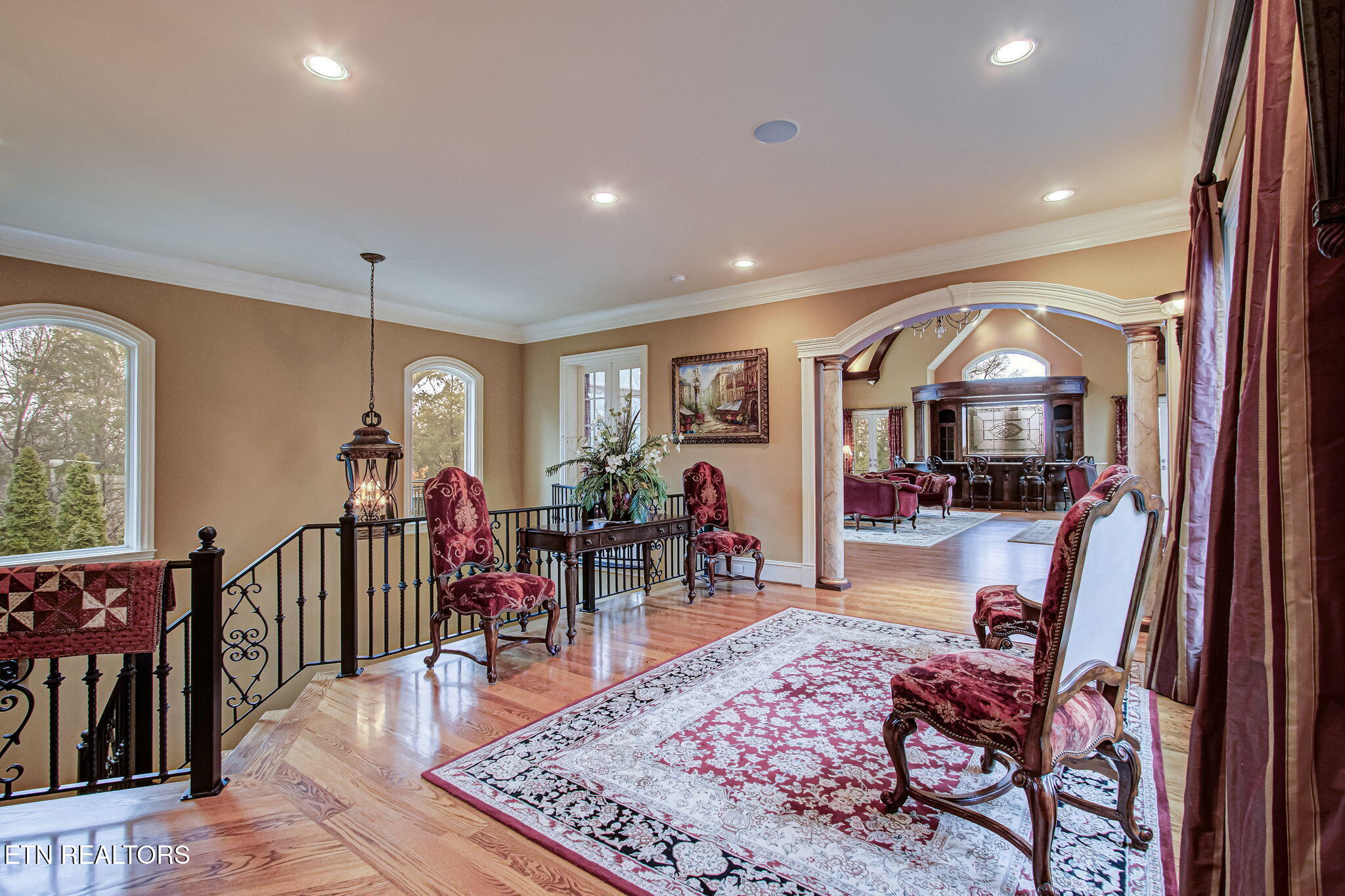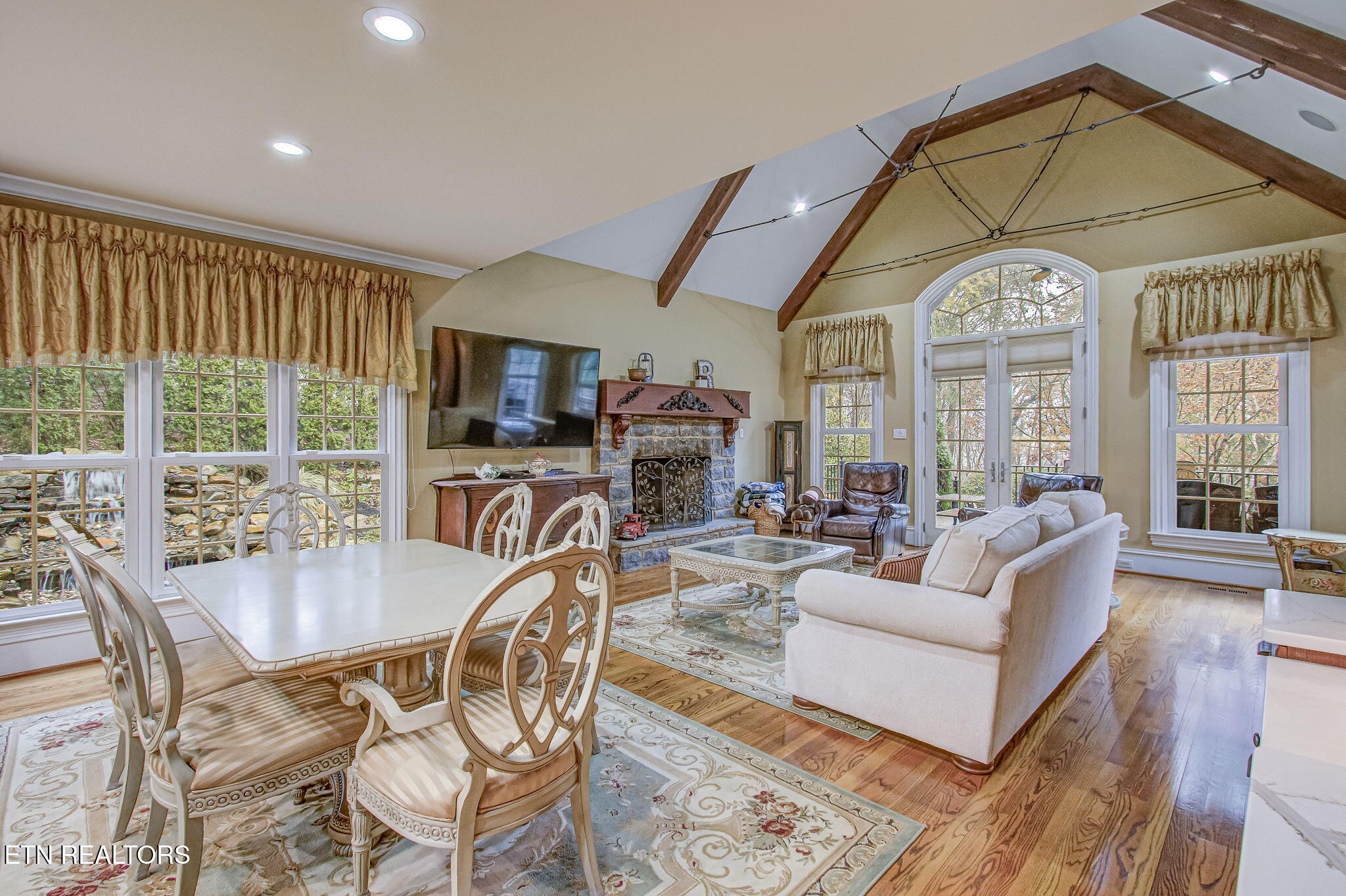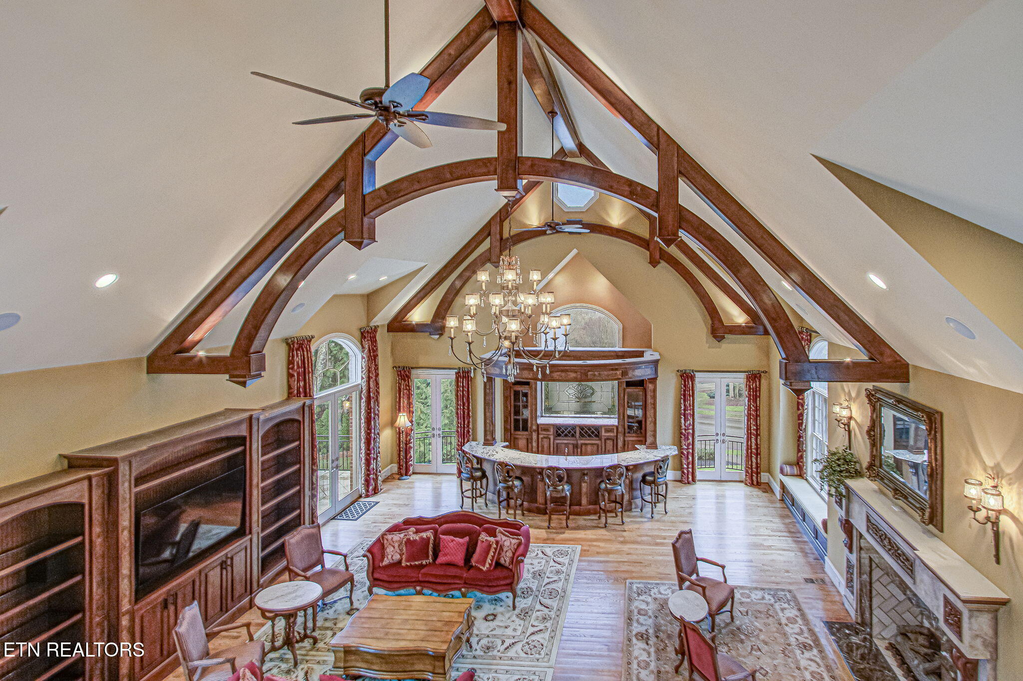 Stone Vista The Pinnacle of Farragut EstatesThe Height of Seclusion and Scale Poised majestically on a rare 1.2-acre double lot, this 11,000 square foot masterpiece is a rare blend of obvious quality and absolute privacy. Beyond the threshold, the home unfolds as a sanctuary of sophisticated comfort, where grand-scale entertaining meets the soul-warming intimacy of a private retreat.A Main Level of Unrivaled GrandeurThe heart of the home is a staggering 40x30 Great Room, a masterclass in design featuring soaring 25 timber-beamed ceilings, a massive marble fireplace, and a grand bar crafted for the connoisseur. The culinary wing--anchored by a Chefs kitchen and a cozy keeping room--serves as a rustic yet refined gathering space. Walls of glass create an effortless transition to an expansive outdoor patio and a screened porch, both with private fireplaces and views of the lush grounds and Sounds of Waterfalls with no neighbors in sight.Private Quarters & Masterful Retreats The Primary Sanctuary: The upper level is crowned by a palatial Primary Retreat, a world unto itself with a dedicated sitting sanctuary and a spa-inspired ensuite. Three additional oversized suites ensure luxurious privacy for family or guests. The Guest Wing: A thoughtfully positioned main-level suite provides a private haven for multi-generational living or distinguished visitors. The Terrace Level: A surprise and delight floor dedicated to leisure and the arts. This level features a rec-room, professional cinema-style theater, a custom wine room with its own hearth, a 6th bedroom, and specialized spaces including a craft room and a dedicated garden room.A Botanical & Automotive OasisThe exterior is a botanical triumph. Eschewing the feel of a traditional subdivision, the grounds are defined by a spectacular 150-foot cascading waterfall feeding three serene ponds. The estate is further elevated by: A classic ornate gazebo, custom marble arbor, and dual firepits for evening ambiance. The Collectors Garage: A 6-car capacity haven, featuring a finished, climate-controlled lower gallery with a private drive--the ultimate stage for an automotive collection.This is more than a residence; it is a no-compromise lifestyle defined by exclusivity and unrivaled luxury at every turn.