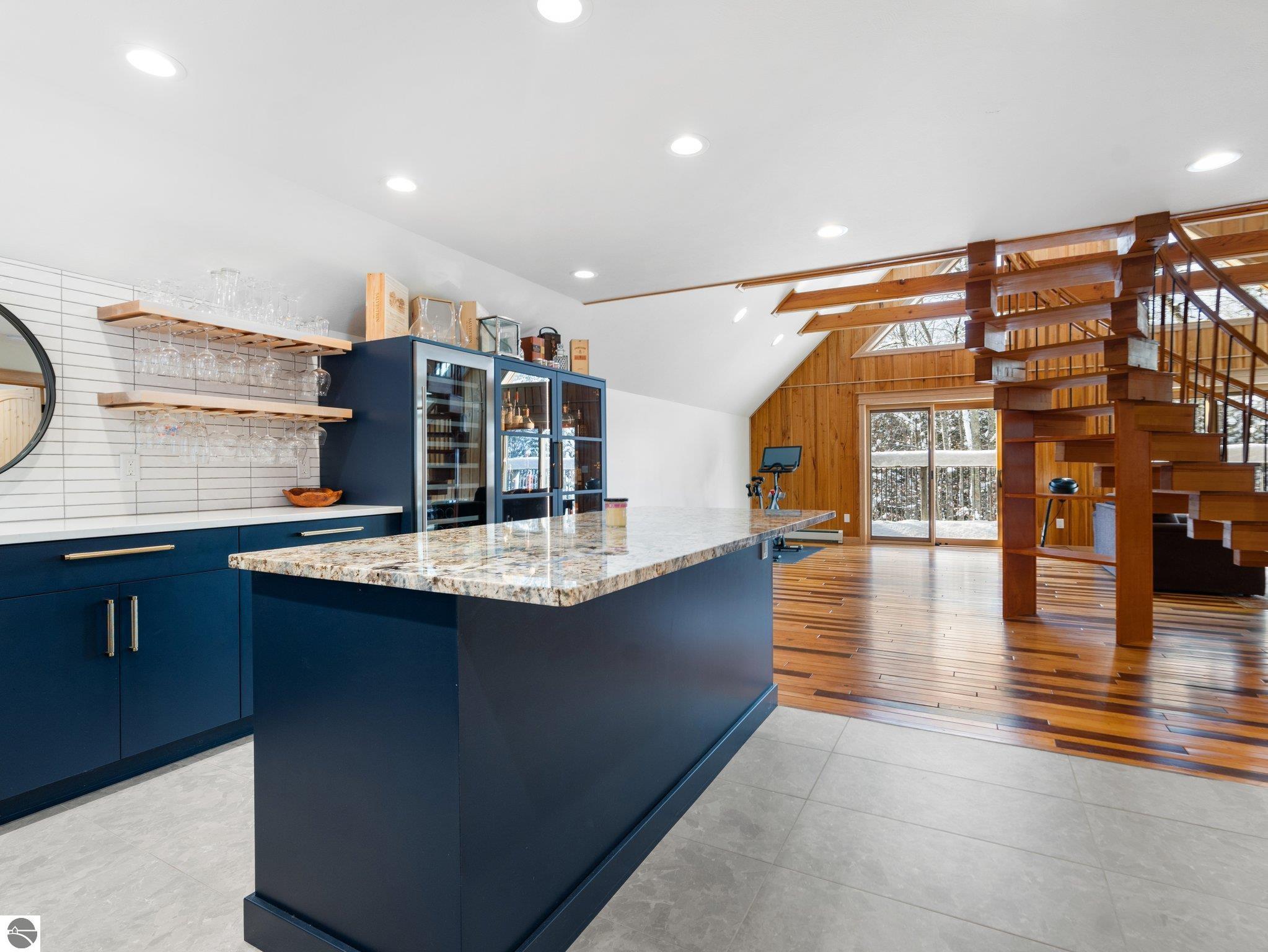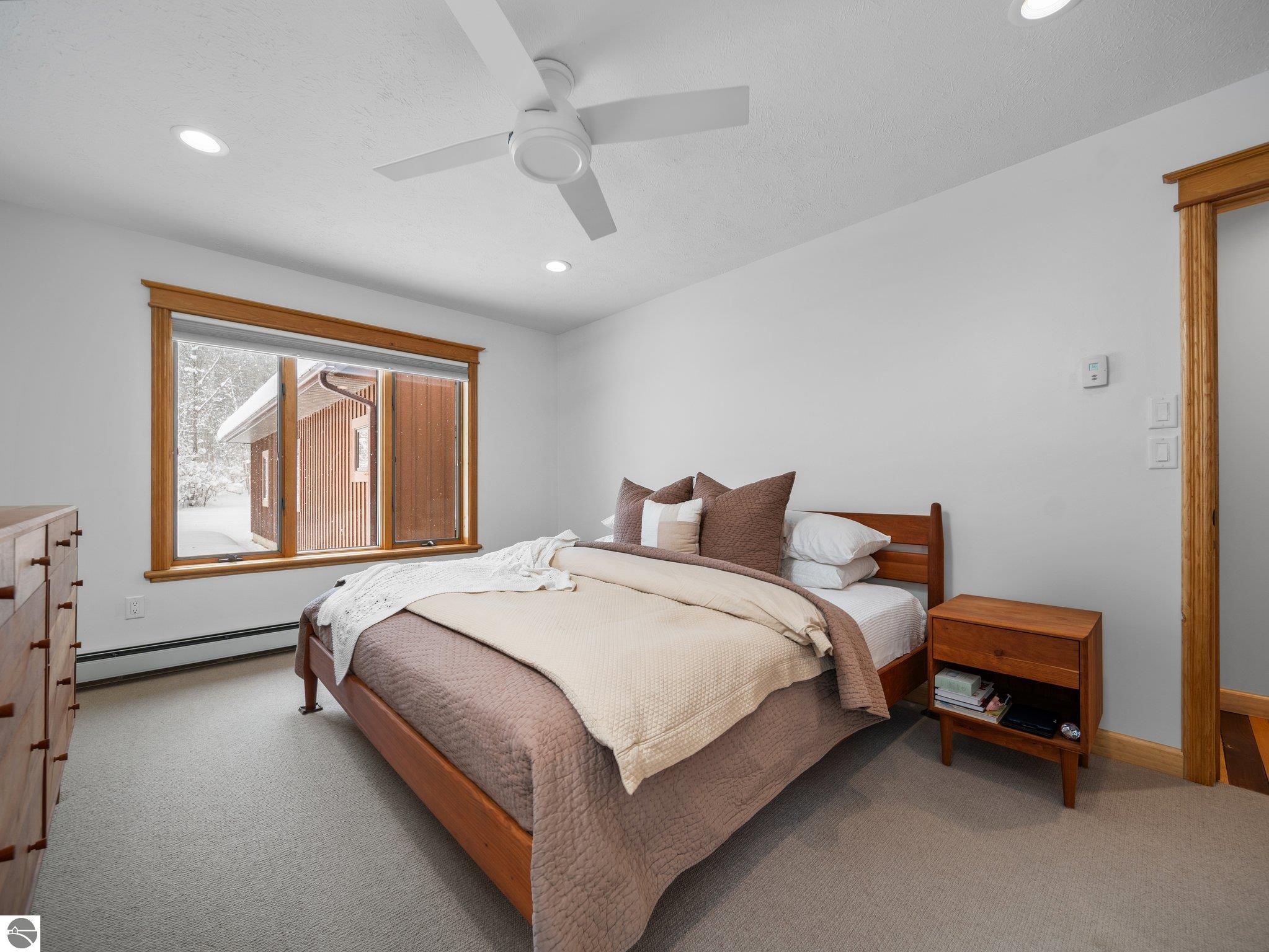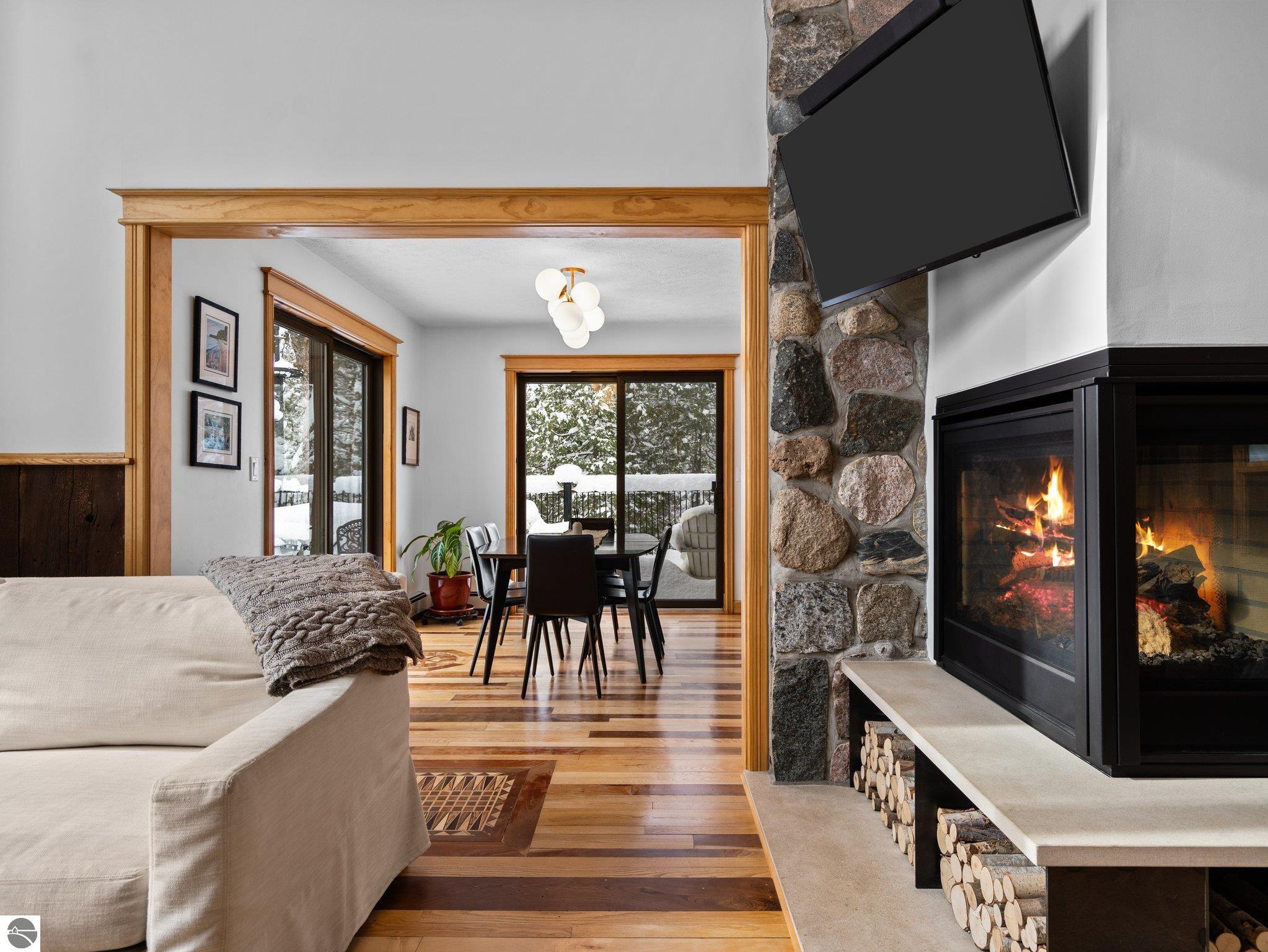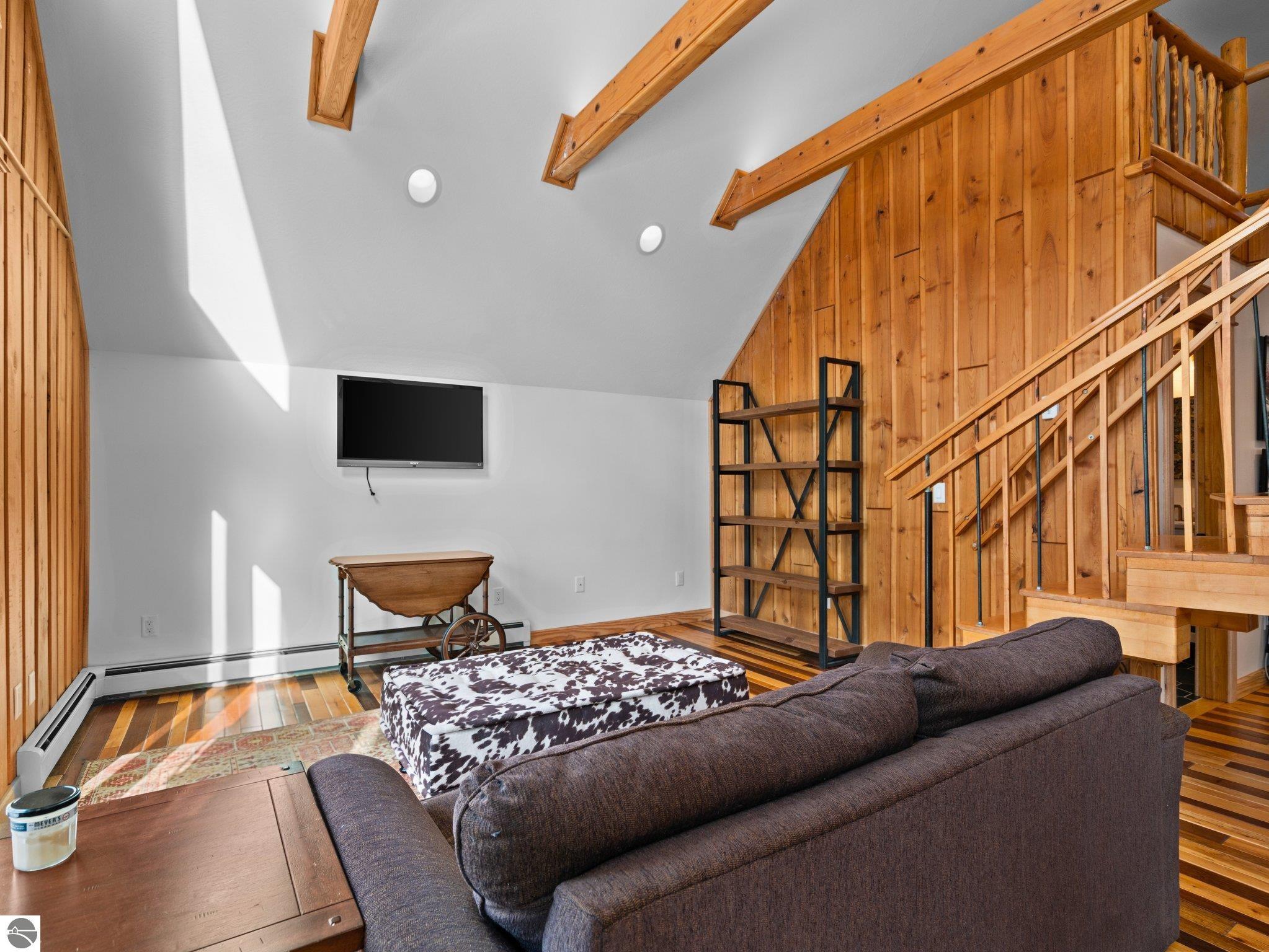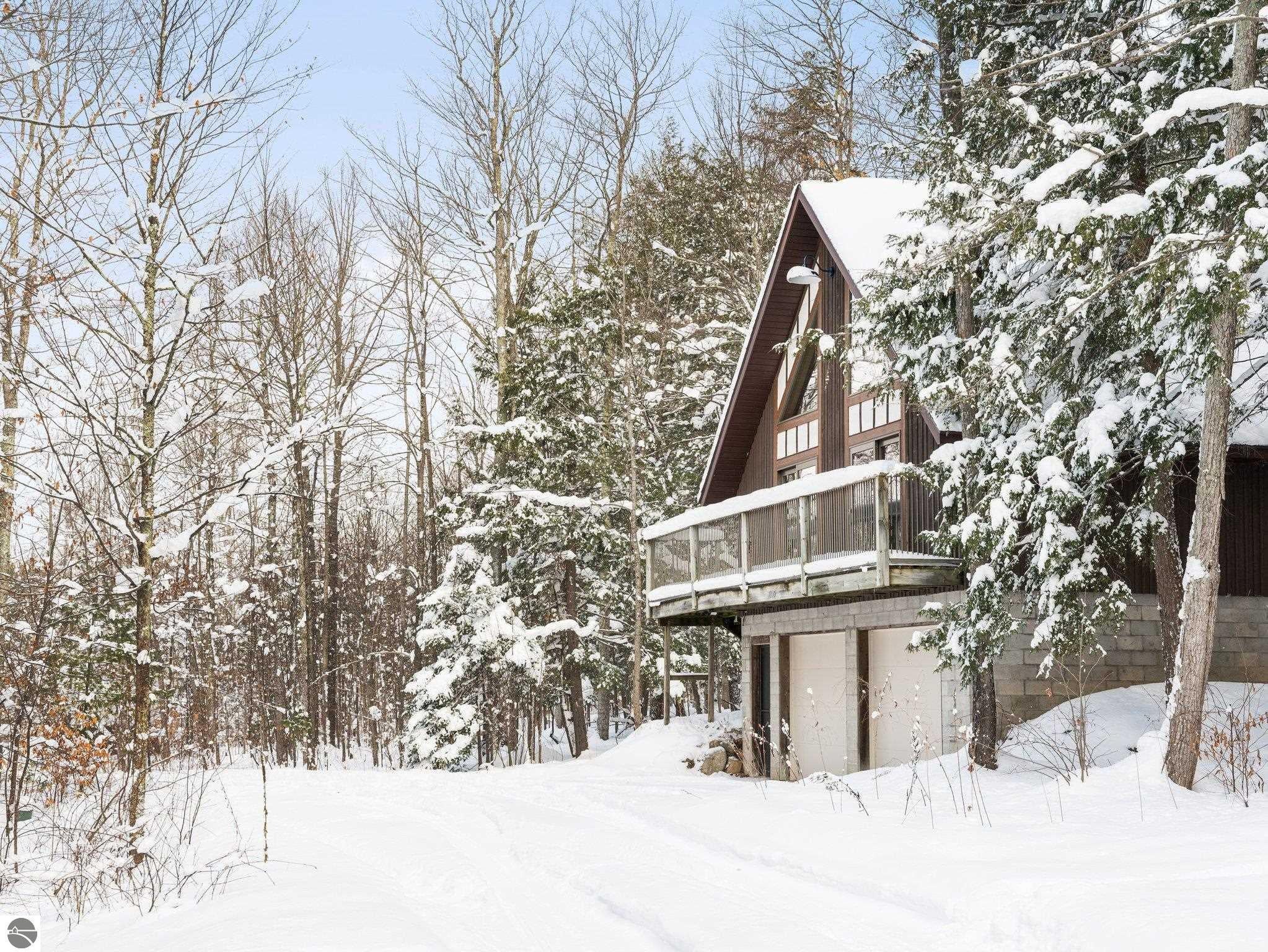 Experience the best of Leelanau living with this extraordinary 107-acre property featuring 500 feet of private frontage on the crystal-clear waters of Lake Leelanau. Rolling hills, ridge-line lake views, open meadows, hardwoods, evergreens, and farmland make this a truly one-of-a-kind offering just 15 minutes from downtown Traverse City. The landscape naturally lends itself to year-round outdoor adventure. In the winter months, the property transforms into a private retreat for sledding on your own hill, cross-country skiing and snowshoeing along established trails, and exploring by snowmobile. Ice fishing on the frozen lake becomes a favorite way to gather and take in the quiet beauty of the season. When the snow melts, the same rolling terrain and open spaces offer endless opportunities to hike, explore, and enjoy lakeside living at its finest. The 4-bed, 2.5-bath main residence beautifully blends classic up north charm with modern updates, featuring vaulted wood ceilings, inlaid wood floors, and a stone fireplace. Both the home and property were thoughtfully renovated in 2022, offering a fresh, move-in-ready experience. A Generac generator provides added peace of mind for comfortable year-round living. Evenings here are especially magical, with stunning sunsets that paint the sky over the lake, easily enjoyed from multiple vantage points across the property. For additional living space, a separate 1-bed, 1-bath chalet offers updated interiors and a four-car garage underneath, ideal for guests, a private retreat, or potential rental use. Additional structures include a 30x50 pole building for storage and two waterfront cabins, perfect as bunkhouses or convenient lakeside gear storage. With 3,700 feet of frontage along East Birch Point Road, a private dock, and a firepit for lakeside gatherings, this rare Leelanau County property offers an exceptional blend of beauty, privacy, versatility, and outdoor living in every season.