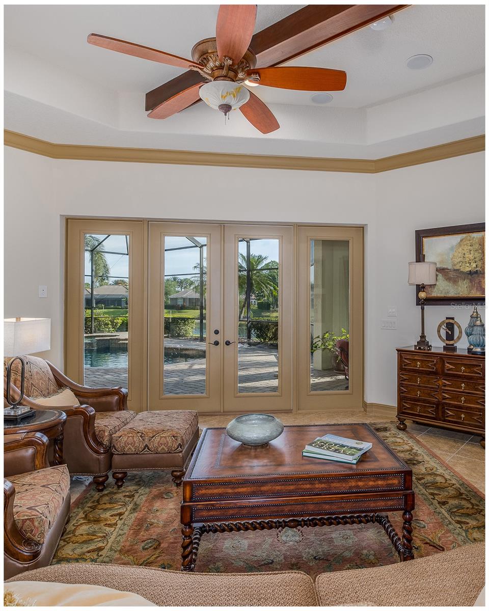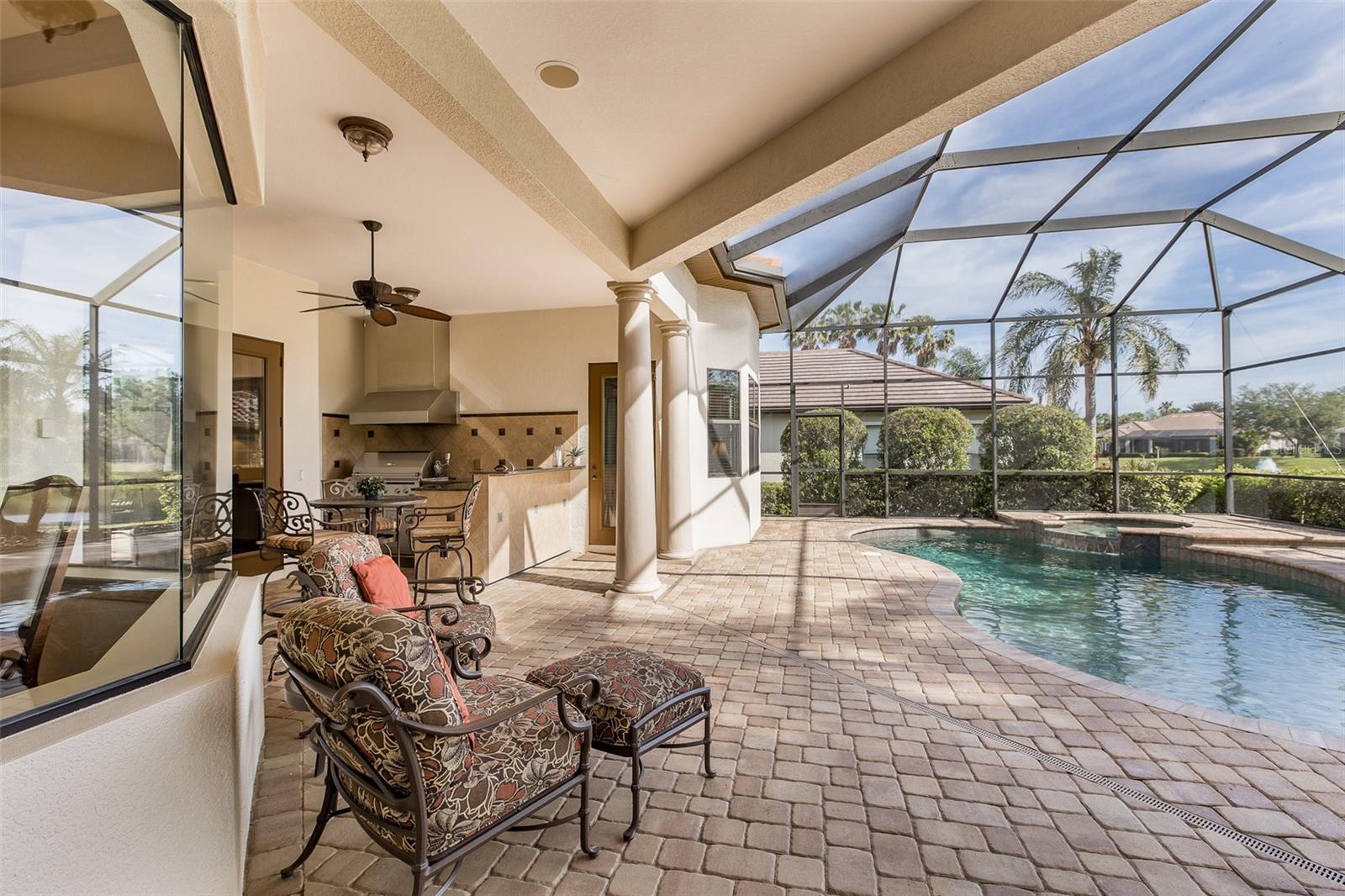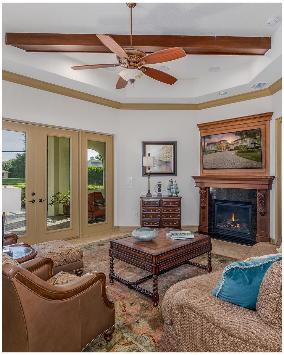 Welcome to an Extraordinary Lifestyle Floresta at Champions Club. Nestled behind the exclusive gates of Floresta within the prestigious Champions Club golf course community, this impeccably maintained original-owner residence is a rare offering that seamlessly blends refined elegance with effortless everyday living. From the moment you arrive, the attention to detail is unmistakable. Soaring tray ceilings adorned with rich crown molding and intricate wood details set the tone in both the formal living and dining rooms, where elegant window treatments frame every vista with grace. This is a home that was built to impress and has only grown more distinguished with time. The custom chefs kitchen is a true culinary sanctuary, appointed with rich wood cabinetry, gleaming countertops, and a show-stopping custom hood. A sun drenched breakfast nook invites you to start your mornings with serene views of the shimmering pool and tranquil pond beyond. The heart of the home - the family room - is warm and inviting, anchored by a gas fireplace, dramatic wood beam ceilings, and atrium doors that blur the line between indoor and outdoor living, opening directly to your private outdoor haven. Retreat to the oversized primary suite, where a generous sitting area and spa-inspired en suite bath await. His-and-her vanities, a luxurious soaking tub, and a custom shower create a daily escape from the ordinary. Two additional oversized first-floor bedrooms share a well-appointed bath, while the media room / home theatre delivers the ultimate cinematic experience without ever leaving home. A dedicated pool bath services both the movie room and the outdoor living area with ease. Rounding out the first floor: a stylish half bath, a fully equipped laundry room, and a practical drop zone.Upstairs, a massive bonus room - or fourth bedroom - offers two walk-in closets and a private en suite bath, providing the perfect retreat for guests, in-laws, or a sophisticated home office. Step outside to the expansive screened lanai - an entertainers dream. Three covered spaces invite alfresco dining and lounging, while the summer kitchen and outdoor fireplace make every gathering an event. Enjoy a heated saltwater pool with breathtaking pond views, offering year-round resort-style relaxation in complete privacy. 4 Bedrooms 4.5 Bathrooms Home Theatre Heated Saltwater Pool Summer Kitchen Golf Course Community. This is not simply a home it is a lifestyle. Champions Club is a private gated community featuring a private clubhouse, Resort-style pool & spa, Fitness Center, Tennis, Pickle ball, Basketball & many planned activities for all ages throughout the year. Zoned for A rated schools, Trinity Elementary, Seven Springs Middle & J.W. Mitchell High. Conveniently located close to many shops, restaurants, medical facilities, SunCoast Pkwy & short drive to many local beaches, Tampa International Airport & St. Pete/Clearwater Airport! One of Tampa Bays Premier Communities with so much to offer its residents!