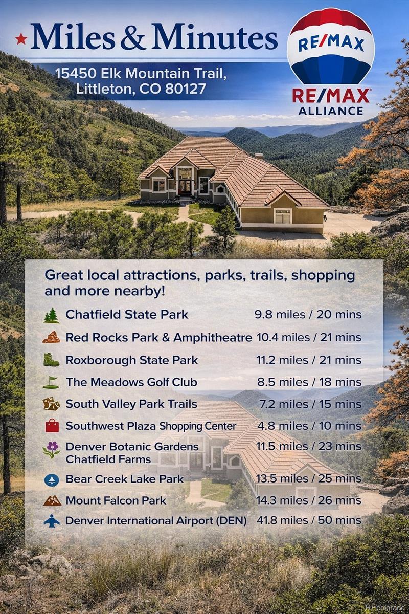 Experience breathtaking mountain views and exceptional craftsmanship at 8536 Rogers Loop, a stunning residence in Arvadas coveted Leyden Rock community. Thoughtfully enhanced with extensive upgrades, this home blends refined luxury, functionality, and Colorado indoor-outdoor living. The main level showcases engineered hardwood floors, custom wainscoting, and expansive windows that frame sweeping Front Range views. At the heart of the home, the chefs kitchen impresses with stainless steel appliances, full-extension dovetail cabinetry, quartz countertops, gas range with pot filler, dual pull-out trash systems, and a generous walk-in pantry-ideal for everyday living and entertaining. The family room features a cozy fireplace and a premium integrated audio system extending to the basement, primary suite, and upper level. Step outside to the covered deck with custom blinds, curtains, lighting, outdoor weatherproof TV, shades, and an outdoor fireplace-creating a true four-season extension of the living space. The primary suite is a private retreat offering its own deck, fireplace, spa-inspired five-piece bathroom, custom blinds, and a walk-in closet. Additional bedrooms provide flexibility for guests, home offices, or multi-generational living. The finished basement expands the homes versatility with a wet bar, two guest bedrooms, enhanced lighting, and a large flex space with direct access to a covered paver patio. The garage is equally impressive with epoxy floors, mounted cabinetry, counters, sink, beverage refrigerator, and a driveway extension. Additional highlights include newer exterior paint, enhanced landscaping, fenced yard improvements, radon mitigation, humidifier, gutter additions, solar shingles, and numerous mechanical and electrical upgrades throughout. Set on a generous lot with access to trails, open space, and top commuter routes, this home offers a rare combination of panoramic views, thoughtful enhancements, and luxury finishes in Northwest Arvada.