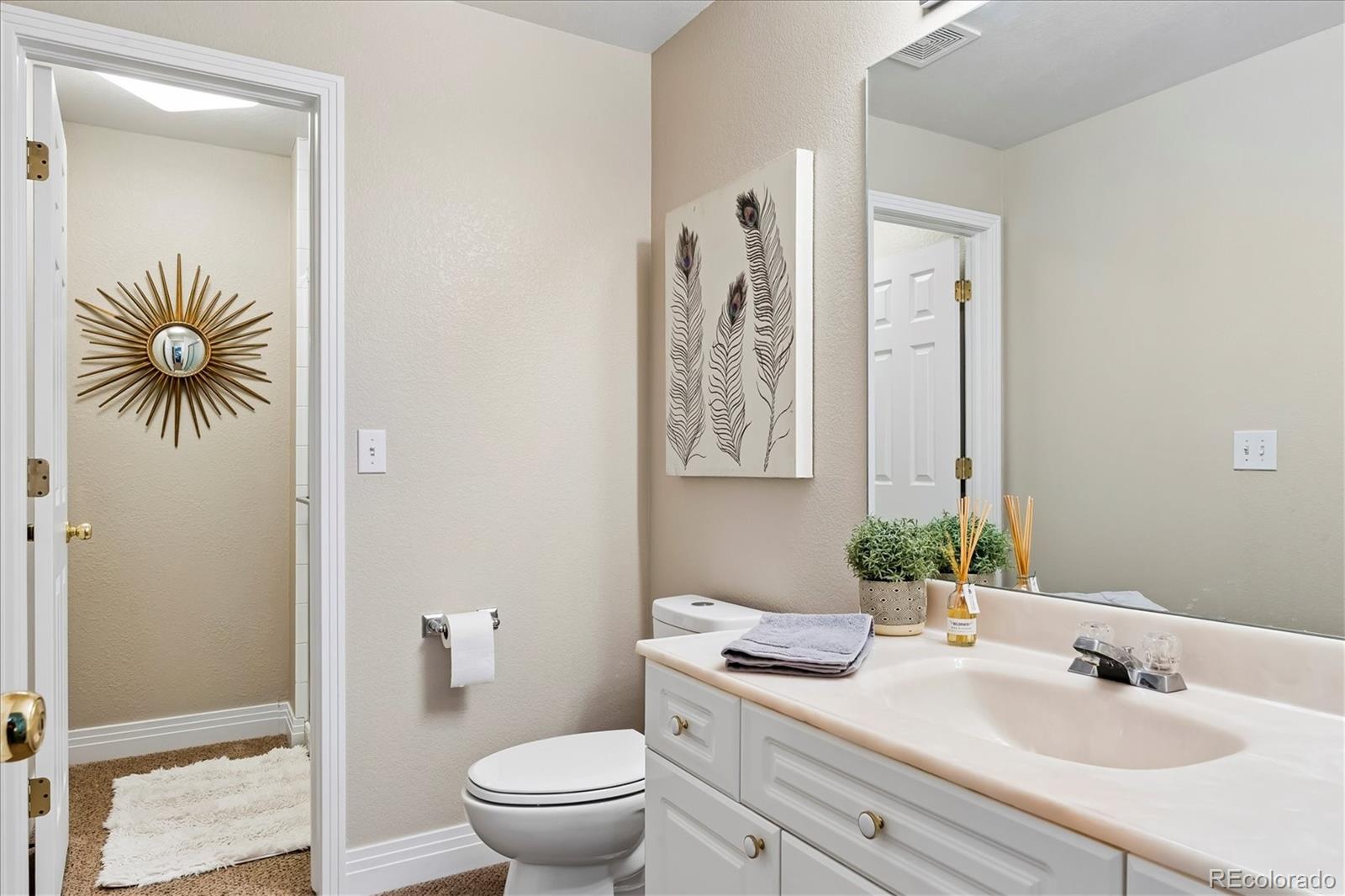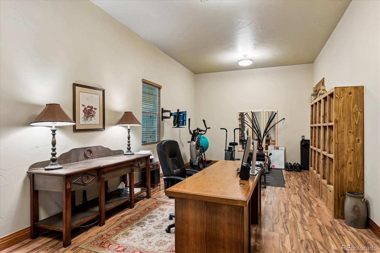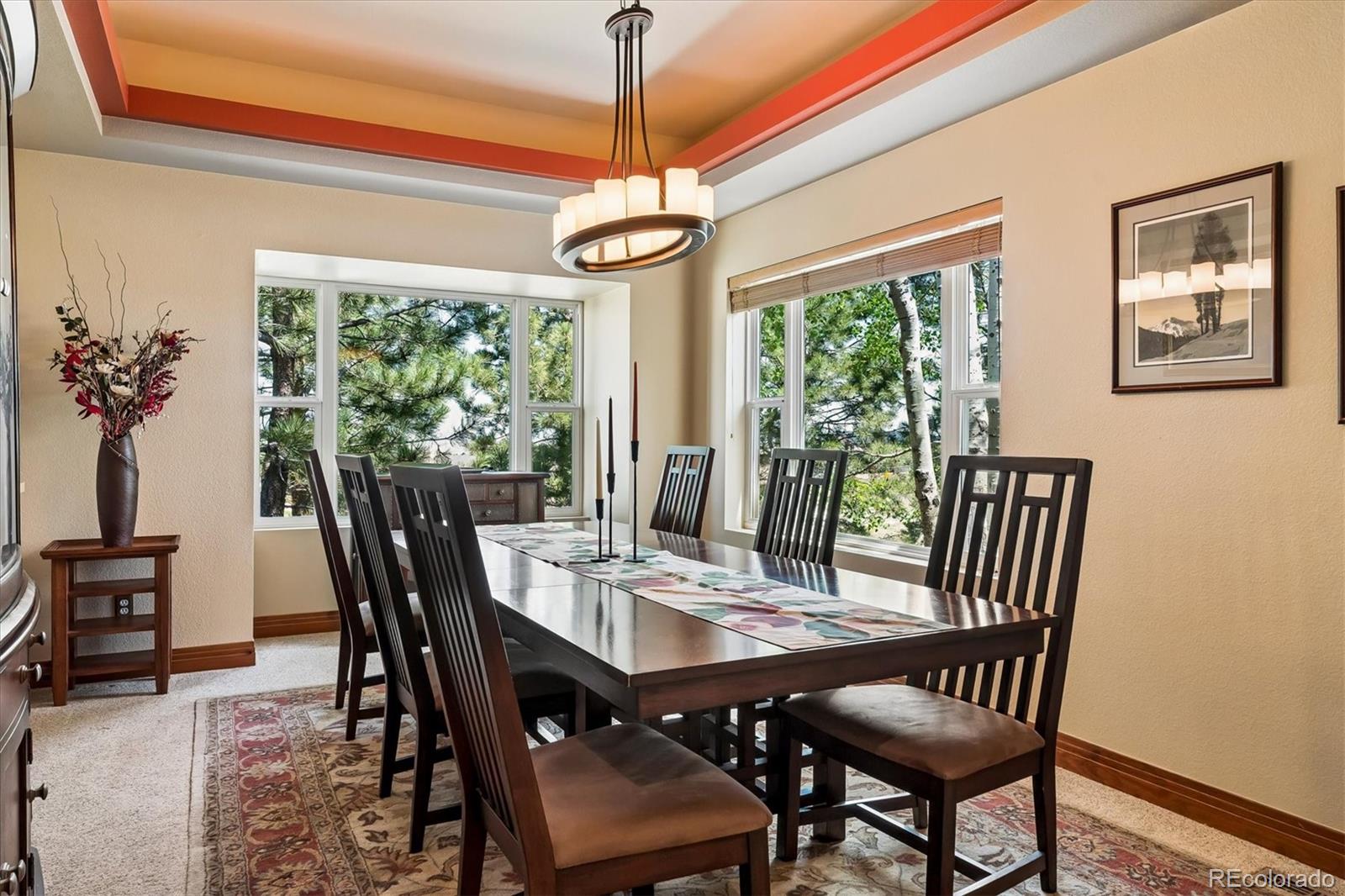 This home is a showstopper. Freshly refinished light hickory floors span the entire main level, setting the stage for a light, elevated aesthetic. The great room has a dramatic wall of windows that perfectly frames the red rock views along Arrowhead Golf Course. Soaring ceilings and crisp white walls create a contemporary Southwestern feel, beautifully complemented by a kiva fireplace. The expansive gourmet kitchen shines with white cabinetry, slab granite countertops, stainless steel appliances, and generous space for casual dining. The formal dining room offers an intimate setting while still accommodating large gatherings. The main floor study has a private exterior entrance, ideal for a home business, and showcases a vaulted tongue-and-groove ceiling that adds warmth. A versatile sunroom just off the kitchen provides endless possibilities for additional living, or relaxation space. The main level is completed by a 3/4 bath w/ a walk-in shower, a powder bath, and a well-appointed laundry room with utility sink, cabinetry, and washer and dryer. Upstairs, hickory stair treads lead to the spacious primary suite, complete with a sitting area and access to a charming rooftop patio with pergolaperfect for enjoying golf course and Denver views. The updated primary bath is bright and inviting, featuring a freestanding tub and dual vanities. The walk-out lower level offers a generous family and recreation space with a fireplace, wet bar, and new luxury vinyl plank floors. Two additional bedrooms, a full bath, and two bonus rooms-ideal for a fitness area, second office, or future theater-complete the space. Outdoor living is exceptional, with a large deck overlooking the golf course and city, a hot tub that stays, and a newly added paver patioperfect for evenings around the fire. The gated front porch with pergola adds charm, while the paver brick driveway enhances the homes curb appeal. A three-car garage provides ample storage for all your Colorado lifestyle needs.