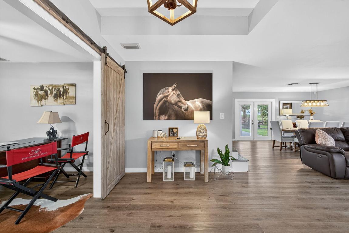 EXCEPTIONAL TURNKEY EQUESTRIAN FACILITY ON 6 ACRES IN RUSTIC RANCHES ESTATESBeautiful equestrian property offering privacy, charm, and functionality in the heart of Rustic Ranches. Walking distance to Wellingtons Environmental Preserve and just a short hack to top Wellington shows, with miles of trails at your doorstep.The 4BD/2.5BA home features 2,288 sq ft under air, a garage, pool, and outdoor spaces. Equestrian amenities include 2 new barns (22 stalls), grooms quarters, a horse walker, 7 paddocks, a large field, and room for a riding arena. High and dry property with drainage, public and well water, irrigation, double-fencing, mature oaks, and more. Move-in ready!A MUST-SEE for the discerning equestrian seeking a move-in-ready facility in the heart of Wellington.