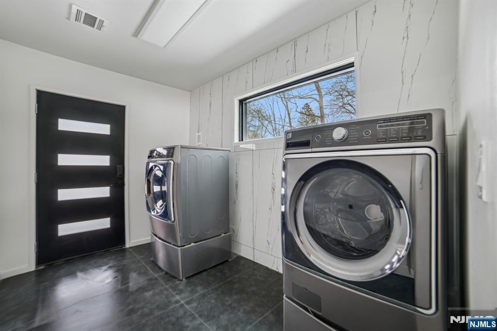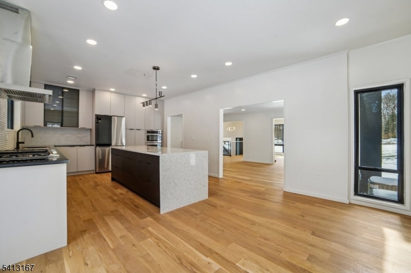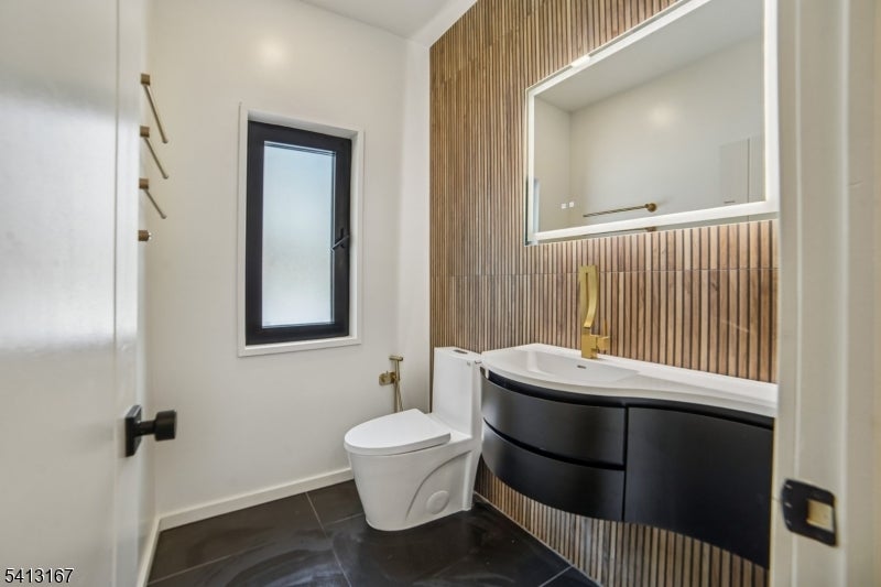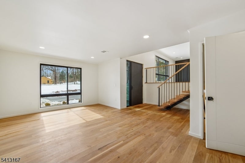 Custom unique expansive & open floor plan on 1. 8 Acres - Dramatic curb appeal from the circular driveway. Modern stucco & techwood vertical siding complements the black 8 ft European steel front door & oversized aluminum windows (coated & with argon for low E). Bright Sunlit Living room with gas fireplace. Home chefs dream KITCHEN - Breakfast area, huge Island, backsplash, cabinets, quartz counters & smart appliances. Dining room with additional seating area & a powder room. Steps down to a Family room. Guest bedroom with a bath on this level, laundry room & access to garage with tiled floors & EV charger. Master bedroom with ensuite & balcony. 2 other bedrooms & bath on this level. Organized closets & bathrooms have Bidets, LED mirrors & towel warmers. Finished LOWER LEVEL offers versatile options for indoor fun. - Wi-Fi enabled thermostats for 4 zone gas HVAC, exterior lighting, cameras, door openers - hardwired TV outlets & ports. New 5 wide white oak flooring, accent walls, floating stairs, metal railings, solid doors, driveway, 200 Amp electric, insulation (even between floors & walls), plumbing, water softener & hot water heater. Huge Trex deck with gas connection for the grill. The incredibly private wooded backyard with no wetlands can host multiple outdoor activities -even tennis or hoops ! City utilities. Minutes to highways, NYC train, schools, shopping & restaurants. Reimagined for personal use & lovingly remodeled with the latest designer features & fixtures.