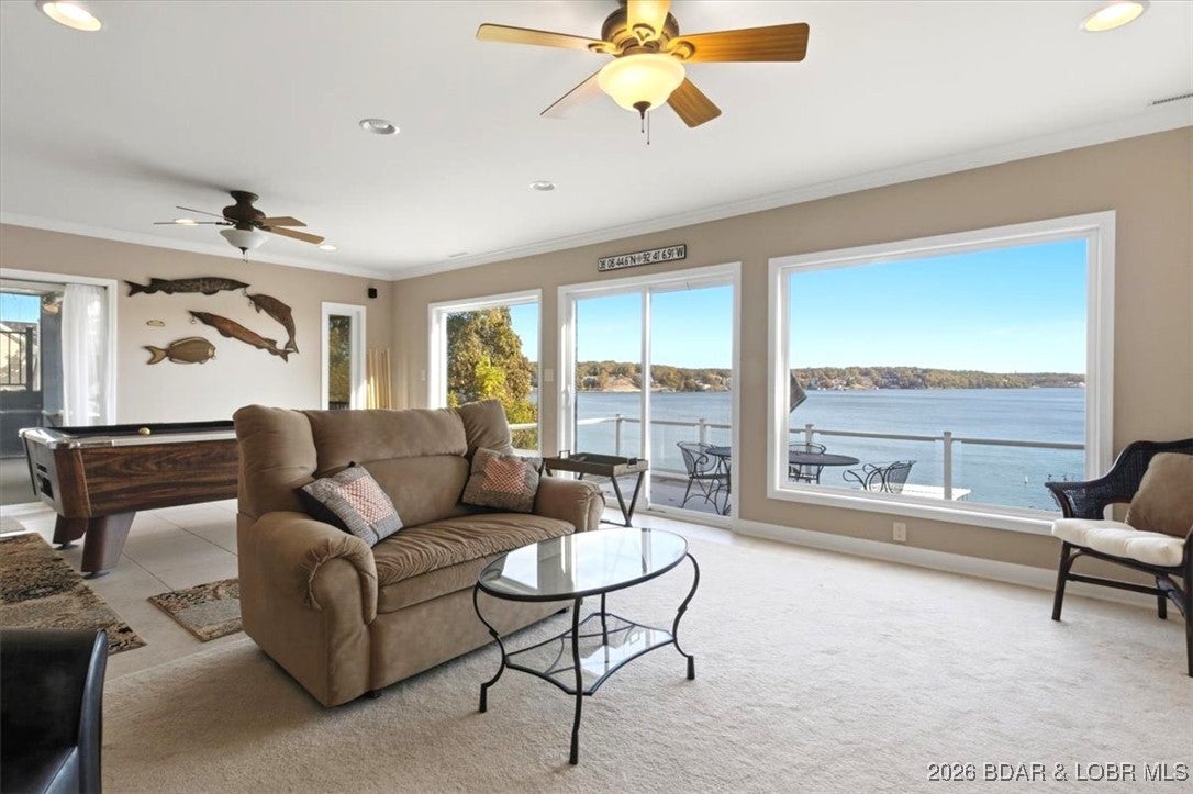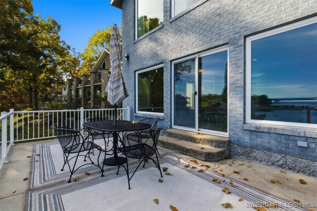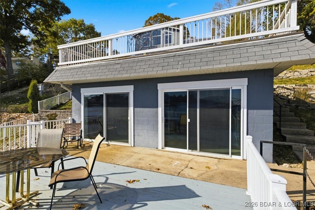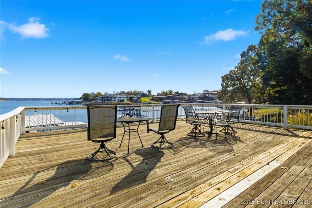 Come make this beautiful home yours & enjoy lakefront living at its best! This 5 bedroom home offers breathtaking lake views & a warm, inviting atmosphere that was thoughtfully remodeled with modern comfort & timeless charm. Nestled in the heart of Osage Beach this home is just minutes by car or water to shopping, restaurants, entertainment, hospital & more! Enjoy 2 levels with large windows bringing in natural light & frame the stunning Lake of the Ozarks backdrop. The main level includes the primary suite, dining room, kitchen, great room, guest bath & bedroom. The garage was converted to guest bedroom to accommodate their growing family, but can be converted back to a garage. The lower level is ready for entertaining with a family/game room, large decks along with a full bar, three bedrooms & full bath. The restored boathouse is perfect for all your water toys along with a huge deck above. A 75,000 wave break is a bonus to the big concrete dock with a 12x32 foot boat slip which can be extended, a 10,000 lb. poly lift, two wave runner slips with lifts, large swim platform & easy steps in & out of the water. The lakeside yard is nicely fenced for your fur babies enjoyment too!