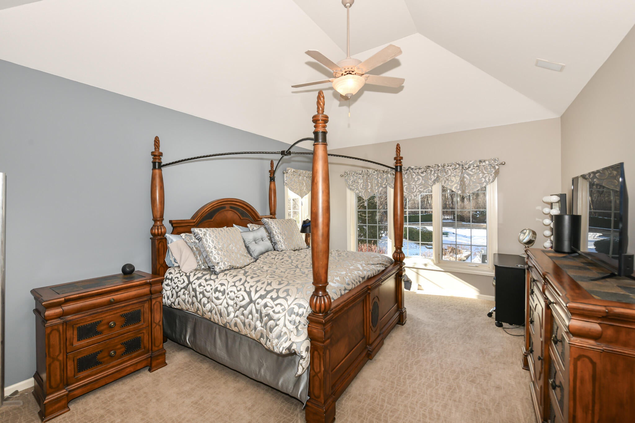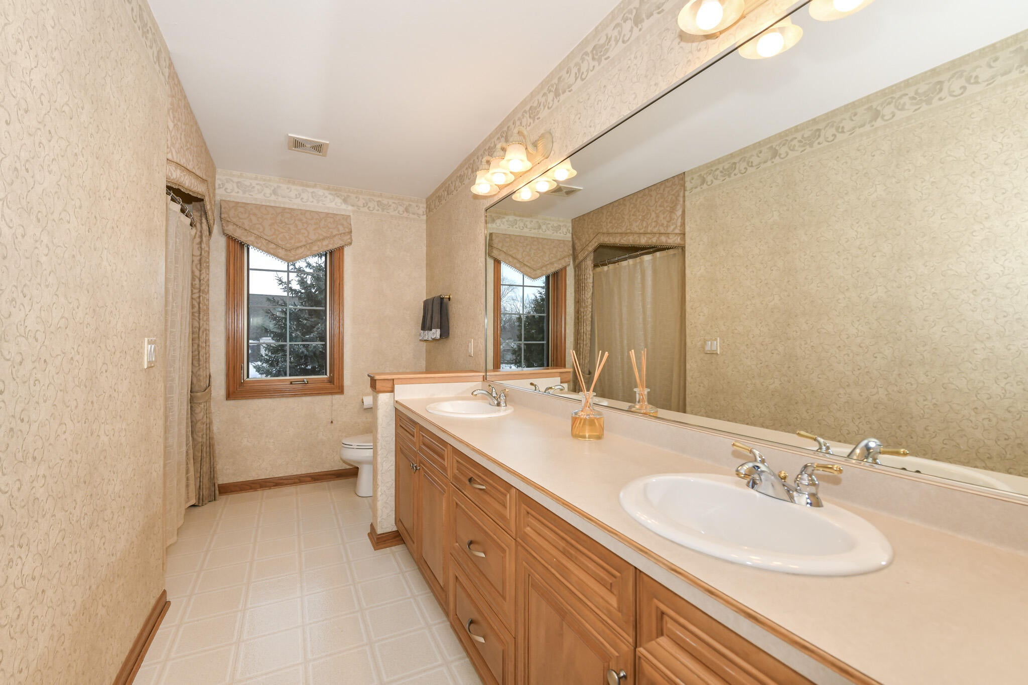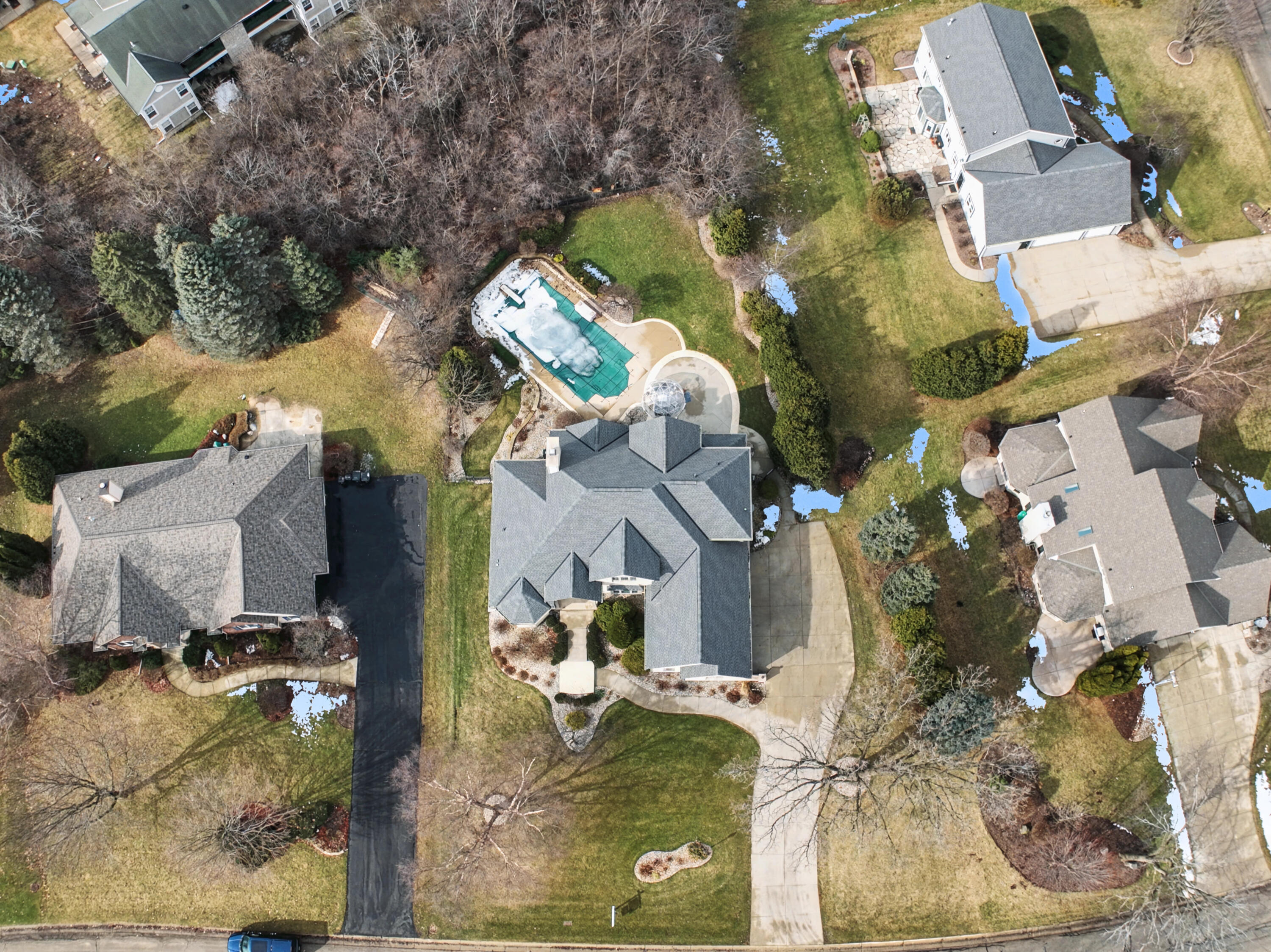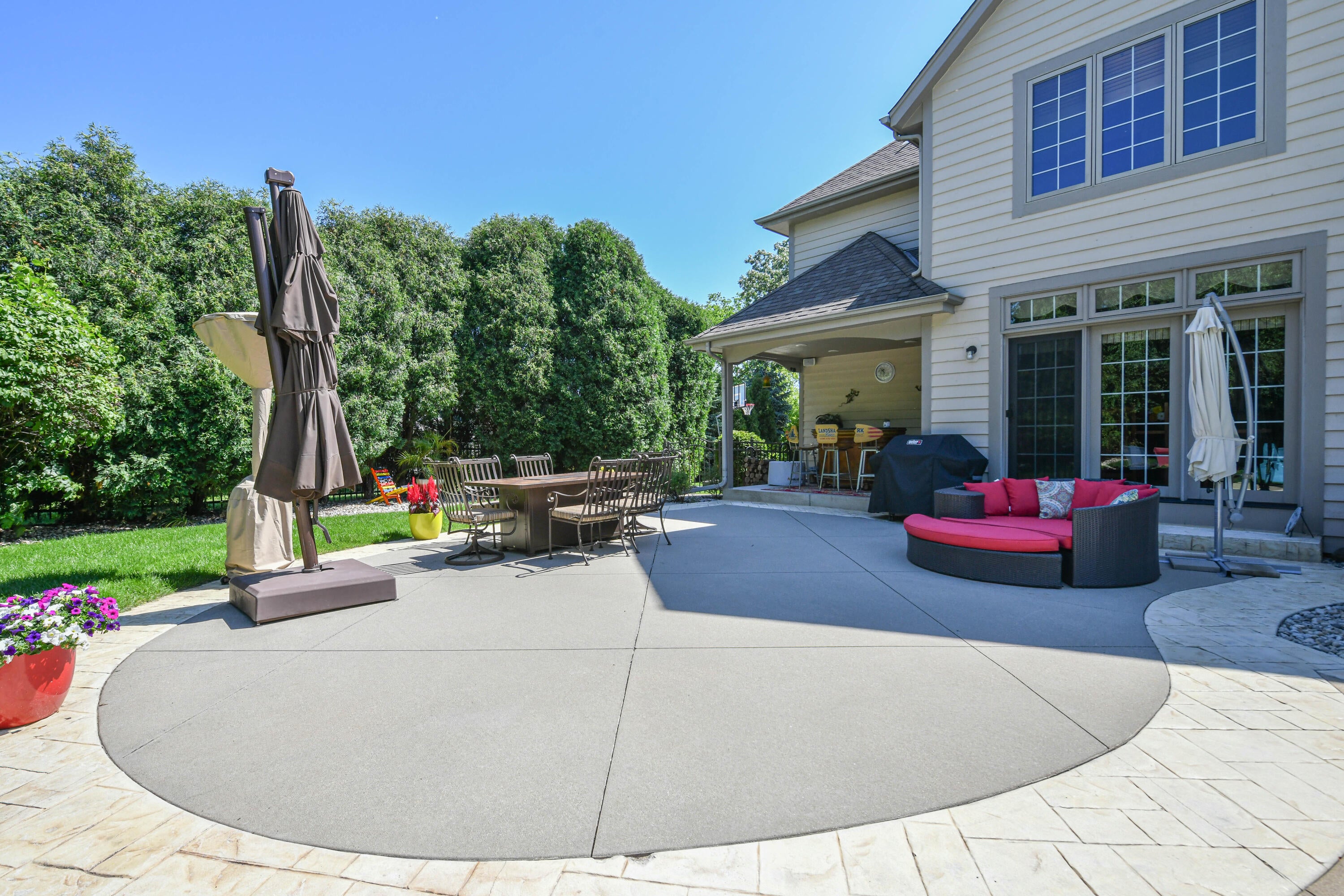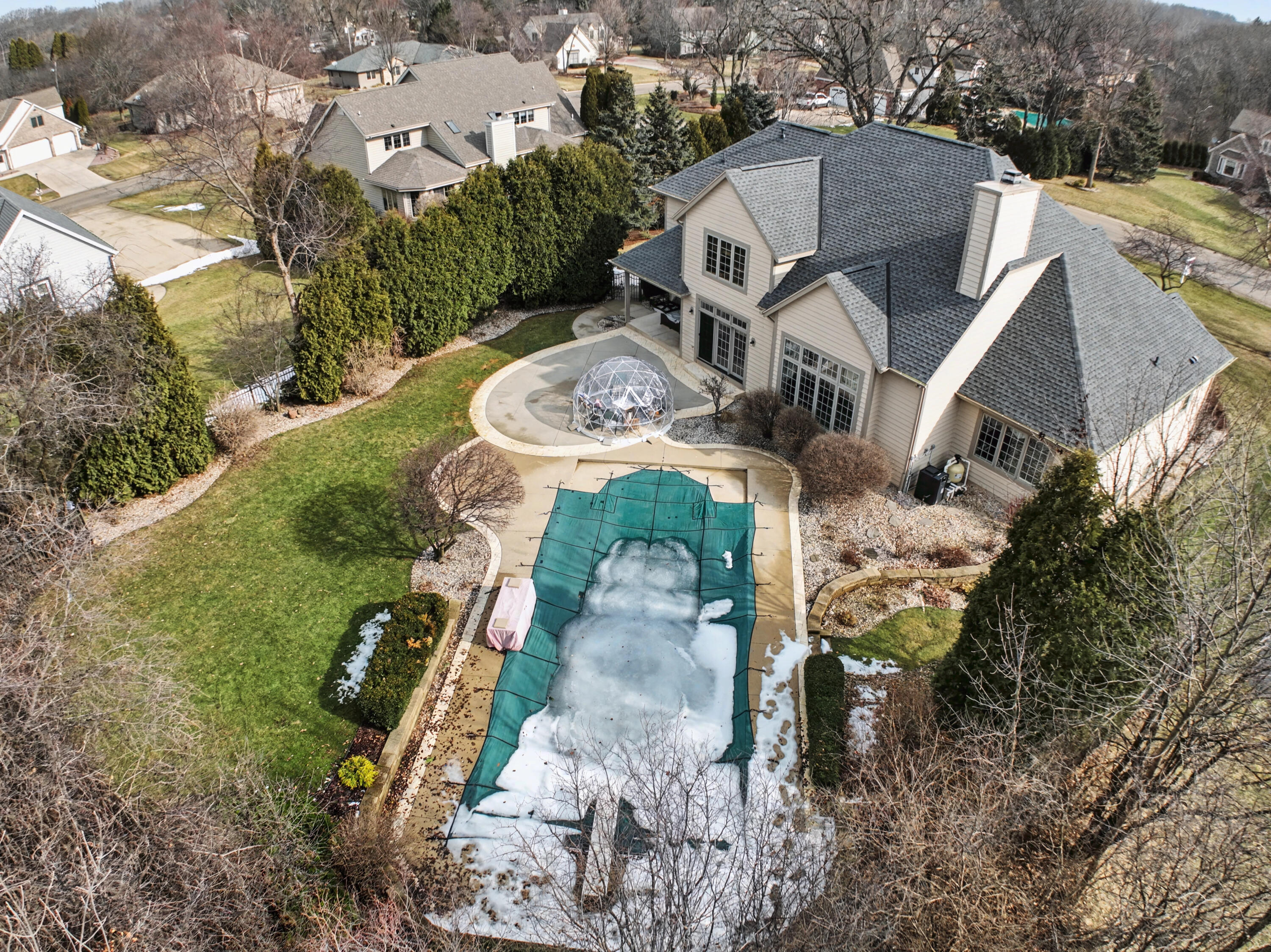 Exceptional executive home showcasing timeless architecture and upscale finishes, impeccably maintained. A dramatic 2-story foyer with vaulted ceilings and a striking fireplace sets the tone. Gourmet kitchen offers granite counters, SS appliances, pantry, custom tilework and dinette. Dining room features a custom painted ceiling. Primary suite boasts volume ceilings, large WIC, and expansive spa bath with jetted walk-in shower. Main-floor laundry/drop zone. Upper level includes loft, 3 BRs and Jack & Jill bath. Finished LL with 2nd kitchen, media and game area plus full bath. Resort-style paradise with a fenced in-ground pool, covered patio, stamped concrete entertaining space and serene wooded views. A truly magnificent home.