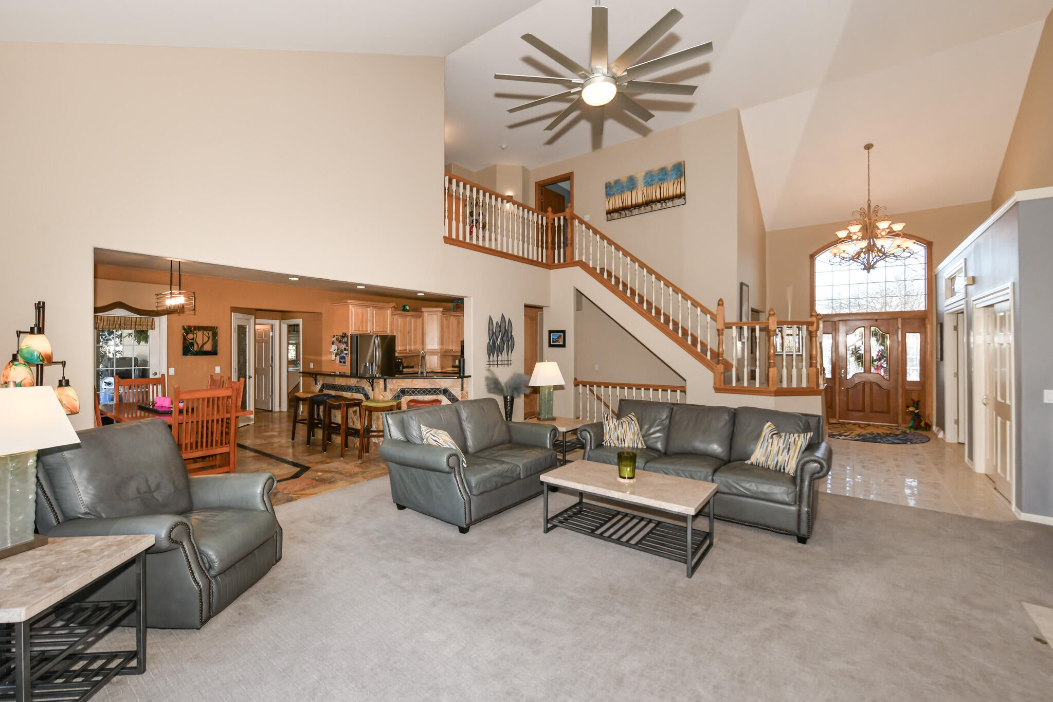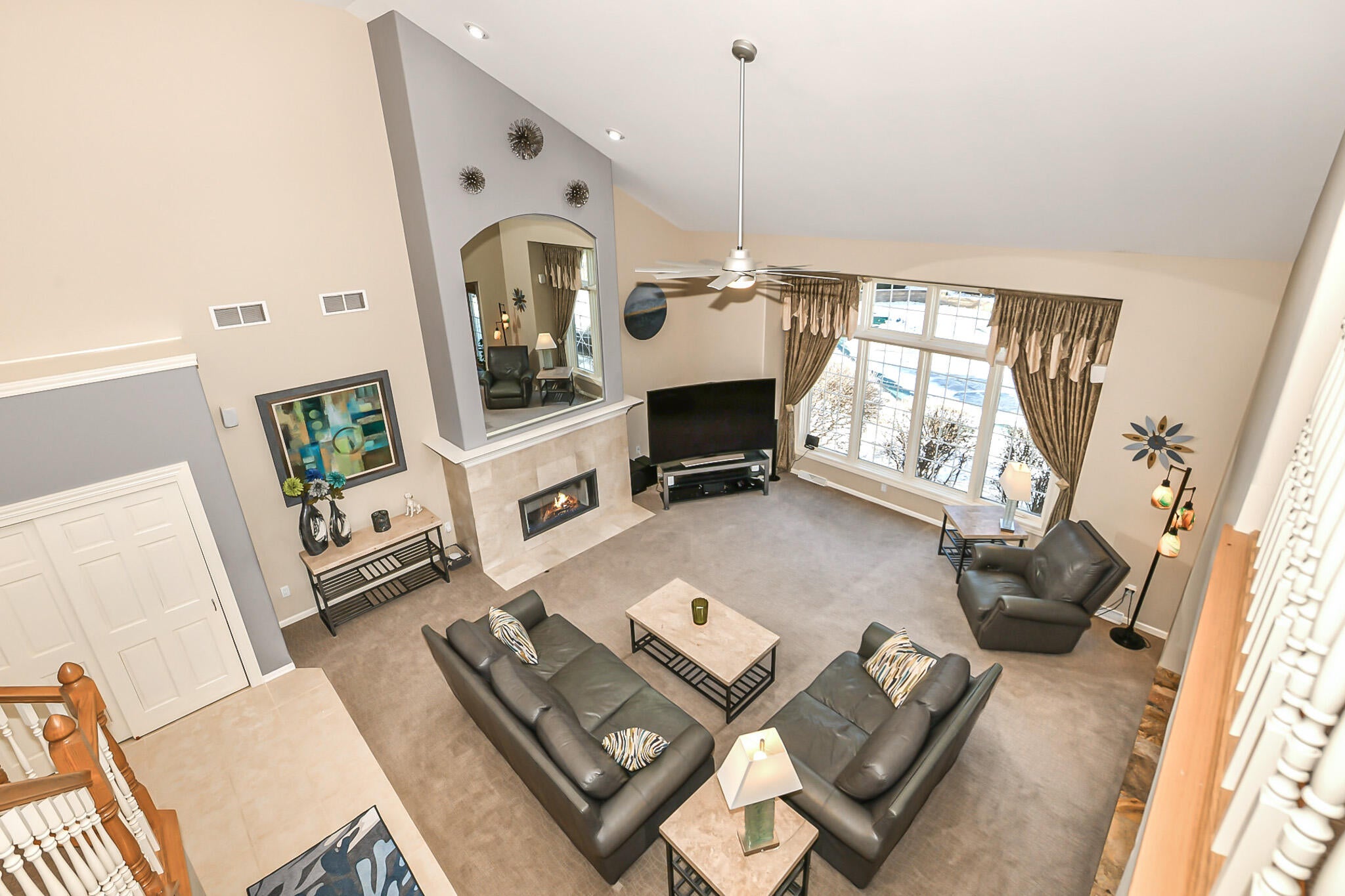 Welcome home to this absolutely stunning two-story located in the coveted Prairie Farms Development. This luxury home is where timeless charm meets function, space, and comfort as well as no backyard neighbors! Step inside to find a double volume living room with an abundance of windows and natural light with a beautiful stone surround fireplace.