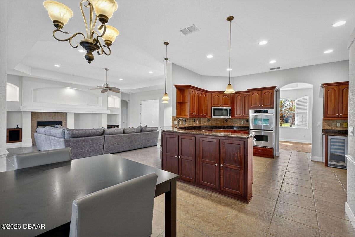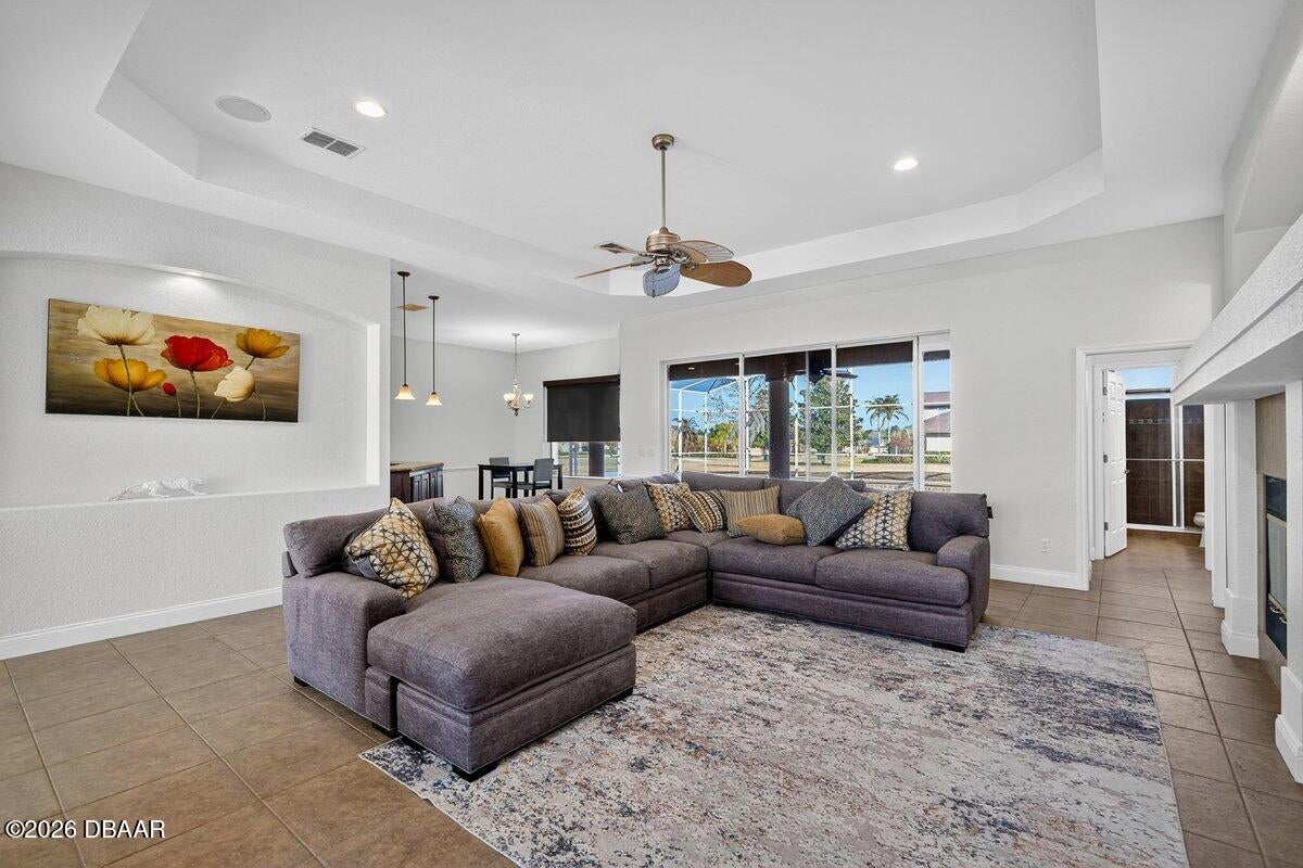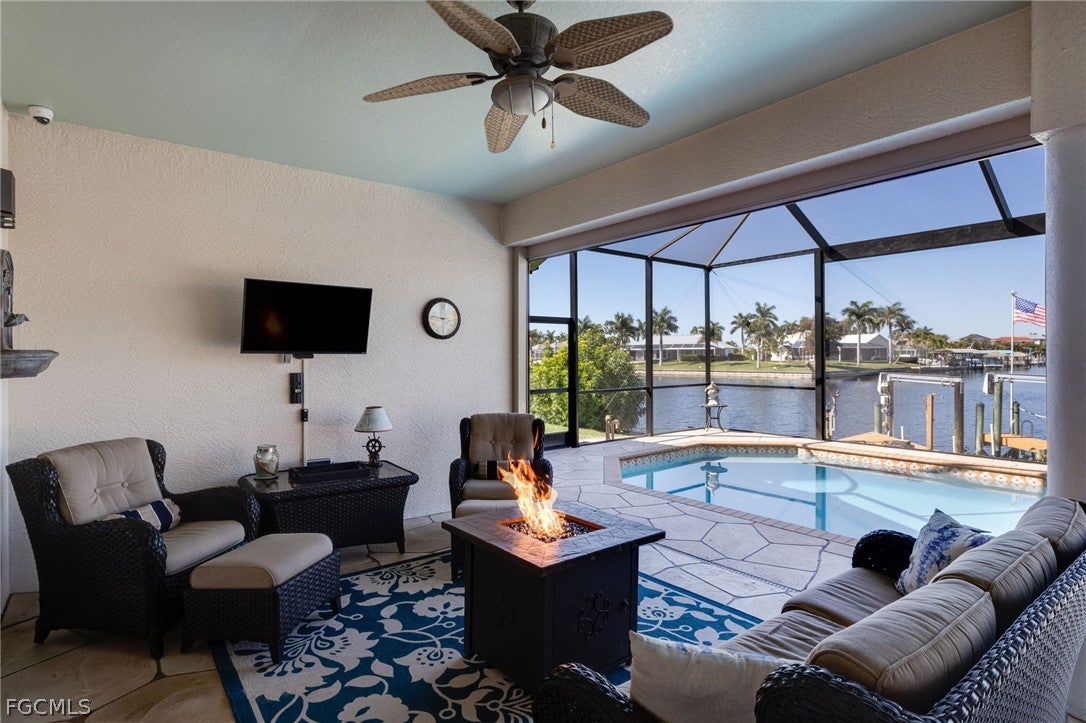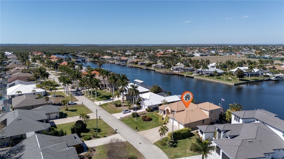 Come see this boaters dream home with insane views. This stunning pool home has a 3 car garage, 4 bedrooms including an upstairs flex room, 4.5 baths, a den, lanai, large stamped concrete deck, 8000# boat lift with wrap around dock, and much, much more.It comes turnkey so bring the whole gang and your toothbrushes and move right in. Situated on a wide water canal this home boasts spectacular intersecting canal views straight from your front door, through the French doors, overlooking the pool, across a 200 foot wide canal and straight down the intersecting canal. You really have to see this home to truly appreciate all it has to offer. The gorgeous kitchen features wood cabinetry, stainless appliances, granite countertops and backsplash, a center island for extra work space and a large walk-in pantry complete with wine fridge. The oversized kitchen also features a breakfast nook with spectacular water views. The giant lanai is perfect for entertaining poolside with expansive views and plenty of room for entertaining. Dont miss the pool bath located under the stairwell but accessible from outside for a genius use of space. Back inside the spacious primary suite features tray ceilings and incredible views and the ensuite has dual sinks, an oversized walk in tiled shower and a soaking tub. Head to the other side of the home and one guest room also has its own ensuite and the other has lanai views. next, go on upstairs to the large flex room which can be used for media room, a fourth bedroom, a family room, ect., the possibilities are endless. This home is ready to go, move in today and start living your best life immediately!
