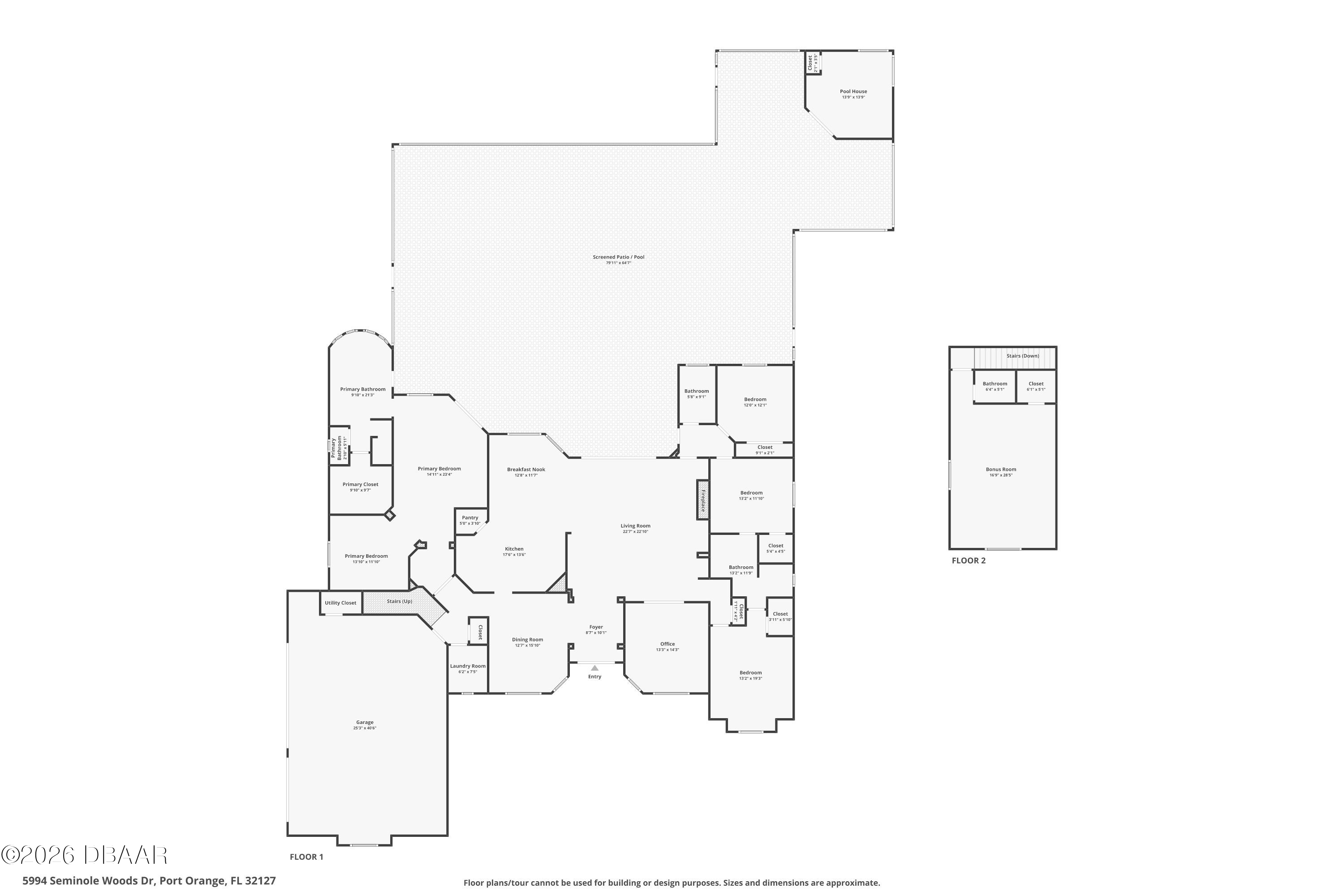 Welcome to this exceptional 5-bedroom, 3.5-bath home in Rolling Hills Estates featuring a brand-new roof and situated on a beautifully landscaped 1-acre corner lot. This impressive 2-story residence offers the ideal blend of space, comfort, and functionality, making it a standout opportunity for buyers seeking acreage living with thoughtful upgrades. Step inside to discover abundant natural light, a welcoming living room fireplace, and a well-designed floor plan suited for both daily living and entertaining. The kitchen is equipped with a double oven, adding convenience for cooking and hosting. Outdoors, enjoy a private retreat with a screened-in inground pool and a covered bar-top gathering spaceperfect for relaxing or entertaining. Just off this area is a versatile air-conditioned flex room (approx. 1510) ideal for an office, hobby room, game room, or additional bonus space. The spacious primary suite offers built-ins in the walk-in closet and a large bath featuring double vanities and a soaking tub. Additional highlights include generously sized bedrooms, ample storage, and a 3-car garage providing plenty of room for vehicles and equipment. Homes in Rolling Hills Estates with acreage, functional upgrades, and flexible living spaces dont come along often. Schedule your showing today and explore everything this property has to offer.
