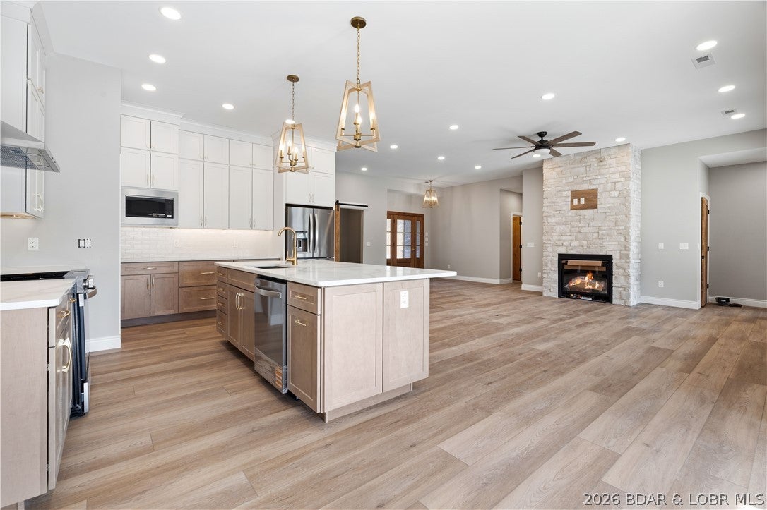 Welcome to The Sedona, an exceptional executive rambler nestled in Ham Lakes premier development, Swedish Chapel Estates. Situated on a private 1.11-acre corner cul-de-sac lot, this beautifully designed luxury home offers refined finishes, functional living, and an inviting open floor plan ideal for both everyday comfort and entertaining.