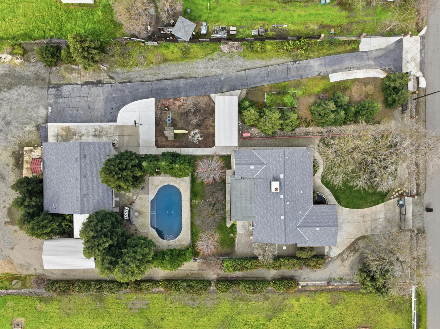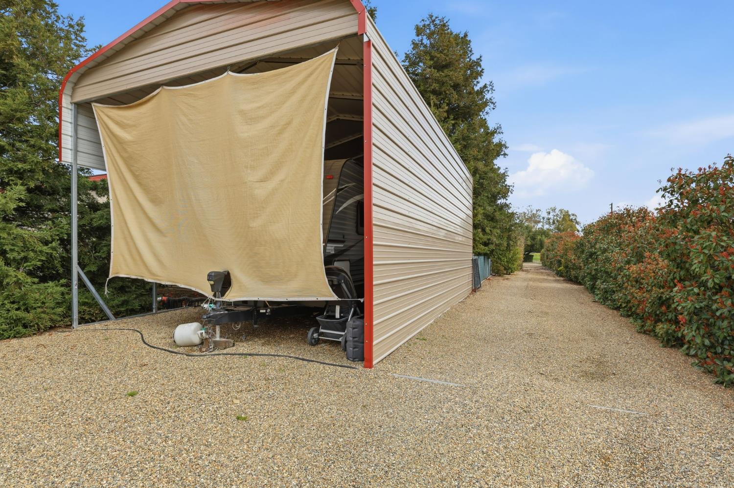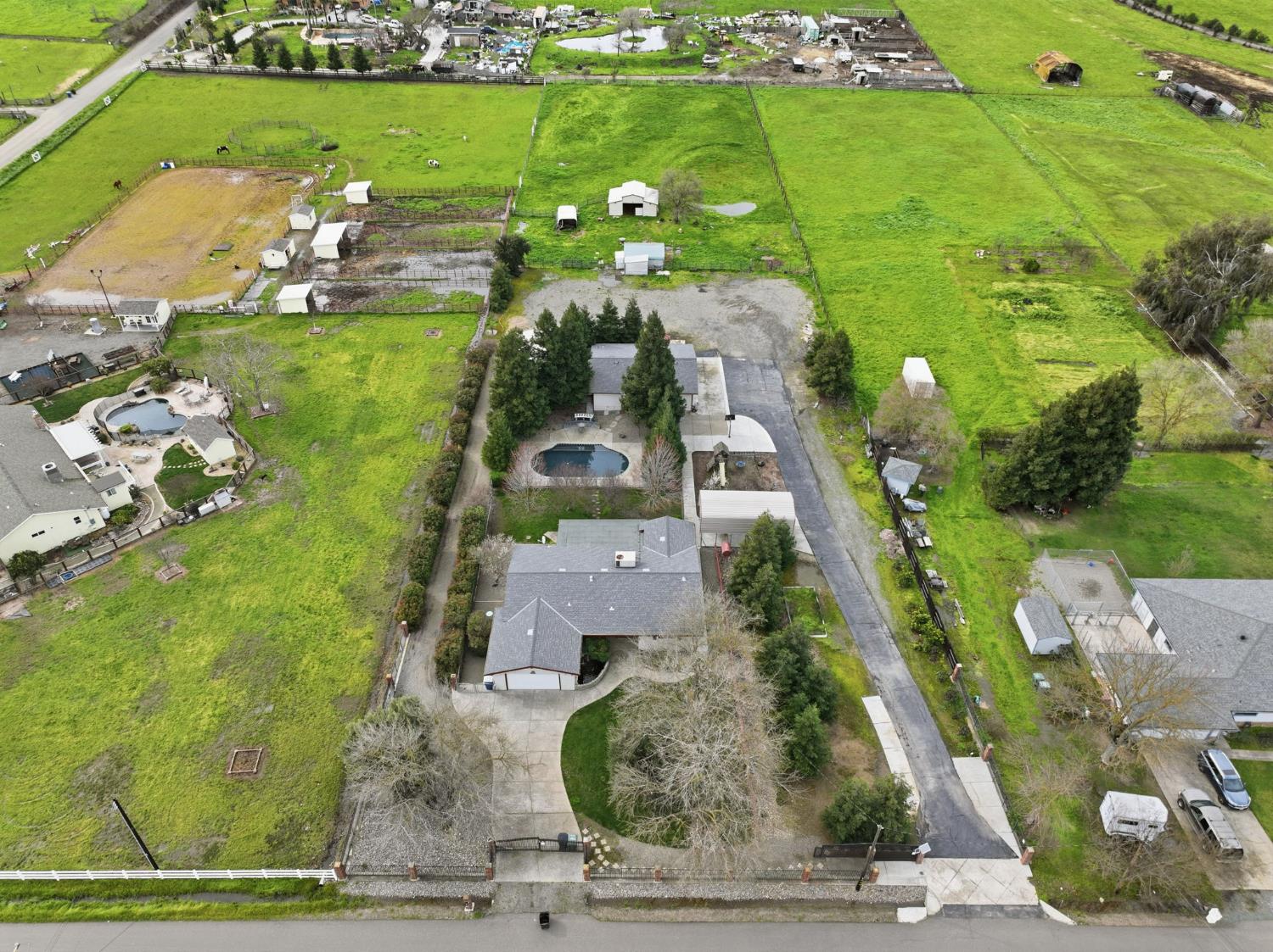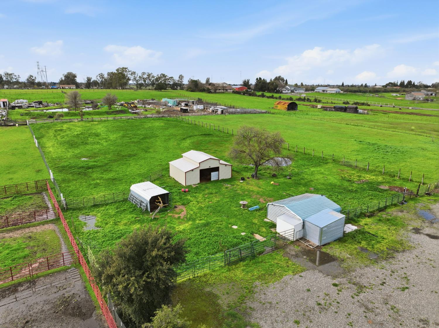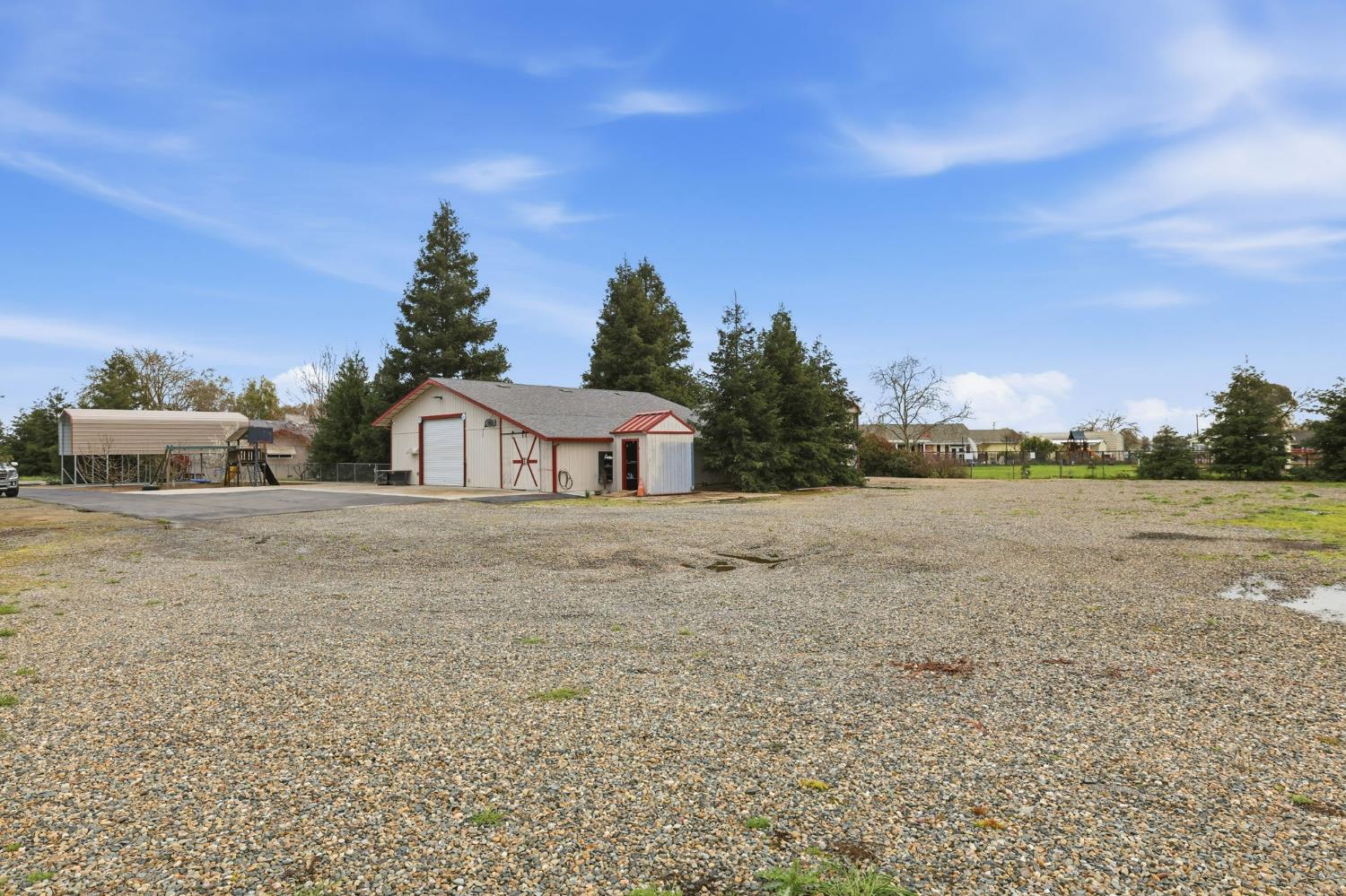 Welcome home, to this wonderful property offering space, privacy, and incredible versatility in the highly sought-after Elk Grove school district. Situated on 2.5 usable acres, this property is thoughtfully equipped for equestrian use, RV living, hobbies, and multi-use functionality. Spend your hot Sacramento summer days in the sparkling pool, relax under mature fruit trees, and take advantage of the play structure and wide-open space. For animal lovers and hobby farmers, the large red and tan barn serves as a stable, while the blue barn sits on a concrete pad for added durability and functionality. An additional outbuilding is anchored into a foundation (dirt interior), offering flexible storage or livestock use. RV accommodations are exceptional. The covered RV parking next to the home is anchored to the ground and includes 30-amp service and water. Adjacent to the shop, a second RV area features septic hookup, water, and 50-amp serviceideal for guests, extended stays, or multi-generational living. The breezeway connecting the shop to the RV area is also securely anchored. The fully working shop includes a bedroom and full bathroom, making it perfect for a home business, workshop, or creative space. A generator backup plug is conveniently located next to the main exterior breaker box for added peace of mind. The home also features a red diesel tank that powers the living room heater for efficient supplemental heat. Additional highlights include solar-powered entry gates, abundant parking, and room for equipment, trailers, and recreational vehicles. This one-of-a-kind property offers the flexibility of country living with modern utility infrastructure already in placeall within close proximity to Sacramento conveniences.