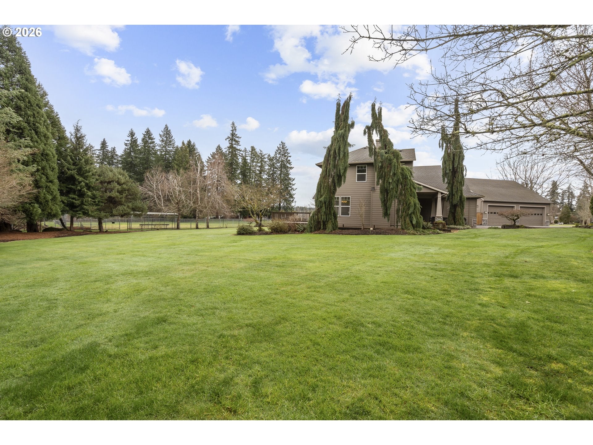 Country estate on manicured, verdant acreage in Goldilocks location, close to town but pastoral and private. The house is Craftsman-inspired, overlooking an extensive fairway-like lawn, about a nine-iron away from a scenic duck pond --inhabited, of course, by a feathered family and flanked by matching outbuildings, each, like the house, with a 50-year presidential roof, including an attached 3-car garage, extended equipment building and massive shop woodworkers studio. Inside the house: High/vaulted ceilings, transoms, archways, wood-burning fireplace, new main-level plank floors and refreshed kitchen with newer stainless appliances, granite counters, full height backsplash, under-cabinet lighting and pantry. The primary suite is vaulted and bright, with walk-in closet, freestanding soak tub and walk-in shower. Three additional spacious bedrooms round out the top floor, two with walk-in closets. The shop: Room to park 6 cars, concrete floor, pellet stove, built-in stereo system and 220 service plus unfinished space upstairs and a massive woodworkers studio on the main level. The equipment building is 192 sf with 100220 service and roll door in the back for tractor/lawn and garden equipment. And yes! There is a parking pad for your RV!