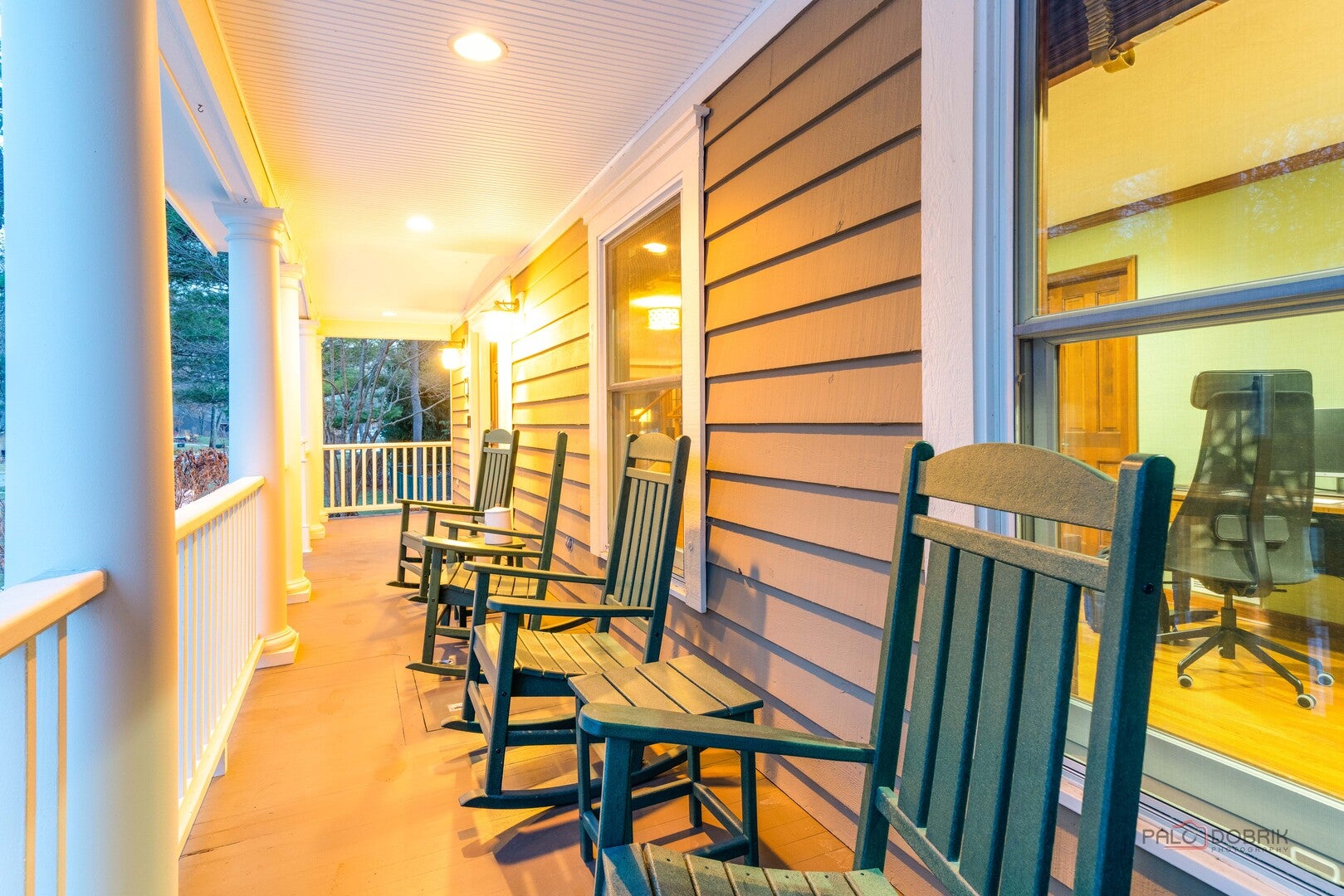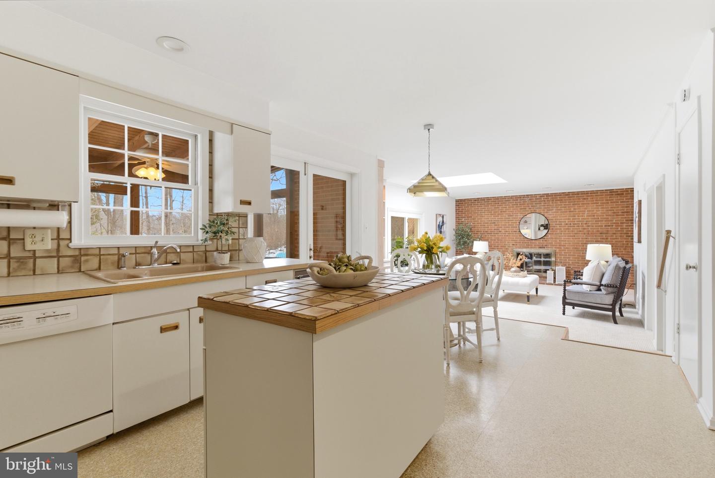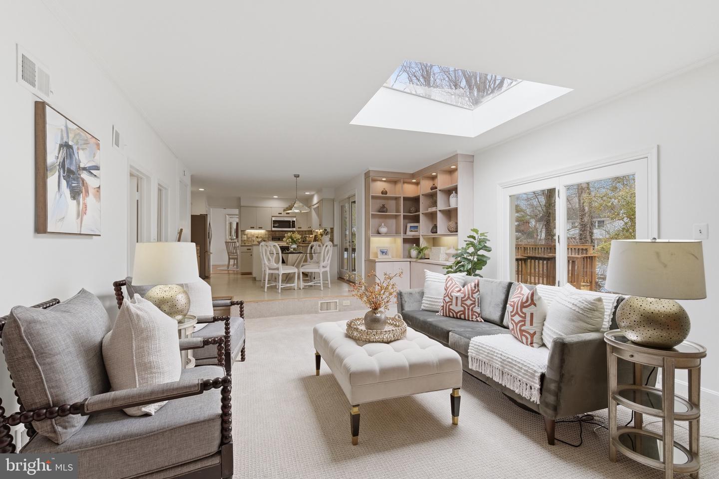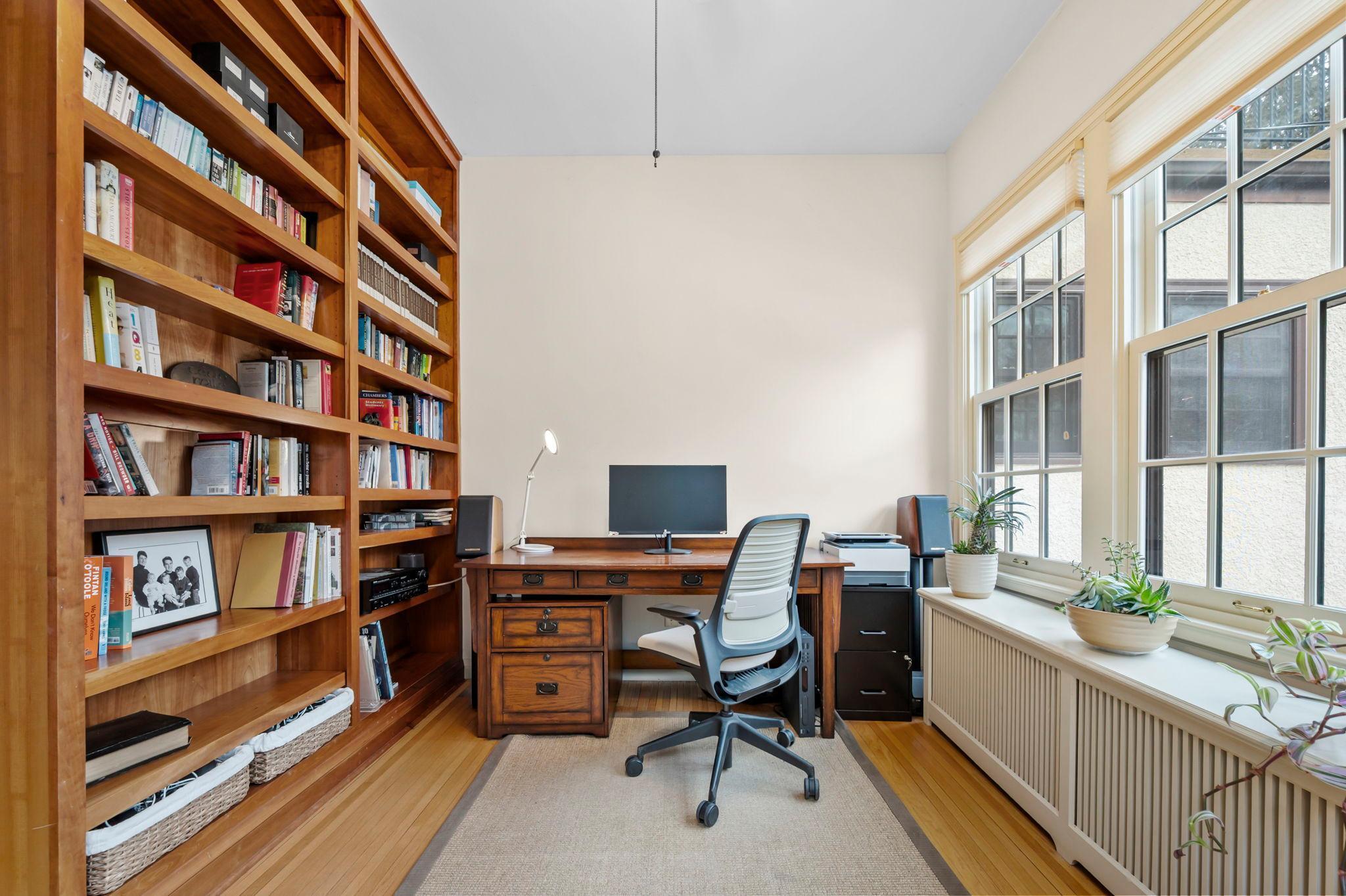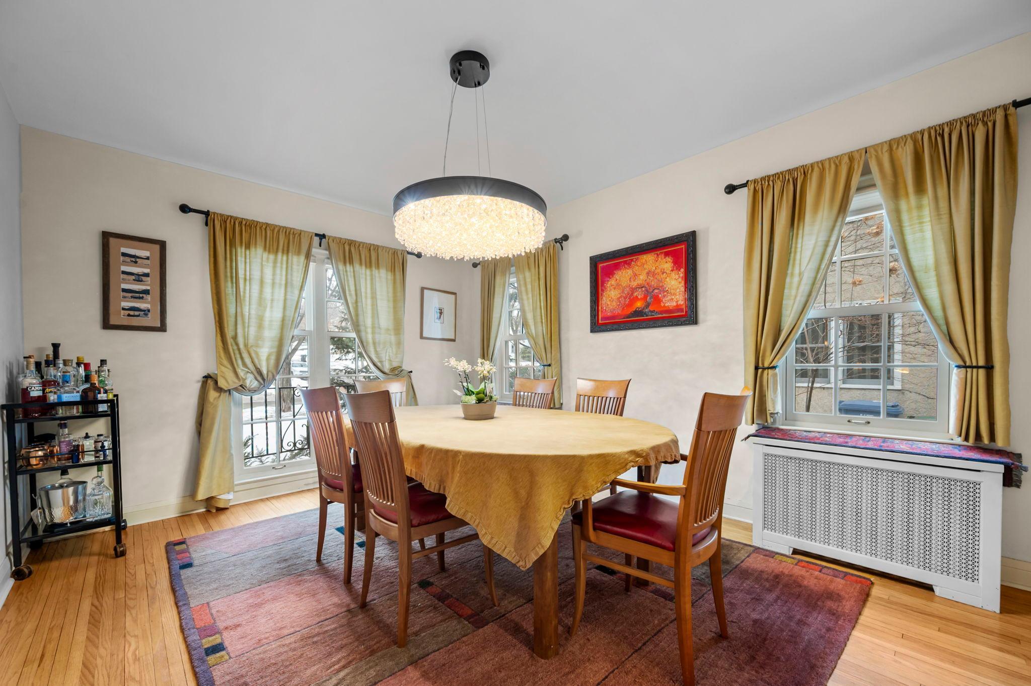 Natural light pours in through numerous windows, illuminating every space, including the delightful sunroom currently used as an office. The large eat-in kitchen is truly a chefs dream, featuring high-end stainless steel appliances from Wolf, Bosch, Miele, & Sub zero, granite countertops, abundant cabinet and prep space, tile backsplash, and tile flooring.
