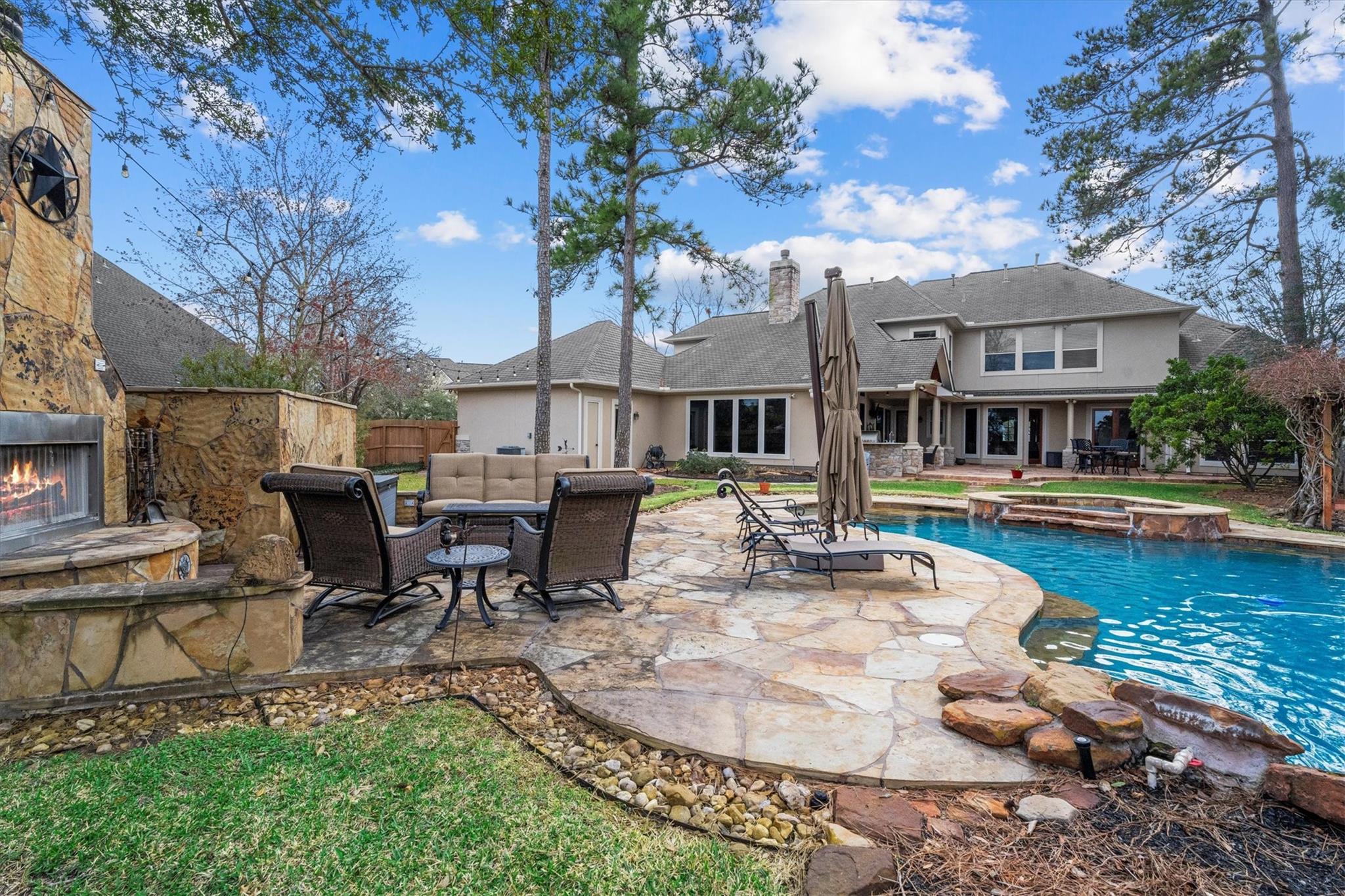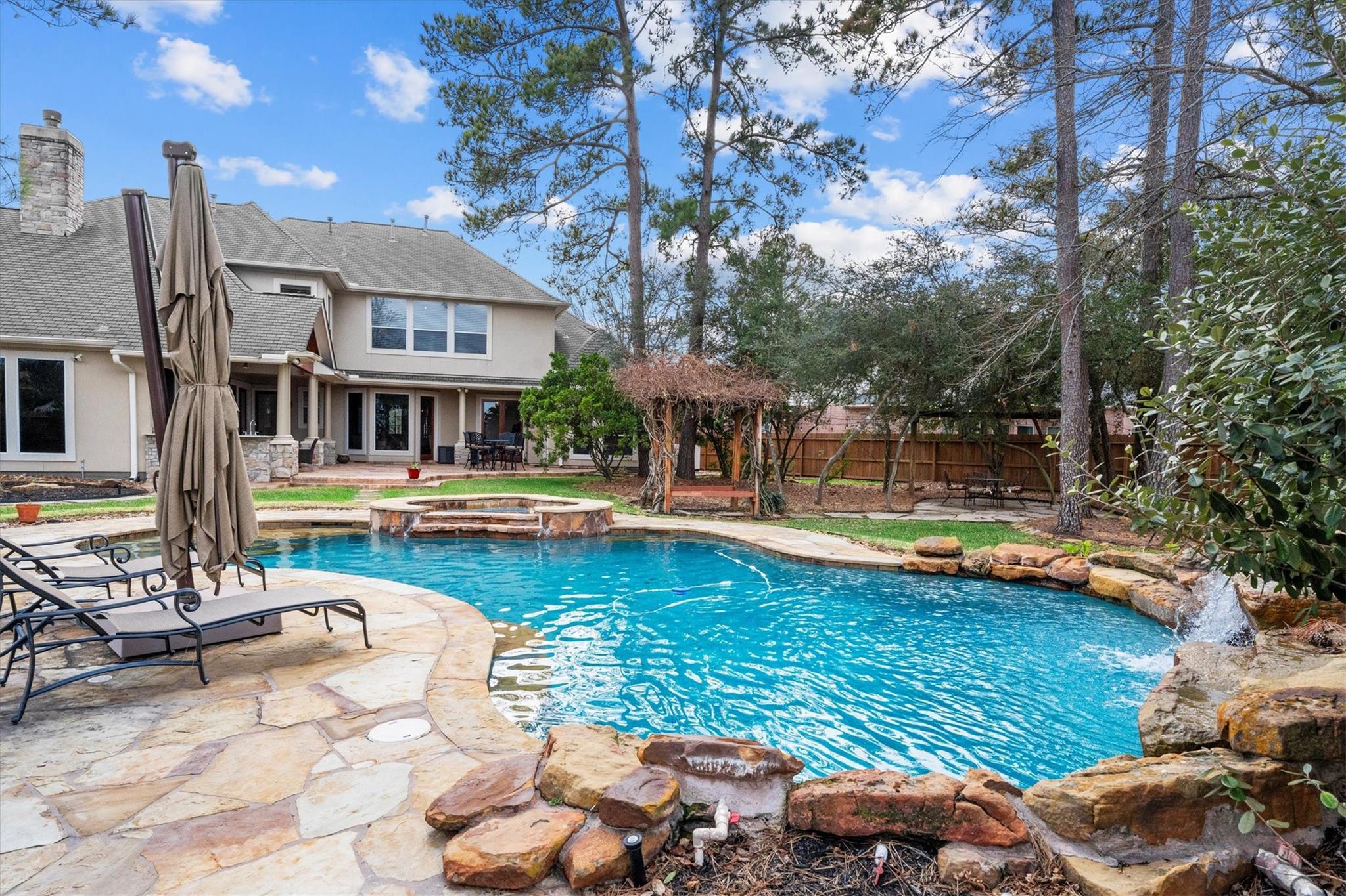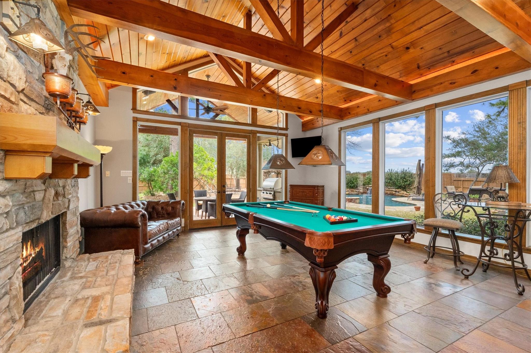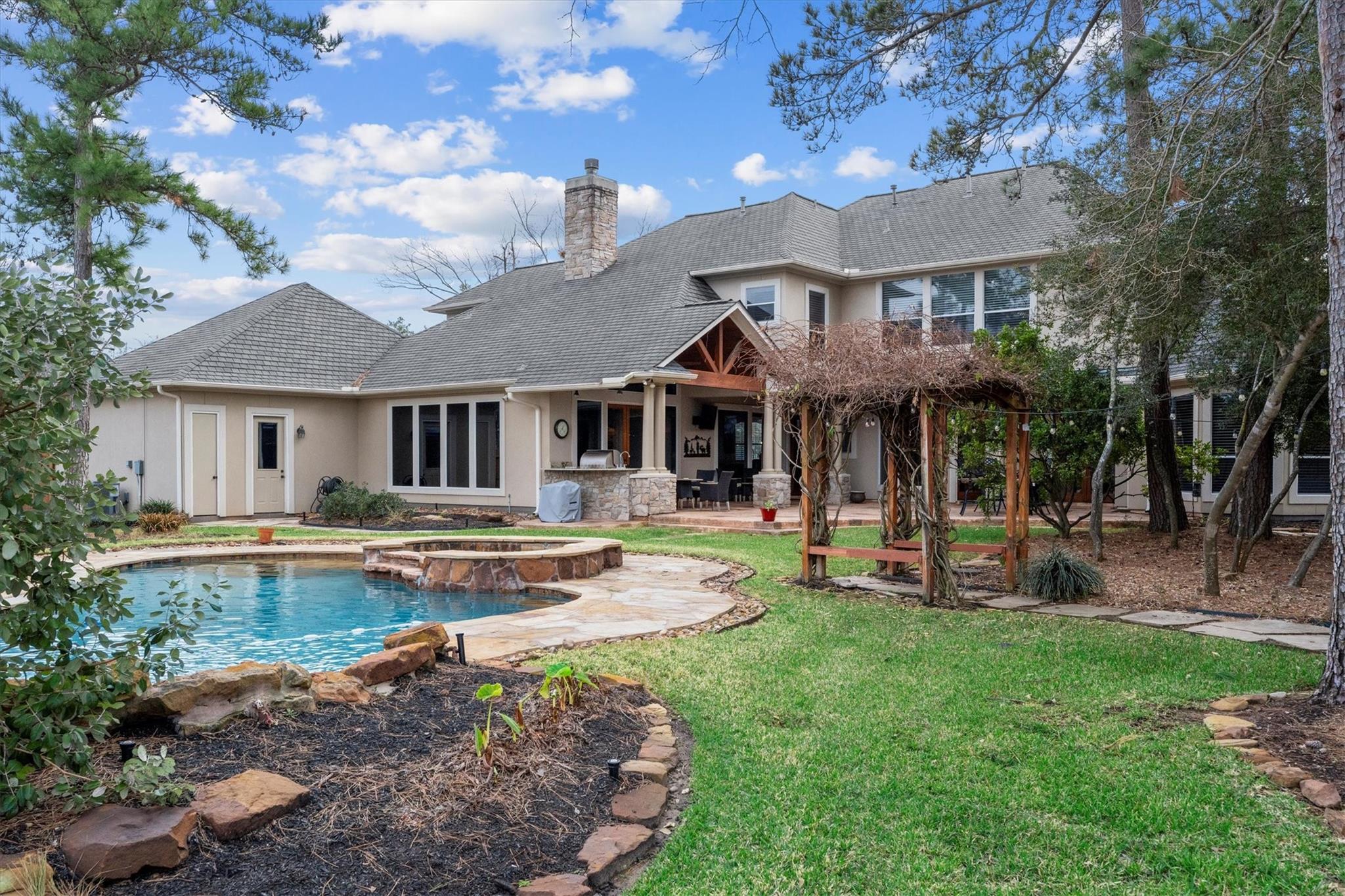 ONE OF A KIND 2 STORY BY RNH CUSTOM BUILDERS IN ROCK CREEK..OVER.5 OF AN ACRE..BACKYARD OASIS W/ OUTDOOR KITCHEN, FIREPLACE, HEATED POOL/SPA & EXPANSIVE COVERED PATIO..HARDWOOD FLOORING THROUGHOUT THE MAIN LIVING & KITCHEN AREA..KITCHEN OPEN TO THE LIVING ROOM.....GAMEROOM DOWN W/ WET BAR & GORGEOUS CLAPWOOD/BEAM CEILINGS THAT SEAMLESSLY EXTEND TO THE OUTDOOR LIVING SPACE.TALL PICTURE WINDOWS THROUGHOUT..HOME OFFICE DOWN W/ FRENCH DOORS, CUSTOM BUILT-INS & SERENE BACKYARD VIEWS.PRIMARY FEATURES A PRIVATE BONUS ROOM/WORKOUT ROOM.HIS & HERS CLOSETS.PRIMARY BATH W/ SEP TUB & GLASS DOOR SHOWER.ADDITIONAL GAMEROOM UP W/ HARDWOODS & CUSTOM BUILT-INS..4 BEDROOMS UP.BONUS STUDY UP W/ FRENCH DOOR & BUILT-INS.4TH SECONDARY BEDROOM/FLEX SPACE FEATURES HARDWOOD FLOORING & ACCESS TO A 15X10 COOLED STORAGE ROOMADA ACCESSIBLE GLASS SHOWER UP...LARGE UTILITY..MUD ROOM..PLANTATION SHUTTERS..WHOLE HOUSE GENERATOR..ELEVATOR