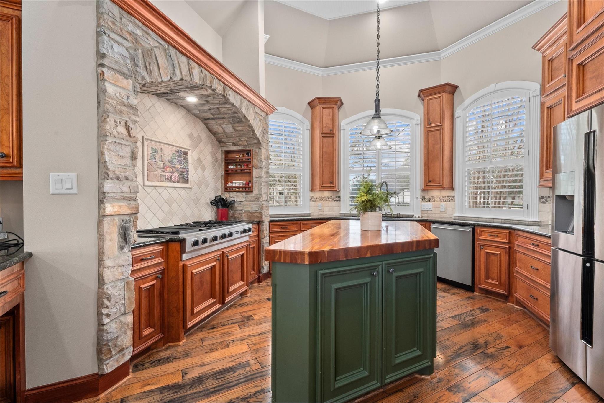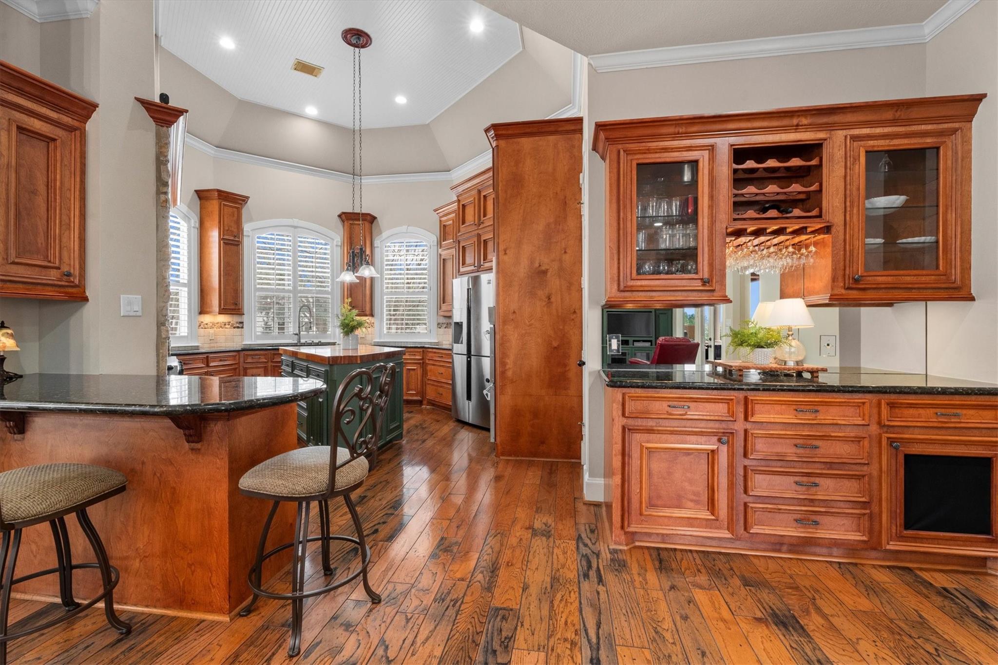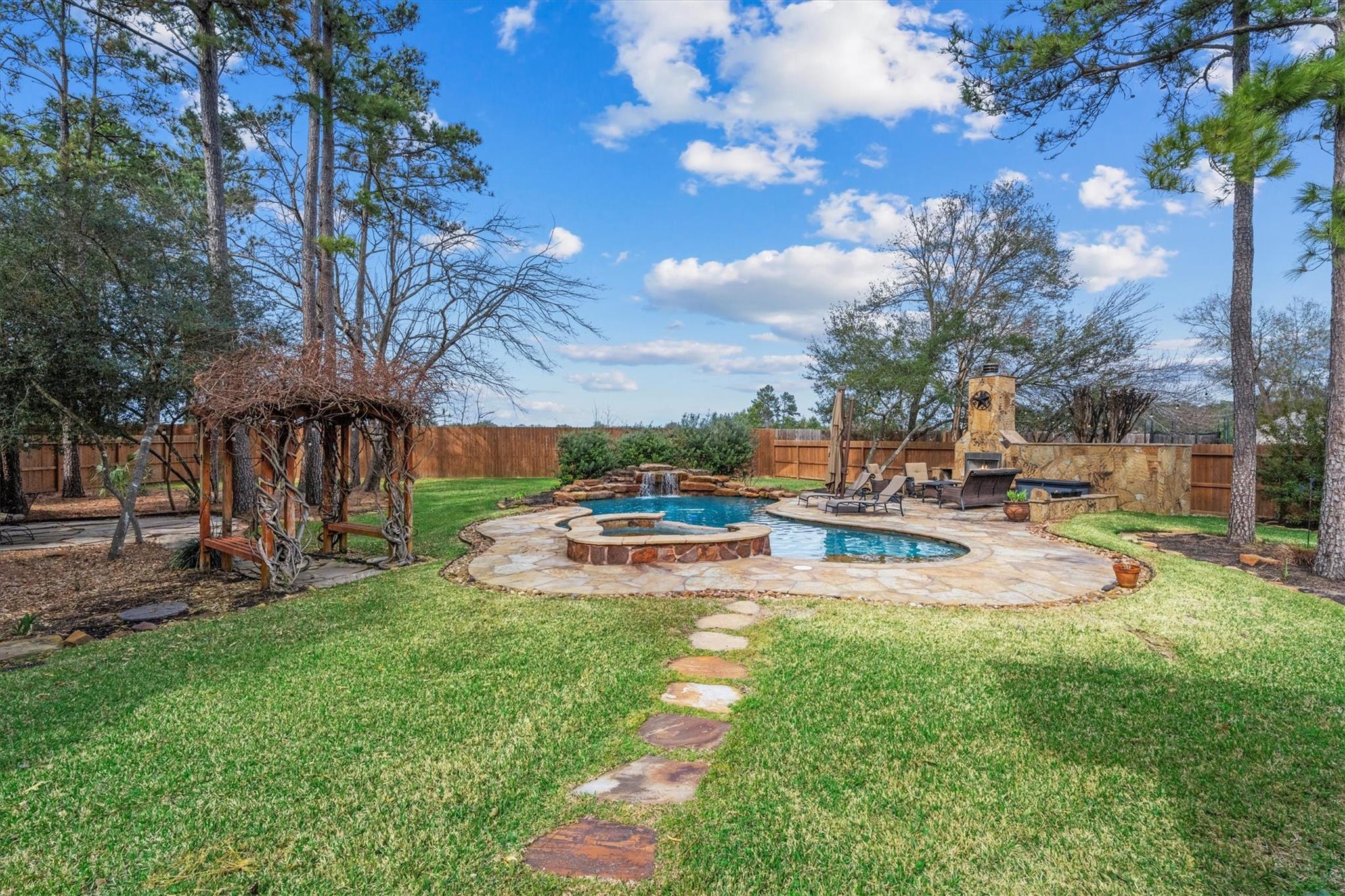 ONE OF A KIND 2 STORY BY RNH CUSTOM BUILDERS IN ROCK CREEK..OVER.5 OF AN ACRE..BACKYARD OASIS W/ OUTDOOR KITCHEN, FIREPLACE, HEATED POOL/SPA & EXPANSIVE COVERED PATIO..HARDWOOD FLOORING THROUGHOUT THE MAIN LIVING & KITCHEN AREA..KITCHEN OPEN TO THE LIVING ROOM.....GAMEROOM DOWN W/ WET BAR & GORGEOUS CLAPWOOD/BEAM CEILINGS THAT SEAMLESSLY EXTEND TO THE OUTDOOR LIVING SPACE.TALL PICTURE WINDOWS THROUGHOUT..HOME OFFICE DOWN W/ FRENCH DOORS, CUSTOM BUILT-INS & SERENE BACKYARD VIEWS.PRIMARY FEATURES A PRIVATE BONUS ROOM/WORKOUT ROOM.HIS & HERS CLOSETS.PRIMARY BATH W/ SEP TUB & GLASS DOOR SHOWER.ADDITIONAL GAMEROOM UP W/ HARDWOODS & CUSTOM BUILT-INS..4 BEDROOMS UP.BONUS STUDY UP W/ FRENCH DOOR & BUILT-INS.4TH SECONDARY BEDROOM/FLEX SPACE FEATURES HARDWOOD FLOORING & ACCESS TO A 15X10 COOLED STORAGE ROOMADA ACCESSIBLE GLASS SHOWER UP...LARGE UTILITY..MUD ROOM..PLANTATION SHUTTERS..WHOLE HOUSE GENERATOR..ELEVATOR