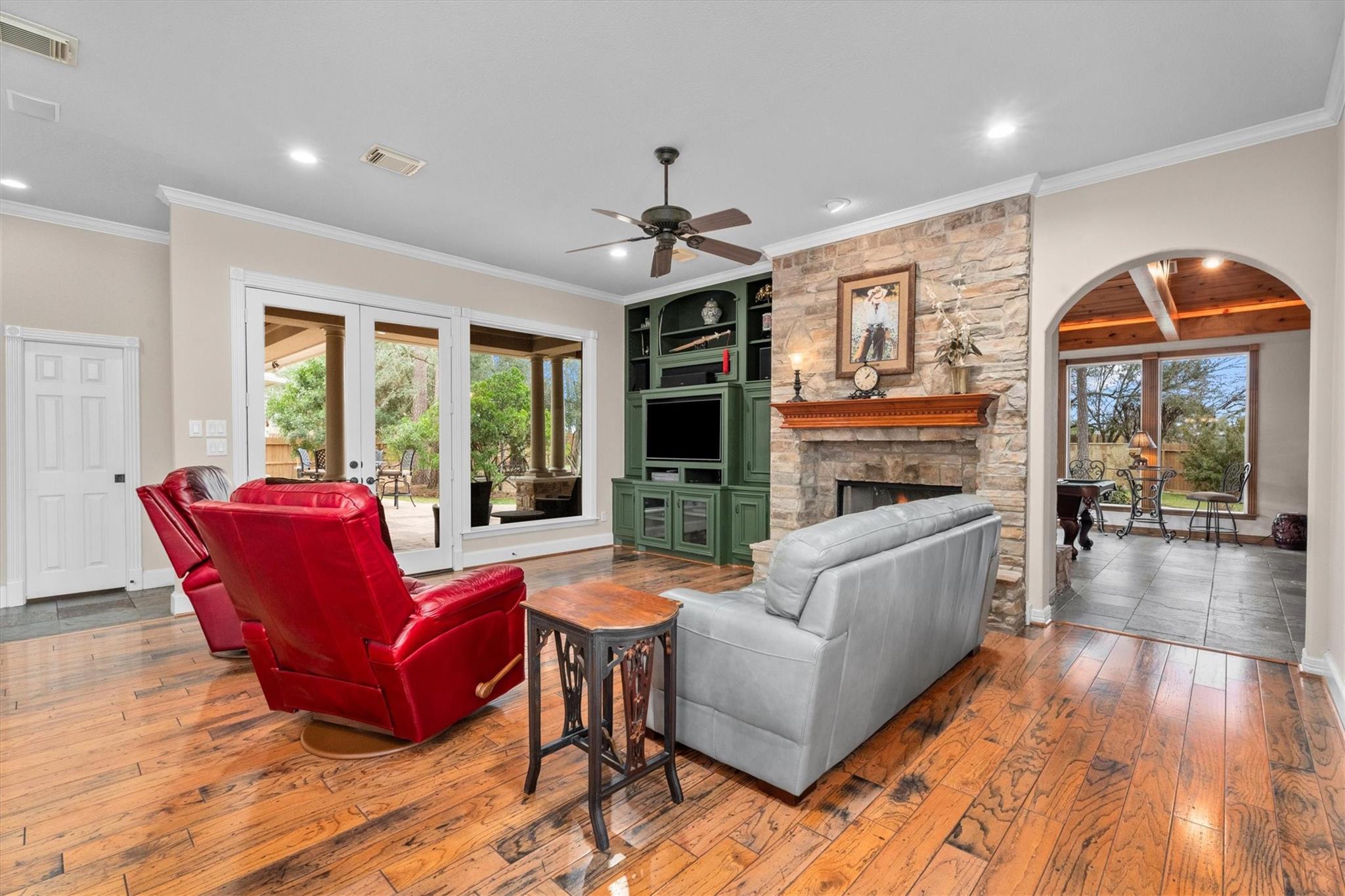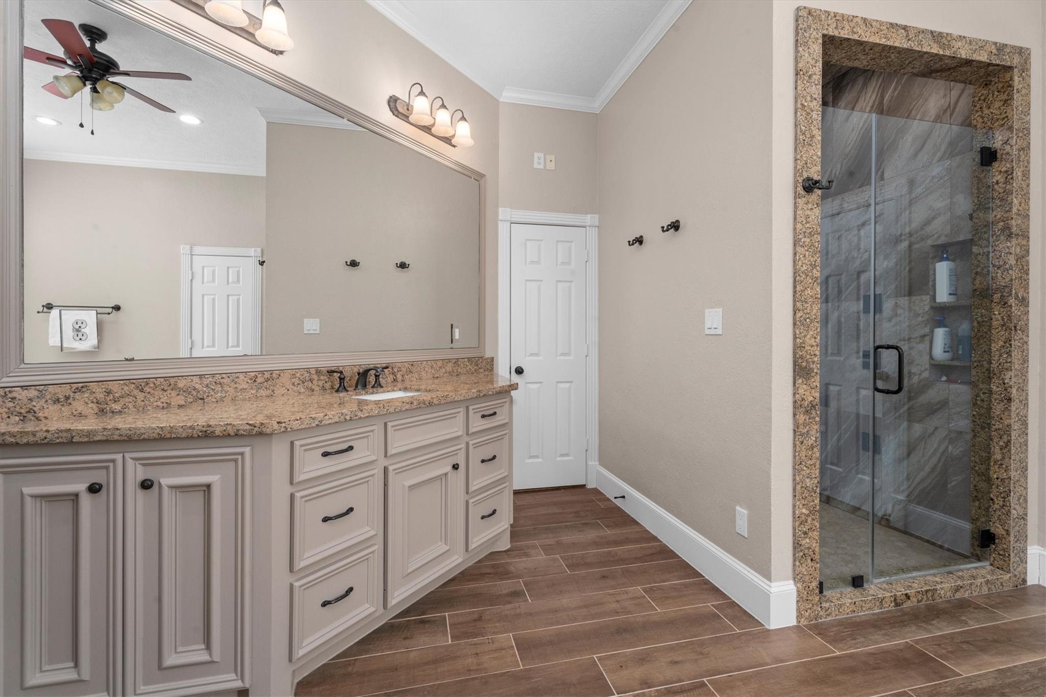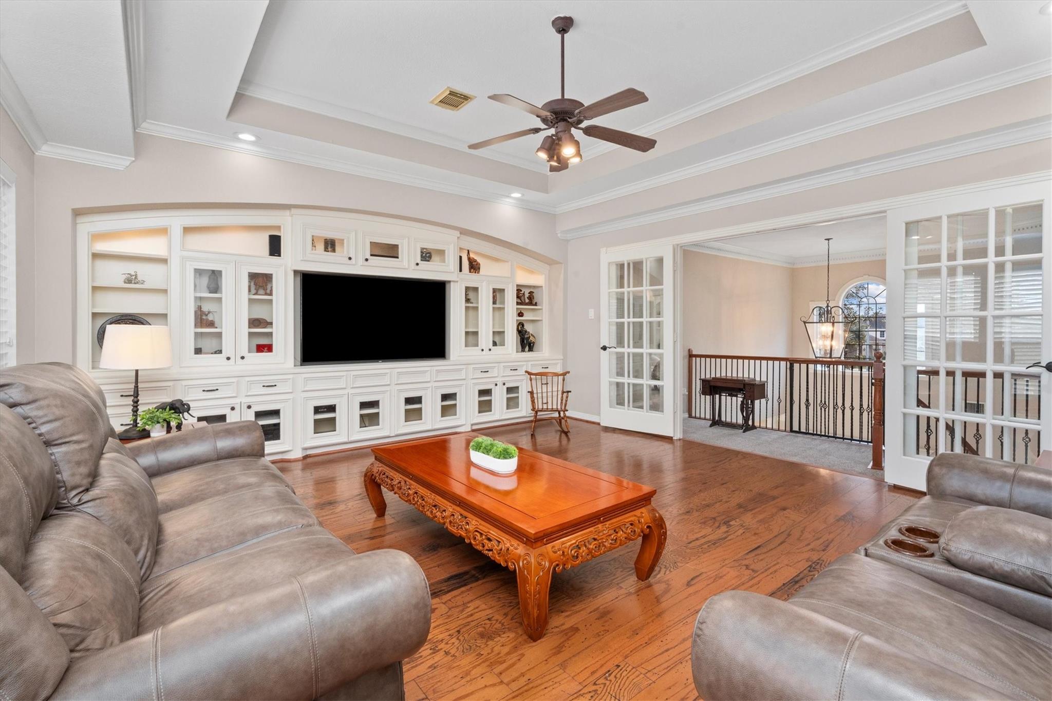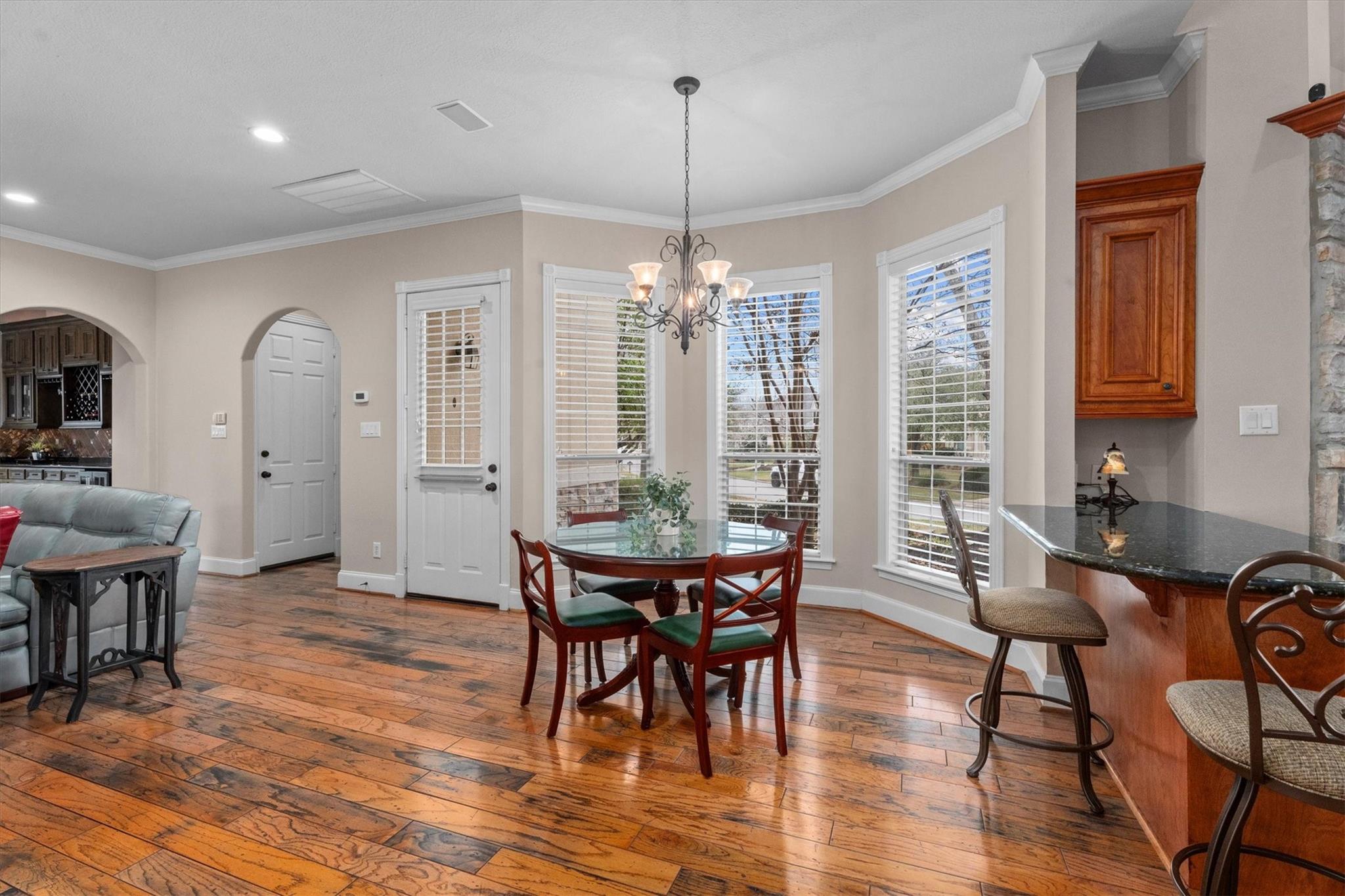 ONE OF A KIND 2 STORY BY RNH CUSTOM BUILDERS IN ROCK CREEK..OVER.5 OF AN ACRE..BACKYARD OASIS W/ OUTDOOR KITCHEN, FIREPLACE, HEATED POOL/SPA & EXPANSIVE COVERED PATIO..HARDWOOD FLOORING THROUGHOUT THE MAIN LIVING & KITCHEN AREA..KITCHEN OPEN TO THE LIVING ROOM.....GAMEROOM DOWN W/ WET BAR & GORGEOUS CLAPWOOD/BEAM CEILINGS THAT SEAMLESSLY EXTEND TO THE OUTDOOR LIVING SPACE.TALL PICTURE WINDOWS THROUGHOUT..HOME OFFICE DOWN W/ FRENCH DOORS, CUSTOM BUILT-INS & SERENE BACKYARD VIEWS.PRIMARY FEATURES A PRIVATE BONUS ROOM/WORKOUT ROOM.HIS & HERS CLOSETS.PRIMARY BATH W/ SEP TUB & GLASS DOOR SHOWER.ADDITIONAL GAMEROOM UP W/ HARDWOODS & CUSTOM BUILT-INS..4 BEDROOMS UP.BONUS STUDY UP W/ FRENCH DOOR & BUILT-INS.4TH SECONDARY BEDROOM/FLEX SPACE FEATURES HARDWOOD FLOORING & ACCESS TO A 15X10 COOLED STORAGE ROOMADA ACCESSIBLE GLASS SHOWER UP...LARGE UTILITY..MUD ROOM..PLANTATION SHUTTERS..WHOLE HOUSE GENERATOR..ELEVATOR