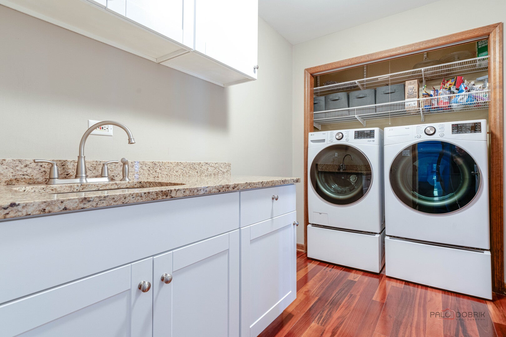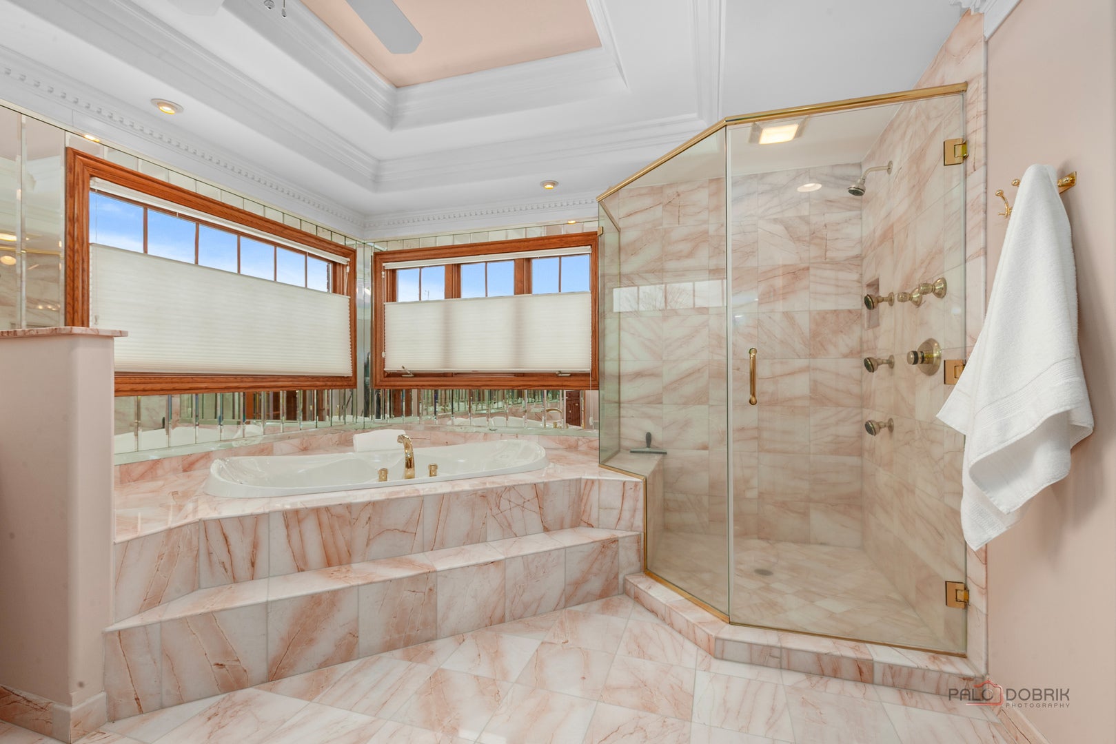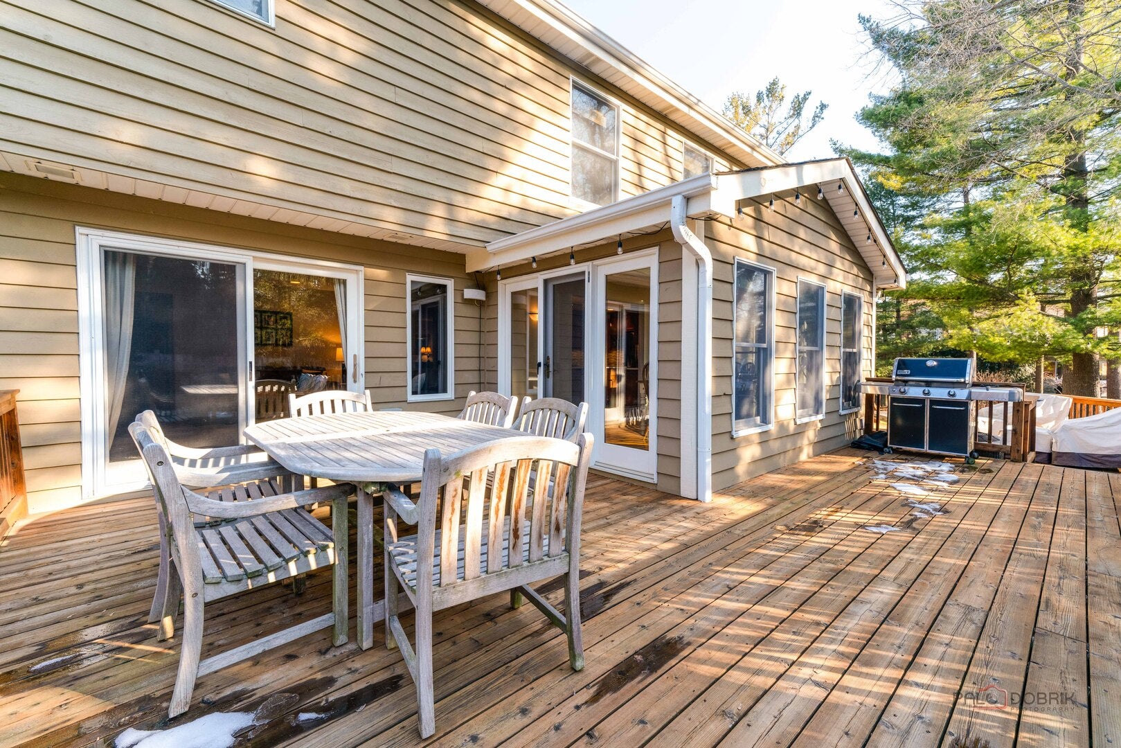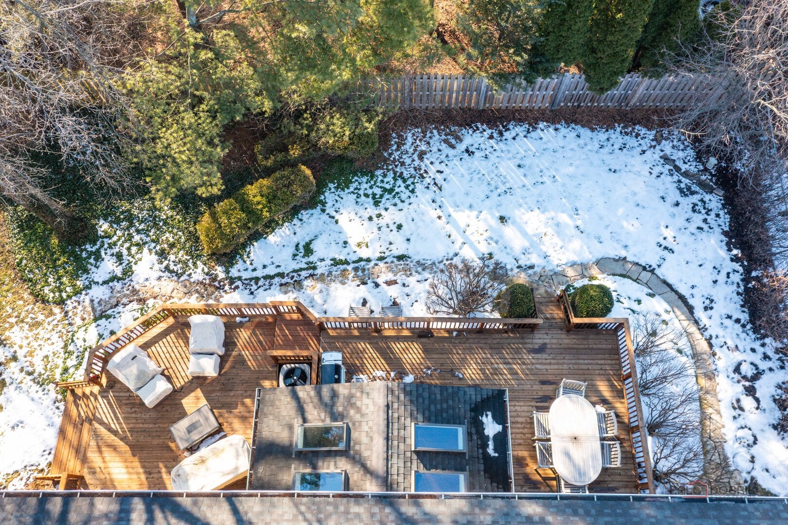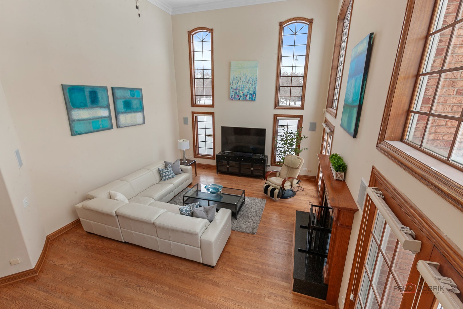 MINUTES TO LAKE MINEAR WITH SCENIC WALKING AND BIKE TRAILS! Impressive 6 bedroom, 4 full bath home on almost a half-acre lot, featuring a finished basement with wet bar, bright sunroom, and fenced backyard, all in a prime Libertyville location near downtown amenities and top-rated schools. The welcoming front porch sets the tone for the peaceful surroundings and offers a perfect place to enjoy morning coffee or unwind at the end of the day. Inside, guests are greeted by a warm foyer and beautifully maintained hardwood flooring that flows throughout the main level, creating a seamless and sophisticated feel. The sun-filled living room and formal dining room offer an ideal layout for both entertaining and everyday living. French doors provide privacy for gatherings, while large windows fill the space with natural light. The eat-in kitchen is the heart of the home, showcasing custom cabinetry with crowned uppers and under-cabinet lighting, quartz countertops, a chic tile backsplash, and stainless steel appliances including an LG refrigerator (2021), Whirlpool microwave (2021), KitchenAid double oven, and Bosch dishwasher. An extra-long center island with breakfast bar seating offers ample prep space or a place to gather for a quick bite, and a built-in planners desk keeps everything organized. Just beyond, the bright heated sunroom overlooks the beautifully landscaped, fenced backyard with mature trees and provides easy access to the expansive deck, creating effortless indoor-outdoor living that is ideal for entertaining. The family room is the perfect retreat to unwind after a long day, featuring a warm gas fireplace with a raised hearth, flanked by built-ins that combine style with storage, and immersive surround sound speakers, offering an ideal space to curl up with a book, enjoy movie nights, or simply relax in comfort. This level also includes a first-floor office great for working remotely, a laundry room, and a full bath. Upstairs, the expansive primary suite features cathedral ceilings, a large walk-in closet with custom organizers, and a spa-inspired bath with dual vanities, whirlpool tub, and separate shower. Four additional generously sized bedrooms with ample closet space and a centrally located full bath complete the second level, accommodating family or guests. The finished basement extends your living space with a large recreation room, wet bar, game area, additional bedroom, and full bath-ideal for guests, entertaining, or creating a media room, home gym, or private retreat. A three-car attached garage and storage shed provide exceptional storage. Located just minutes from Adler Park, the pool, Adler School, boutique shopping, dining, the farmers market, and Metra access. This is a must see!