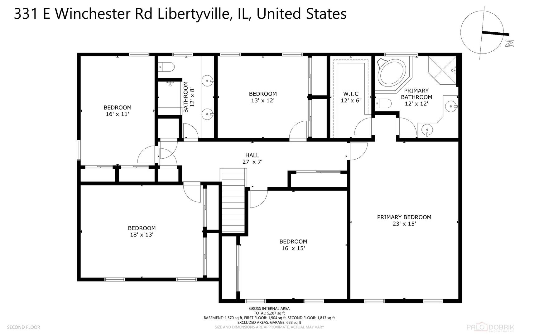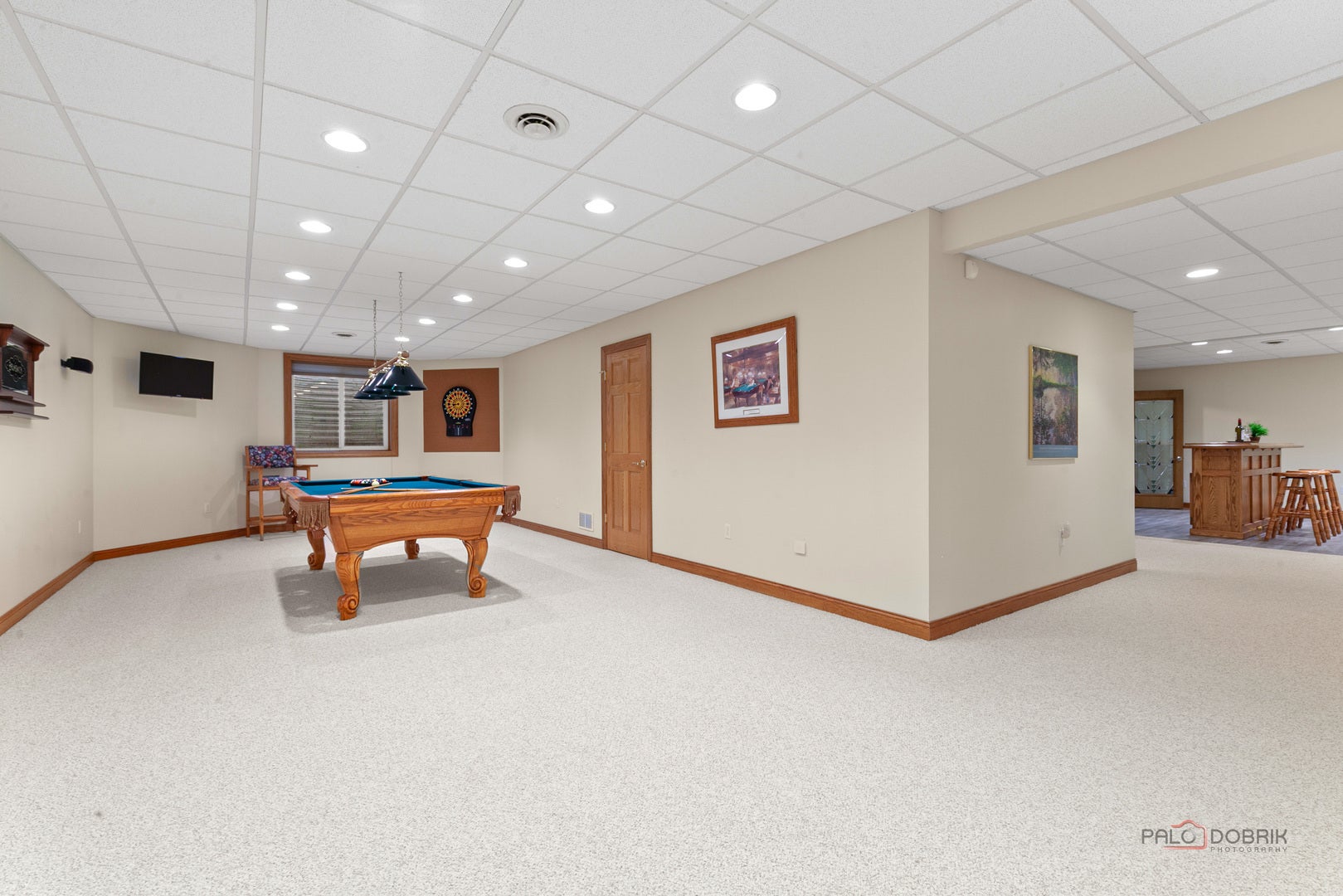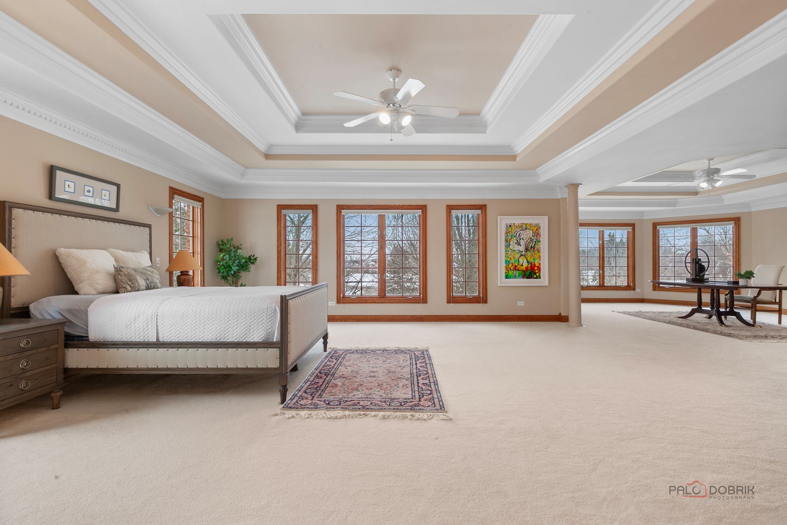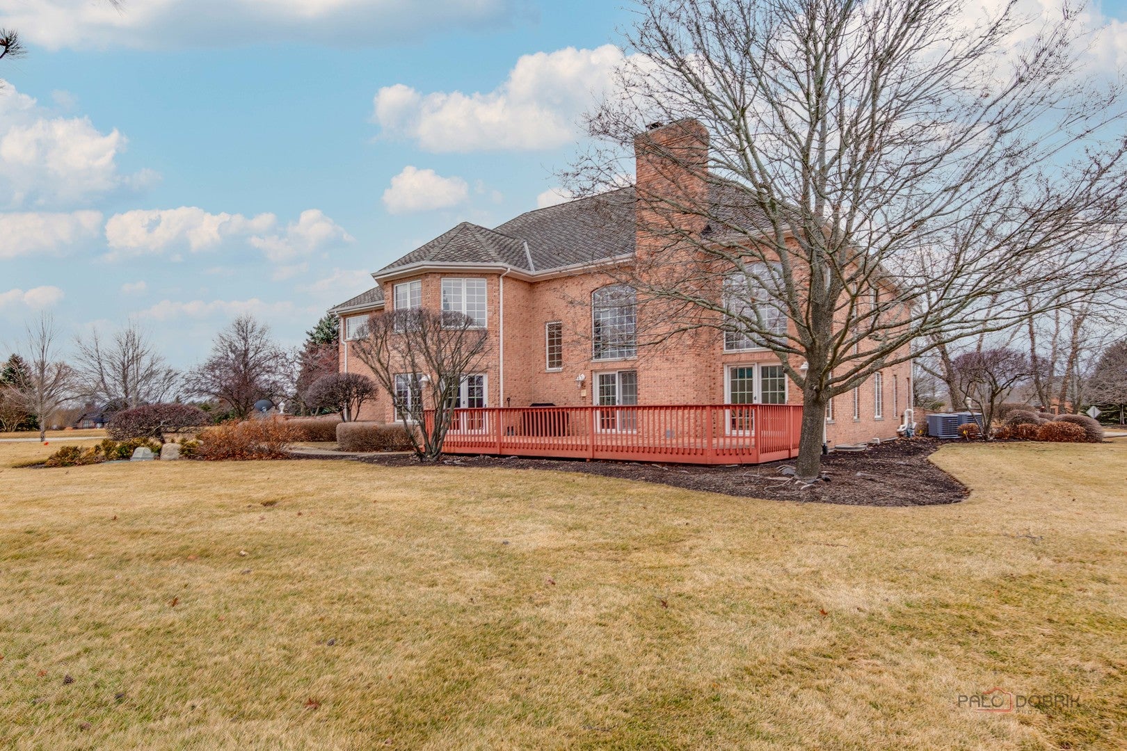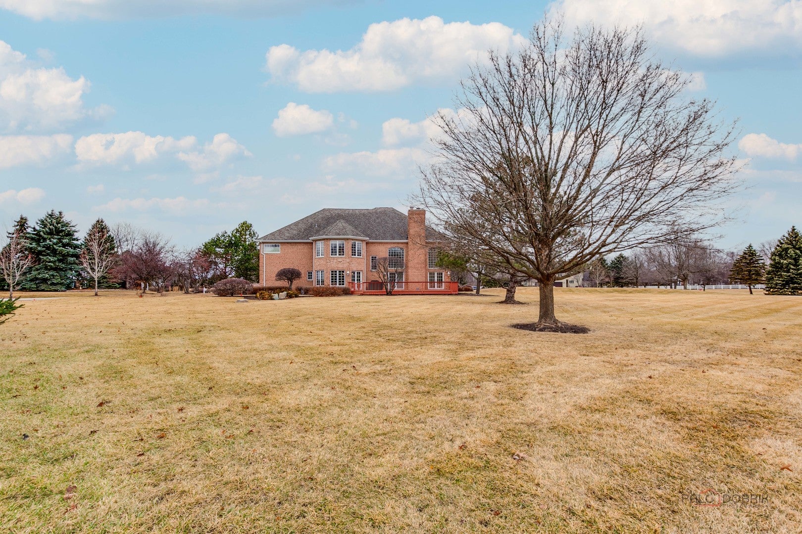 Stunning and spacious 4-bedroom, 4.1-bath all-brick home located in the highly sought-after Hunt Club Farms neighborhood. Exceptional curb appeal welcomes you to this beautiful corner lot set on over 3 acres with mature trees and a circular drive. Hardwood floors span the main level, where a dramatic two-story foyer sets the tone. The living room and formal dining room feature a tray ceiling, bay window, and butlers pantry-ideal for hosting memorable gatherings. The show-stopping kitchen boasts a large island, granite countertops, walk-in pantry, abundant white cabinetry, and top-of-the-line appliances including a Sub-Zero refrigerator and Bosch dishwasher. A bright eating area opens to an expansive deck overlooking the picturesque backyard. The impressive two-story family room highlights soaring windows, a gas fireplace, and additional deck access. A spectacular home office offers French doors, a beadboard ceiling, and custom built-in shelving. Laundry room and half bath complete the main level. Upstairs, retreat to the luxurious primary suite featuring a tray ceiling, sitting room, two walk-in closets, and a spa-like ensuite with dual vanities, whirlpool tub, and separate shower. The second bedroom includes a private ensuite, vaulted ceiling, and walk-in closet. Third and fourth bedrooms share a Jack and Jill bath. The fully finished basement offers endless possibilities with a large recreation room, floor-to-ceiling brick fireplace, wet bar, impressive wine cellar, full bath, gaming area, and exercise space. Ideally located near Mill Creek Forest Preserve, close to interstate access, and just minutes from Gurnee Mills shopping, dining, and entertainment. Dont miss the opportunity to own this exceptional home!