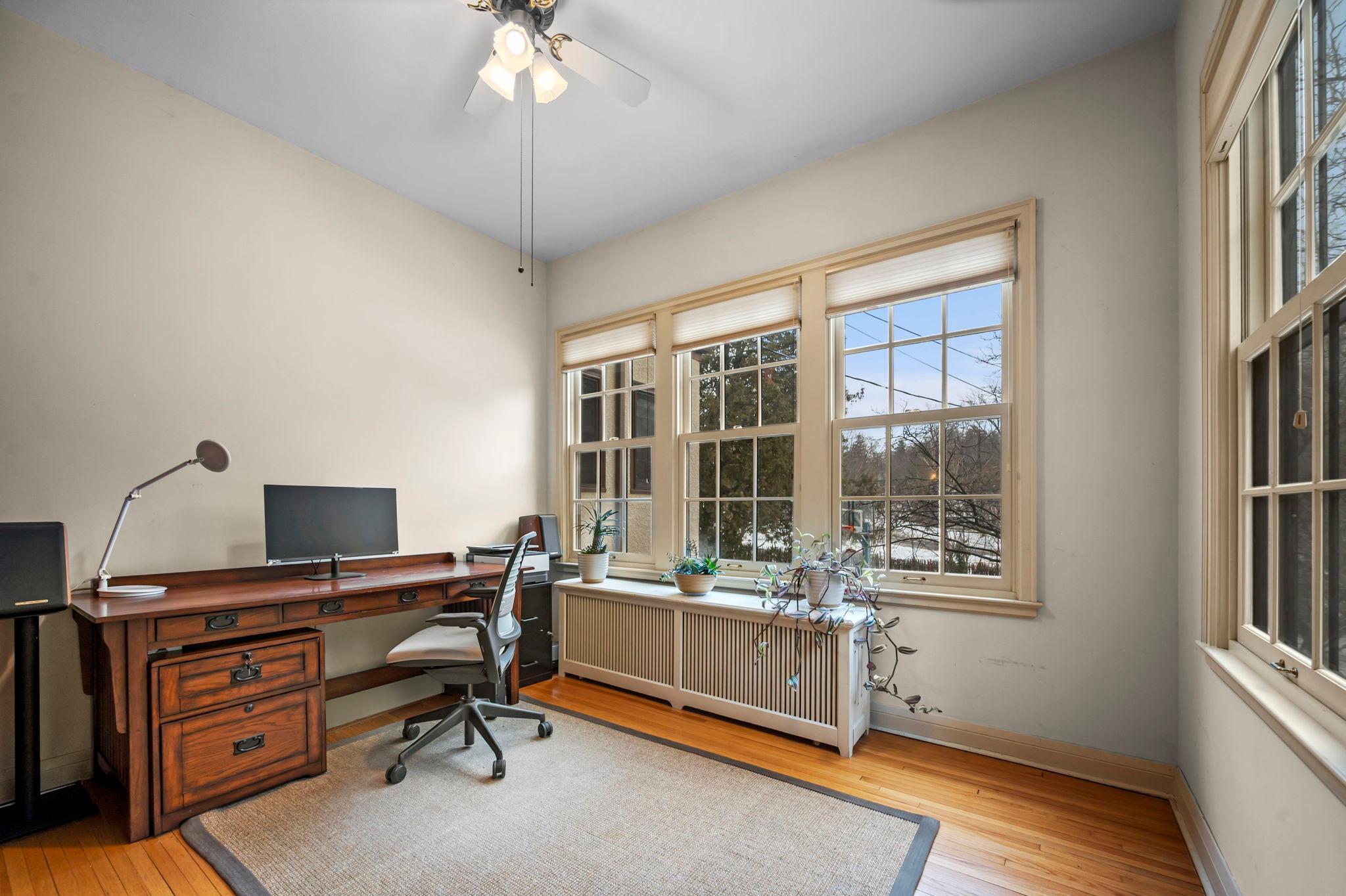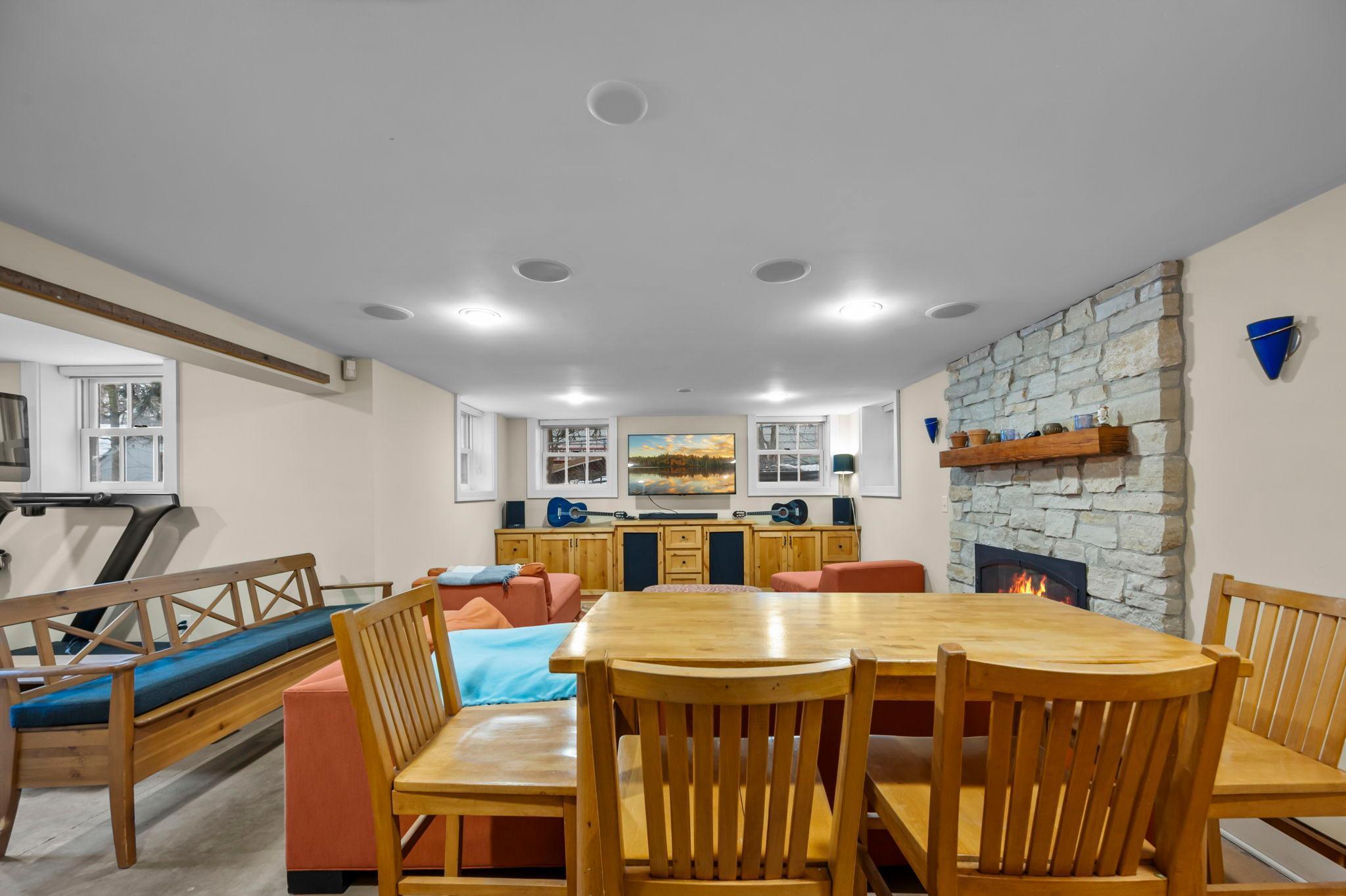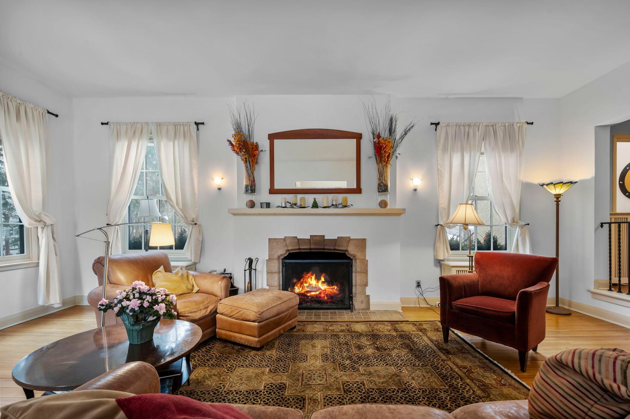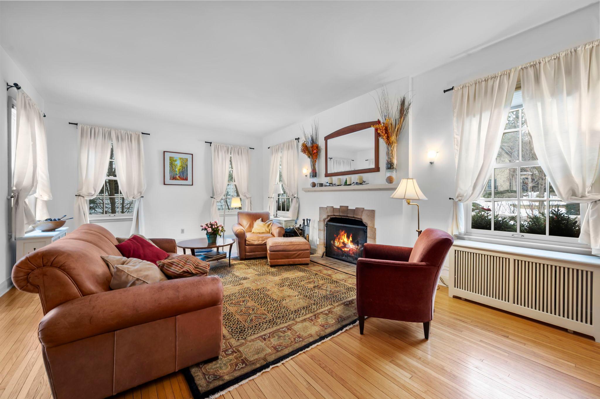 Natural light pours in through numerous windows, illuminating every space, including the delightful sunroom currently used as an office. The large eat-in kitchen is truly a chefs dream, featuring high-end stainless steel appliances from Wolf, Bosch, Miele, & Sub zero, granite countertops, abundant cabinet and prep space, tile backsplash, and tile flooring. The informal dining area adds even more charm with built-in cabinetry and an adorable window seat (could also easily be a main floor FR) Main level also features a convenient half bath for your guests. Upstairs, youll find four generously sized bedrooms, including a primary suite with a private bath. A refreshed full bath serves the additional bedrooms. Glass door leads to a private second-story deck offering breathtaking views the perfect place to unwind. The lower level boasts a spacious family room with oversized windows that bring in natural light, along with a second fireplace for cozy evenings and an exercise nook. Outside, a brick driveway leads to a double tuck-under garage with a extra storage room. The fenced backyard is ideal for relaxing or entertaining, complete with a firepit for evening gatherings. Updates include all kitchen appliances 2020-2024, electrical panel upgrade in 2024 (enough power for EV chargers), Water heater 2022, Bathrooms & new plumbing 2021, heated floors in kitchen, basement, upstairs bathrooms, & main floor bath, Central AC added & new boiler in 2018.Located literally steps to the creek, numerous parks, museums, dining, and shopping, this home truly has it all.
